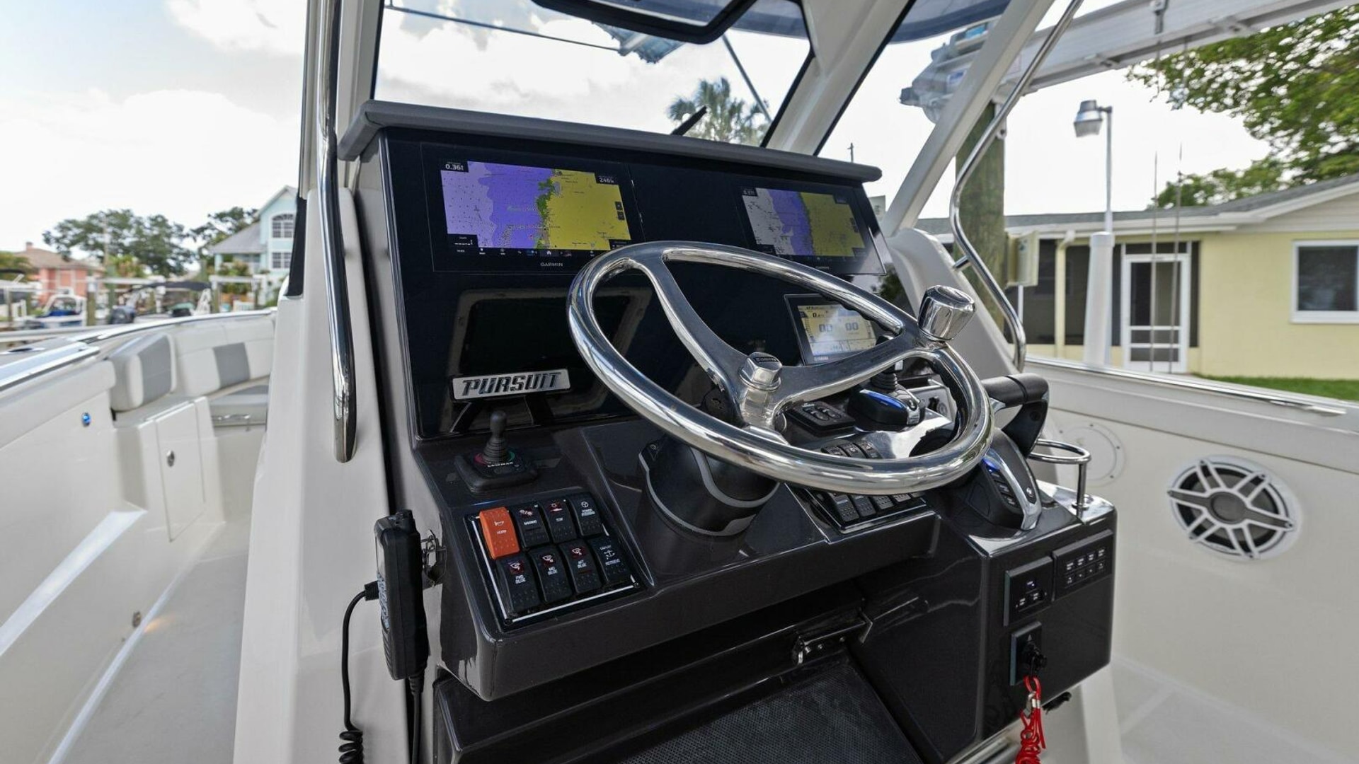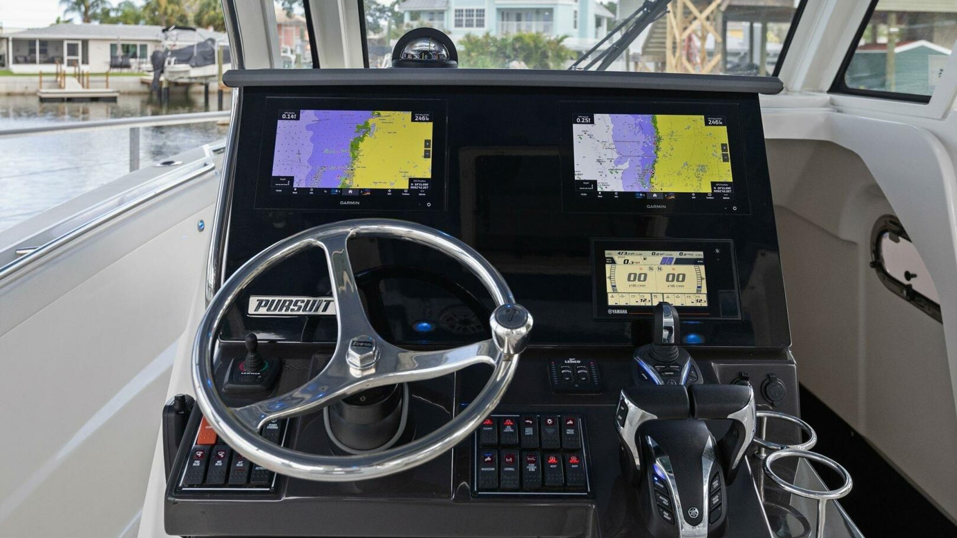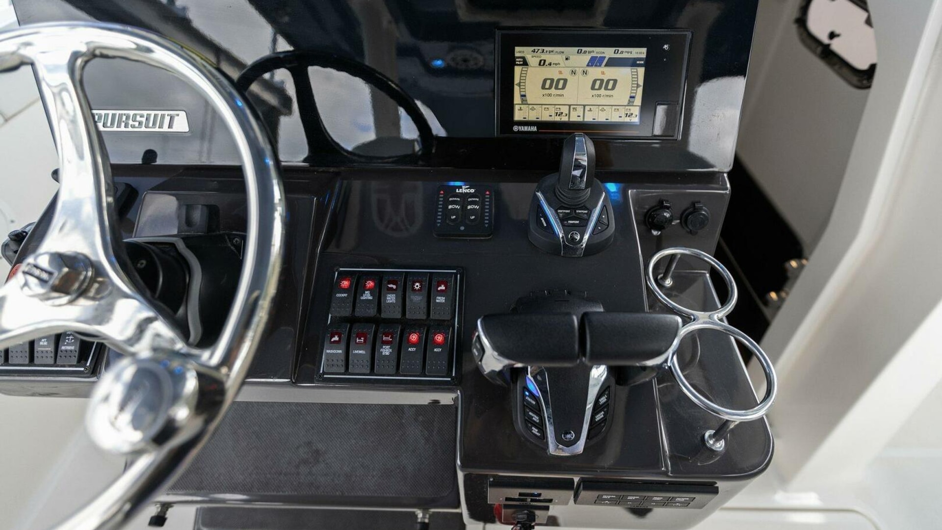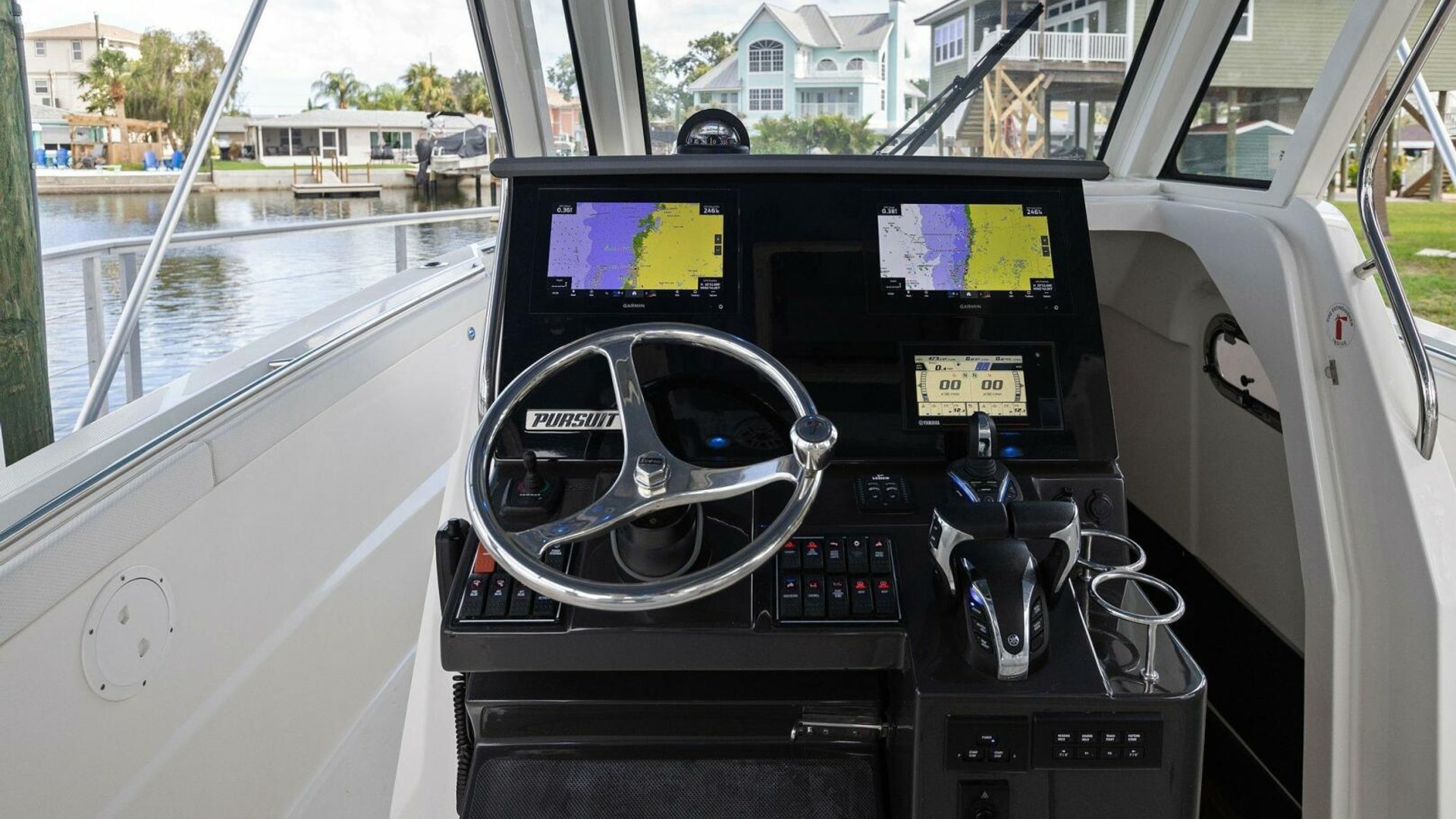 - Garmin® Package: Dual GPSMAP 8612 [1 XSV], Airmar B175M 1KW CHIRP Transducer, NMEA 2000 Starter kit, Pursuit Custom Dash Panel, Yamaha Gateway w/cable, VHF Antenna.