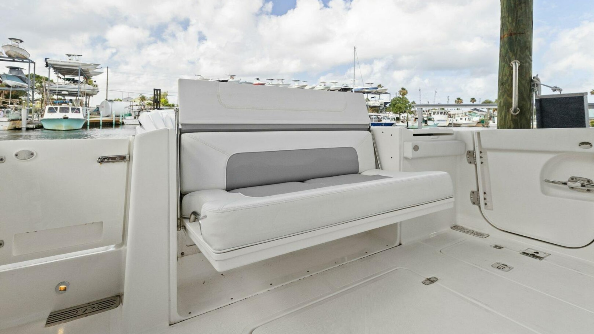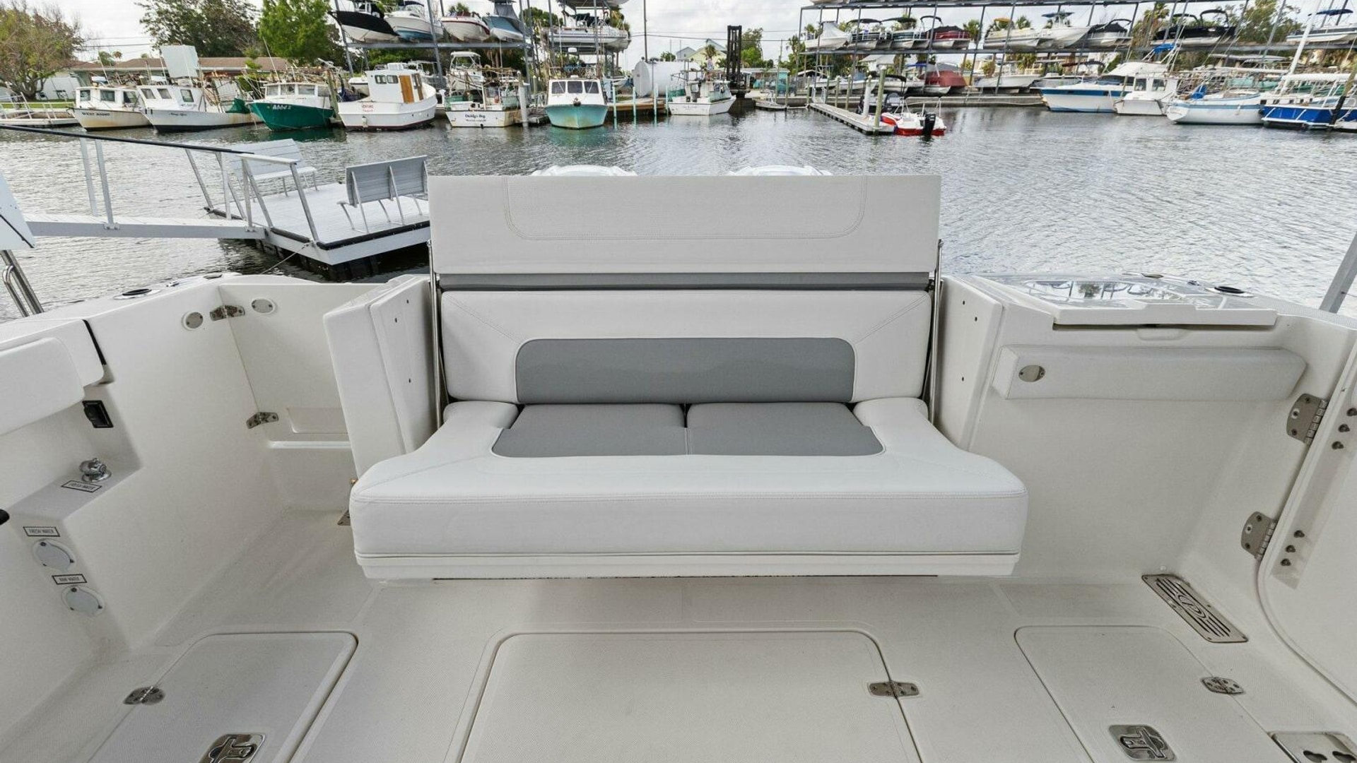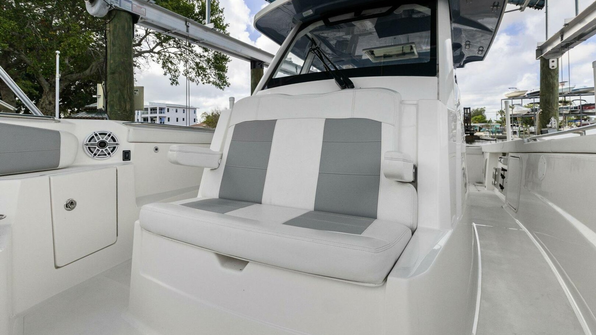 - Molded Forward Bow Seating with Insulated Storage Below, Electric Hinged Forward Facing Backrests for Port and Starboard Seats