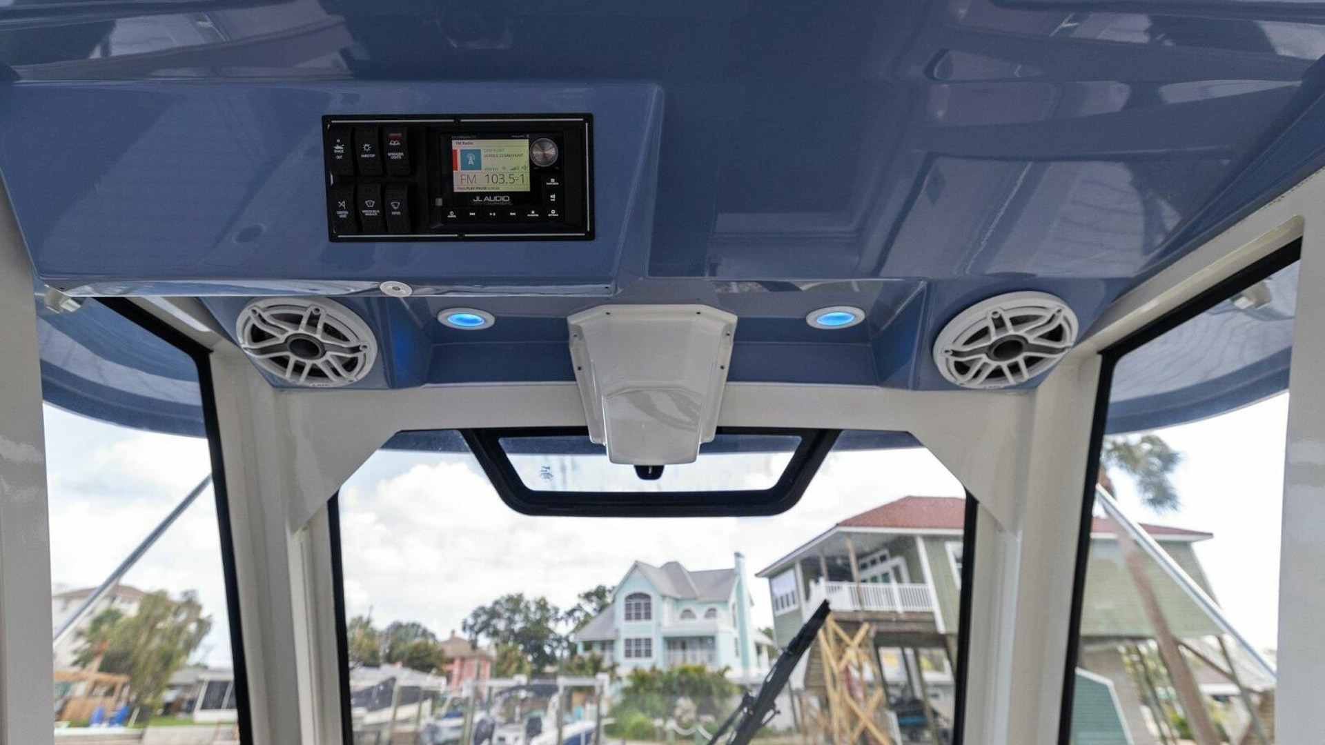 - Pursuit Cockpit JL Audio Entertainment System: 12V Bluetooth® Compatible Stereo System, Premium Speakers (7 Total, 4 in Hardtop, 2 in Bow, and Subwoofer), Amplifier and Zonal Remotes (2) and Ext Antenna