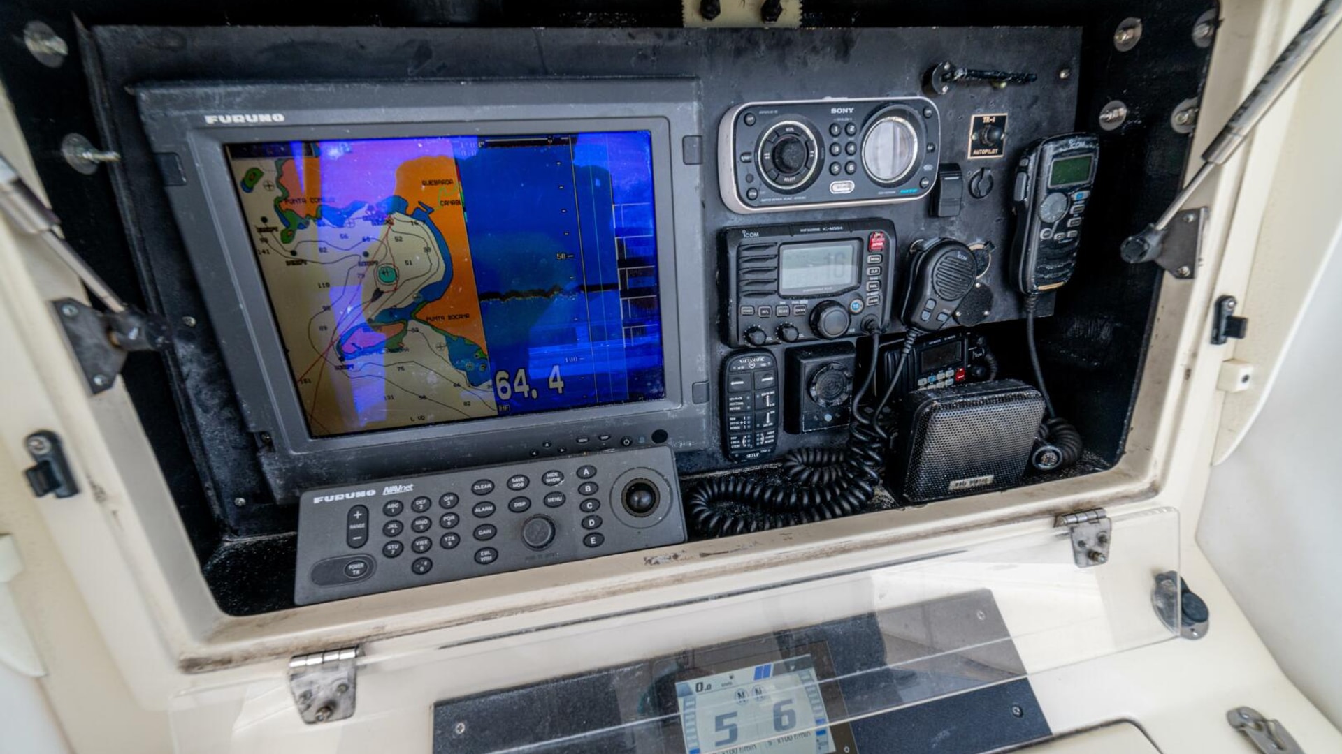 - Furuno Navnet System: Sounder, GPS, 25 KW Radar, Autopilot
