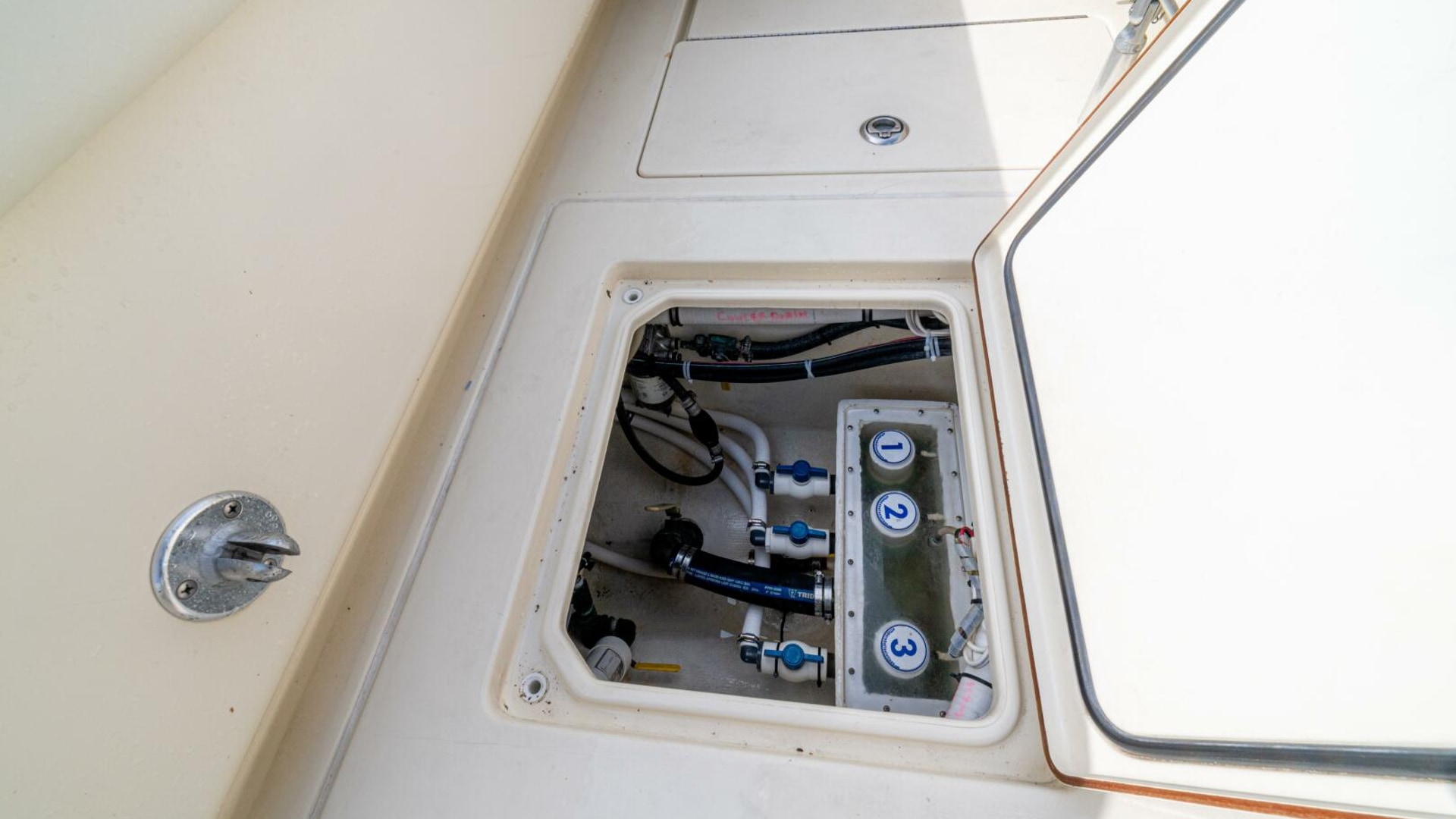 - (3) Forward below deck storage hatches