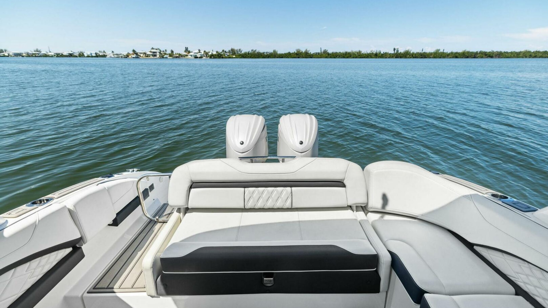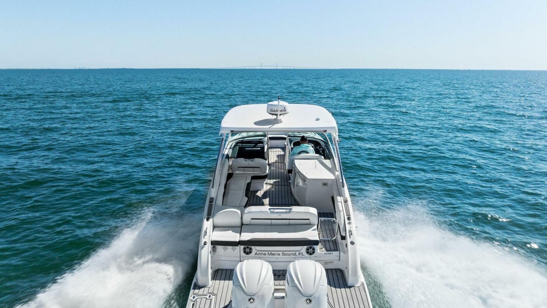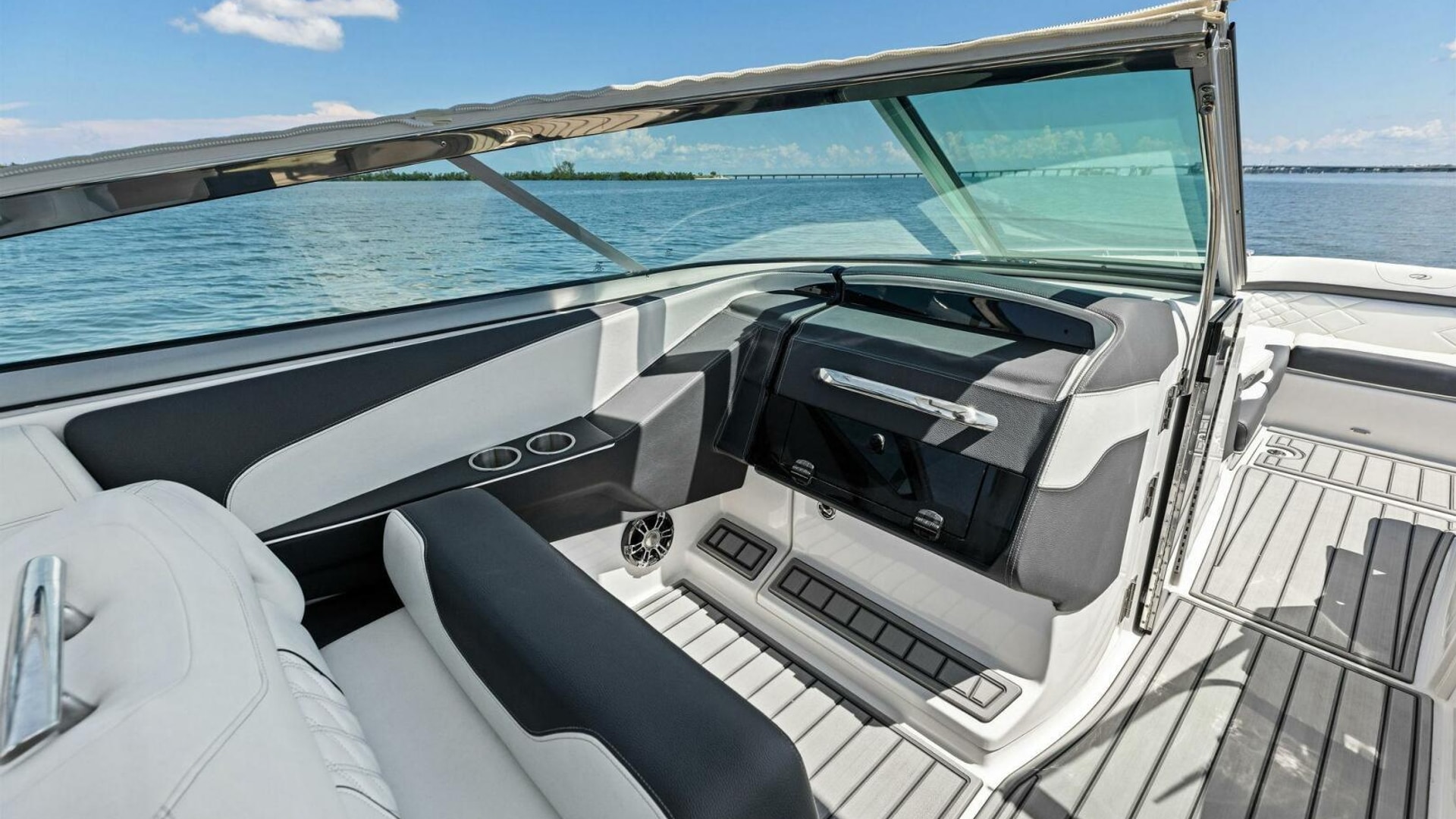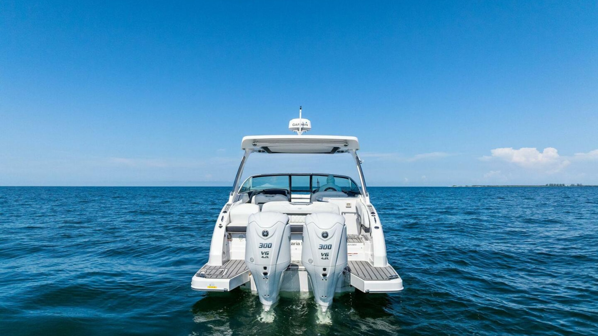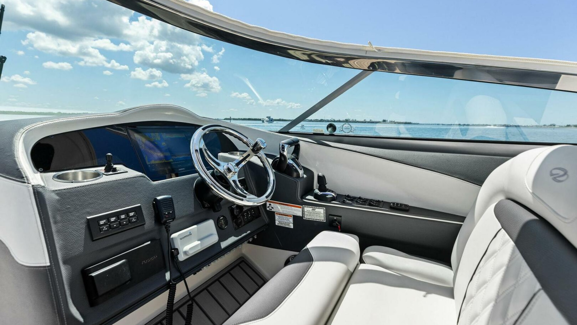 Loaded with premium features including an Isinglass wraparound, Garmin electronics package, retractable cockpit sunshade, bow thruster, and joystick controls for effortless docking, she’s equally ready for long cruising days or entertaining at anchor. Powered by twin Yamaha F300s with a recent 100-hour service completed, you’ll enjoy confident, efficient performance with total peace of mind.