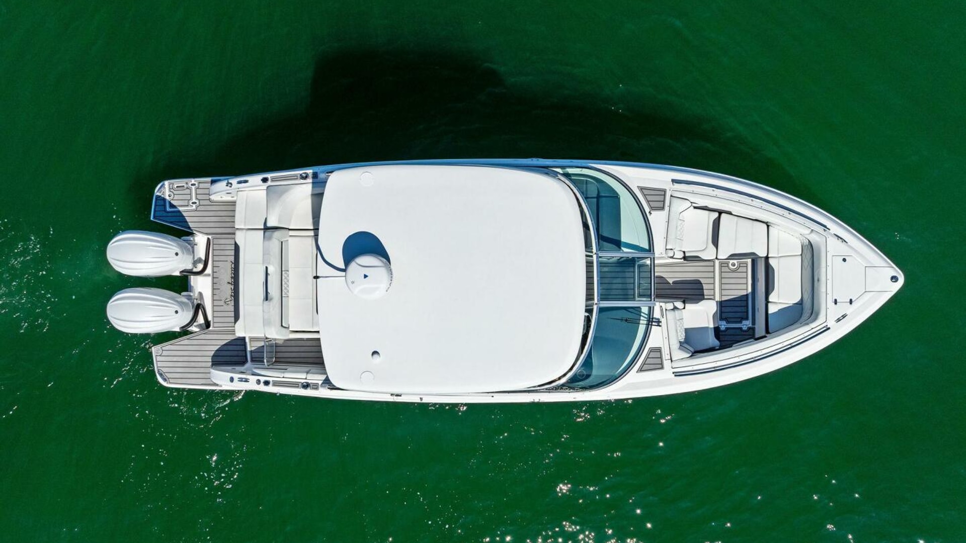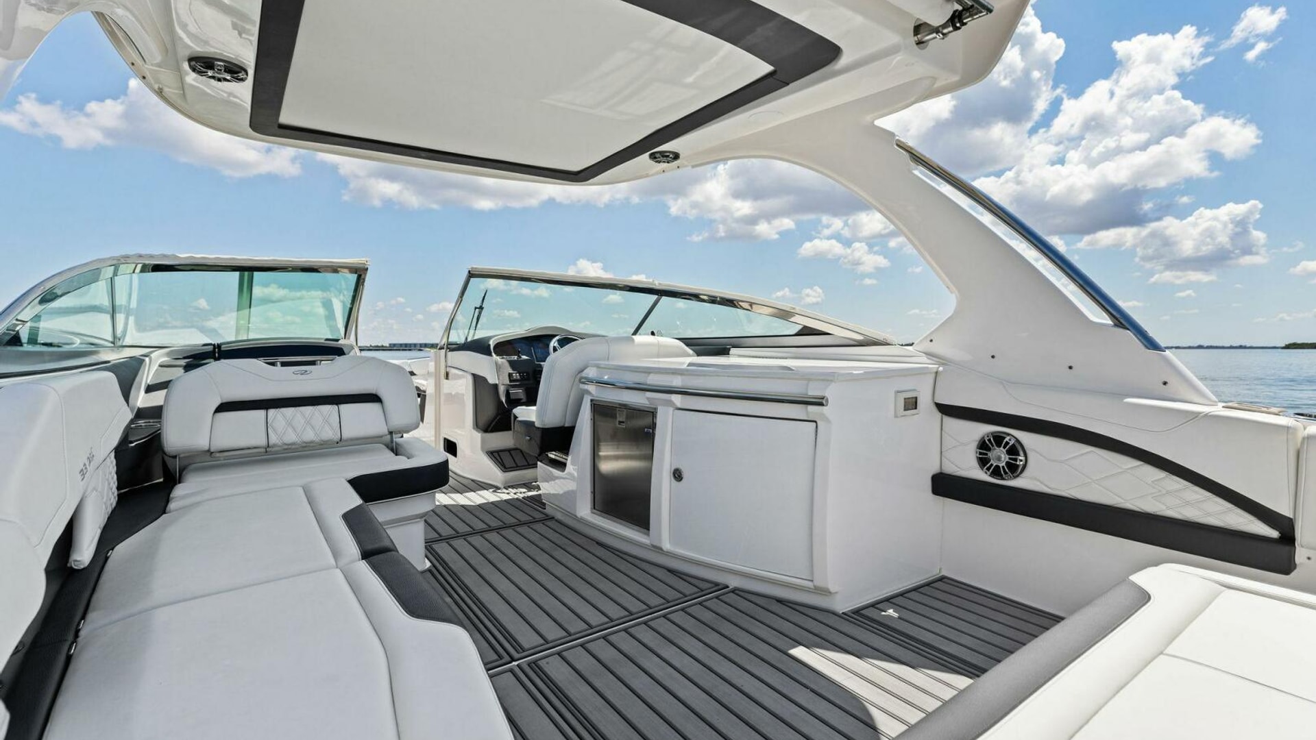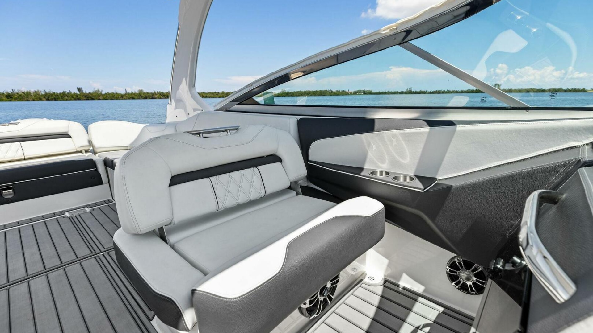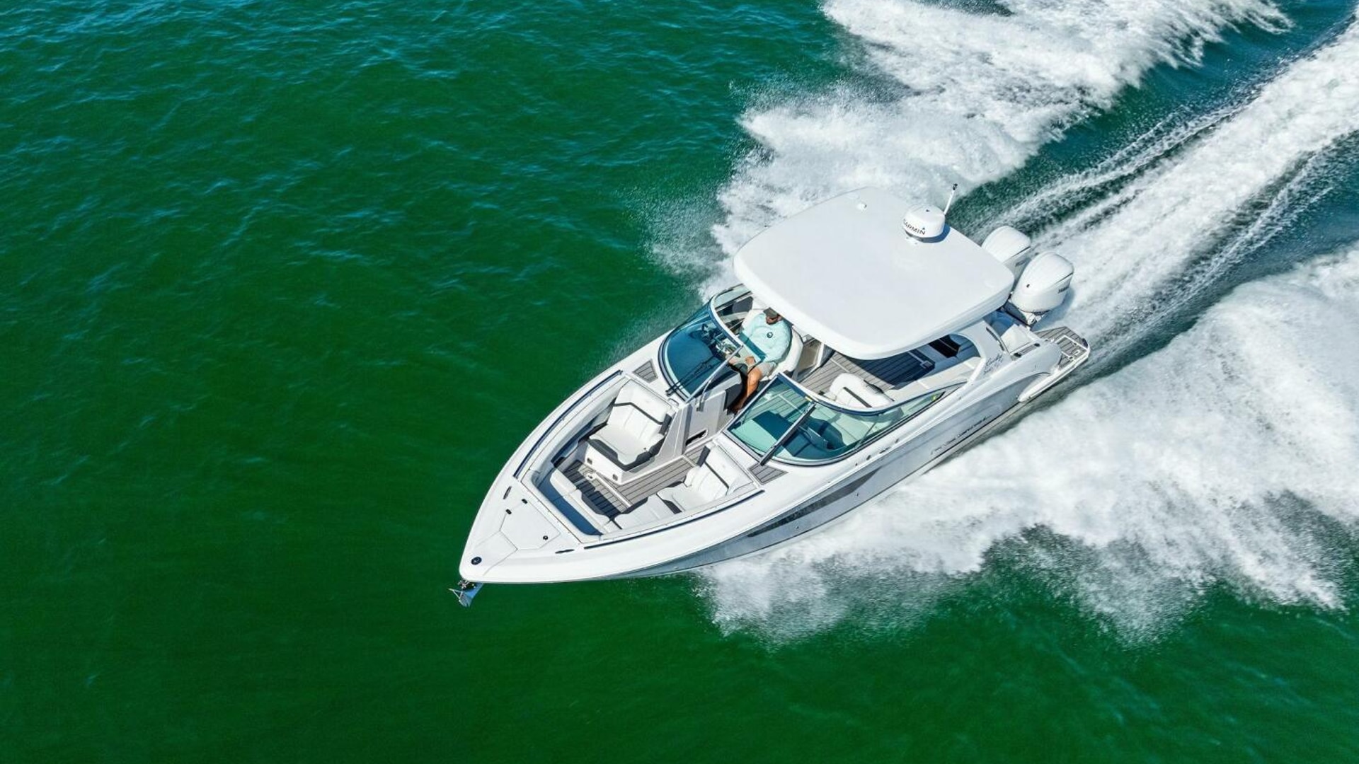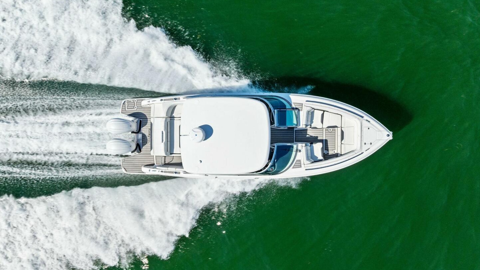 Loaded with premium features including an Isinglass wraparound, Garmin electronics package, retractable cockpit sunshade, bow thruster, and joystick controls for effortless docking, she’s equally ready for long cruising days or entertaining at anchor. Powered by twin Yamaha F300s with a recent 100-hour service completed, you’ll enjoy confident, efficient performance with total peace of mind.