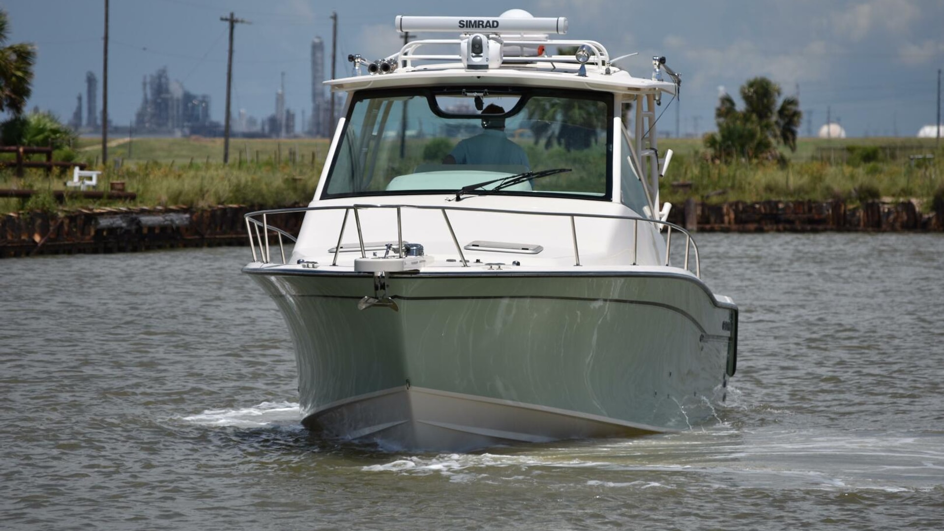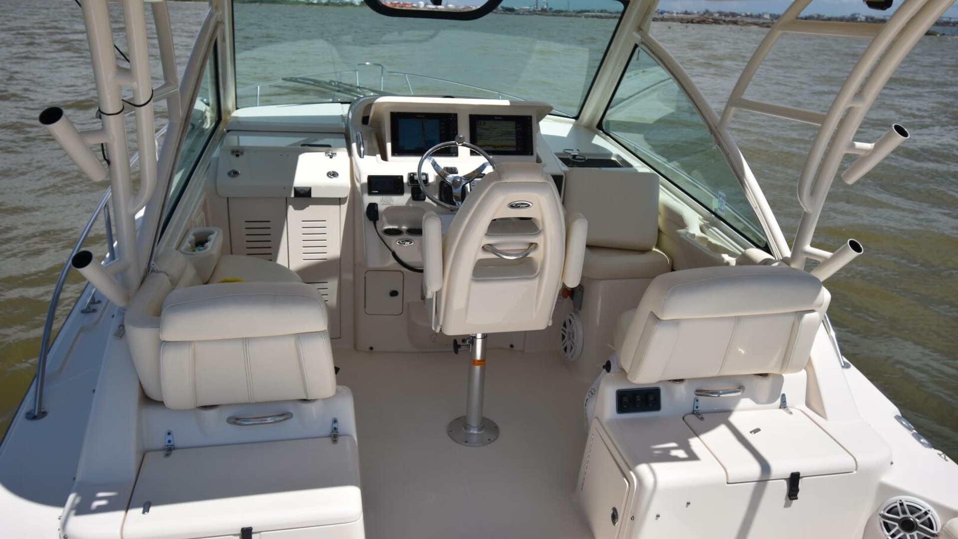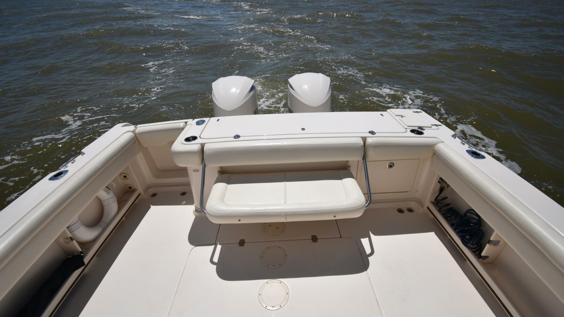 This model comes well-equipped with a host of standard features, such as a built-in swim/dive platform, sturdy hardtop with radio box, 4kW generator, a 45-gallon livewell, fold-away rear bench, and both fresh and raw water washdowns. Additional highlights include cockpit bolsters, a transom door, aft-facing cockpit seating, a secure electronics locker, bait prep station with sink, transom fish box, and a bow pulpit.