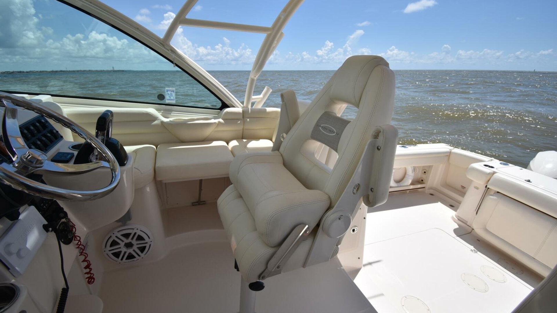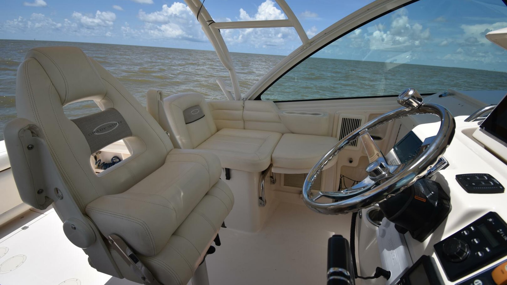 The Grady-White 330 Express has earned a reputation as one of the top-performing express fishing boats of its time. Designed with a centerline helm, it offers unobstructed 360-degree visibility, while its generous 11'7" beam delivers more room in both the cockpit and cabin than many boats in its category. Notable upgrades include a raised cockpit floor and taller windshield to enhance the view from the helm, along with a reinforced transom engineered to support Yamaha F-350 four-stroke engines.