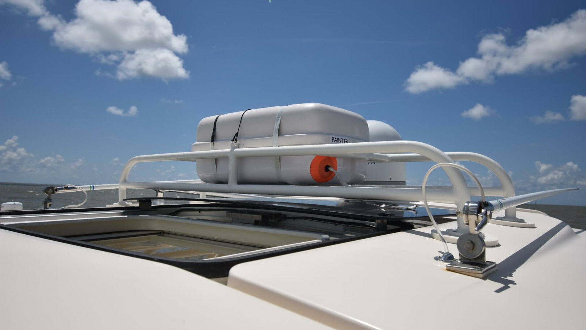 - Life Raft Mounted on Top (2023 Liferaft mount powder coated and installed)