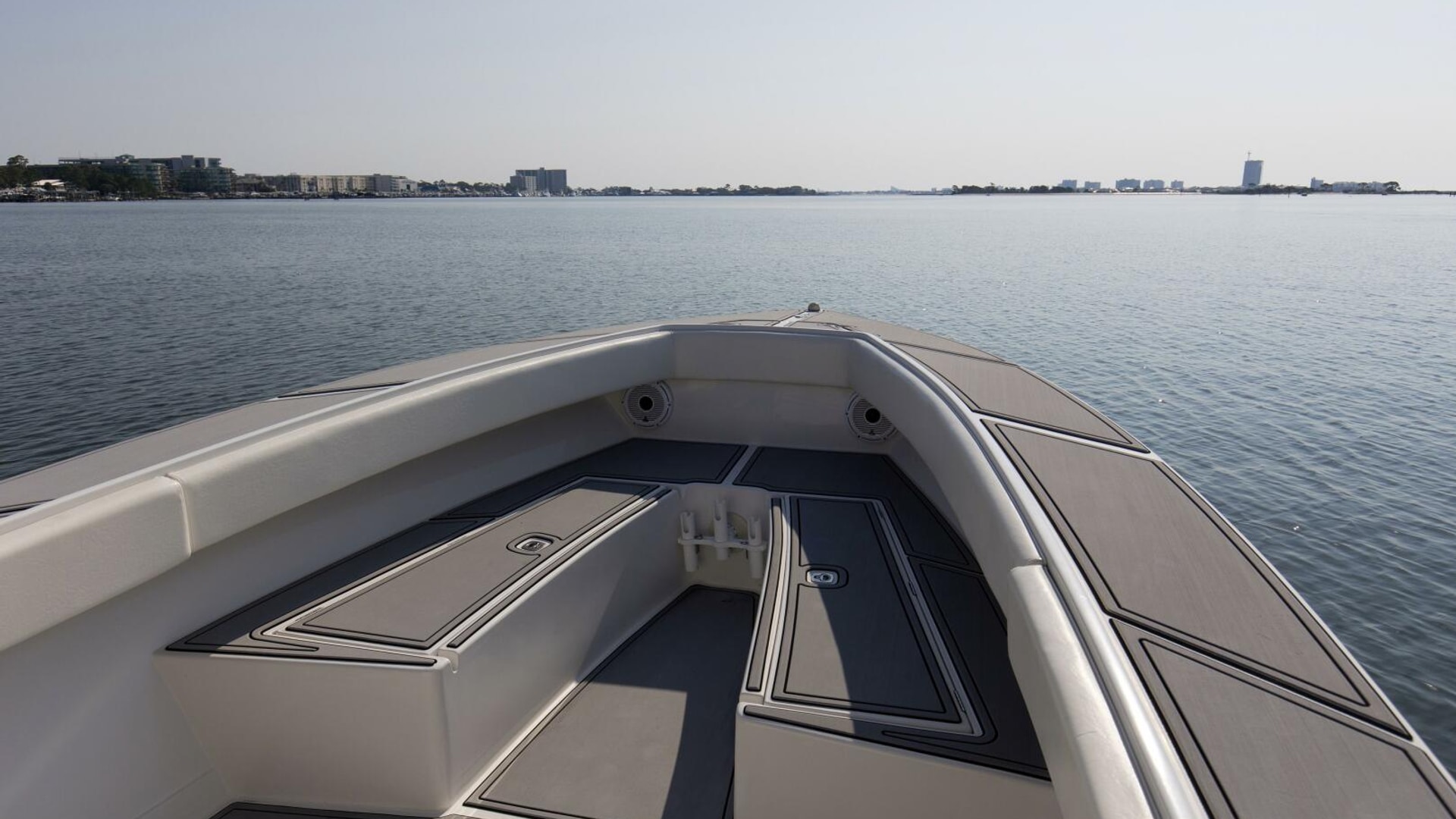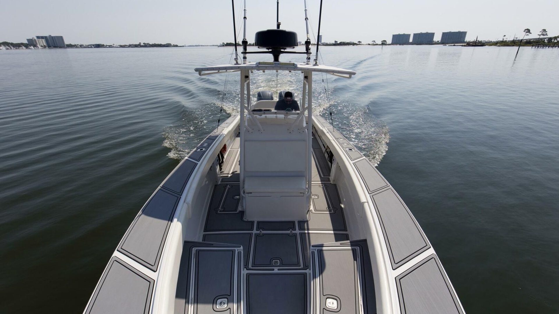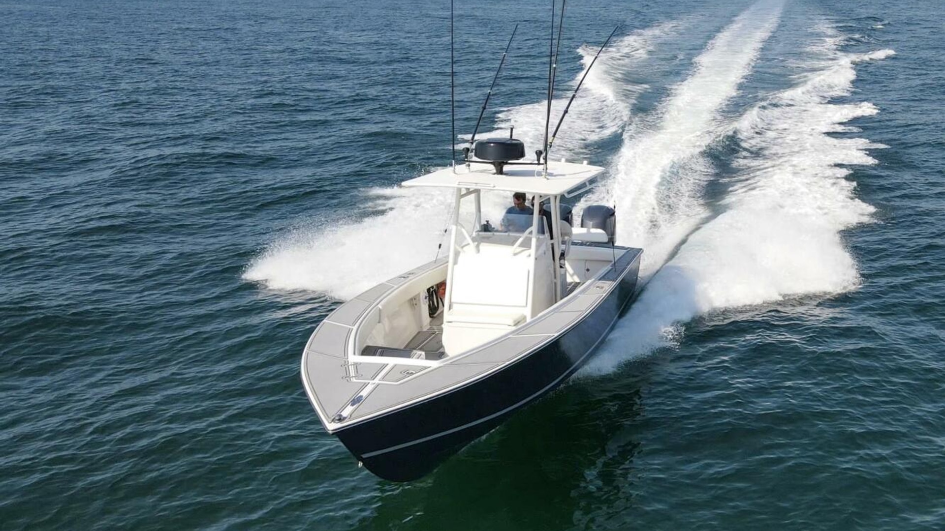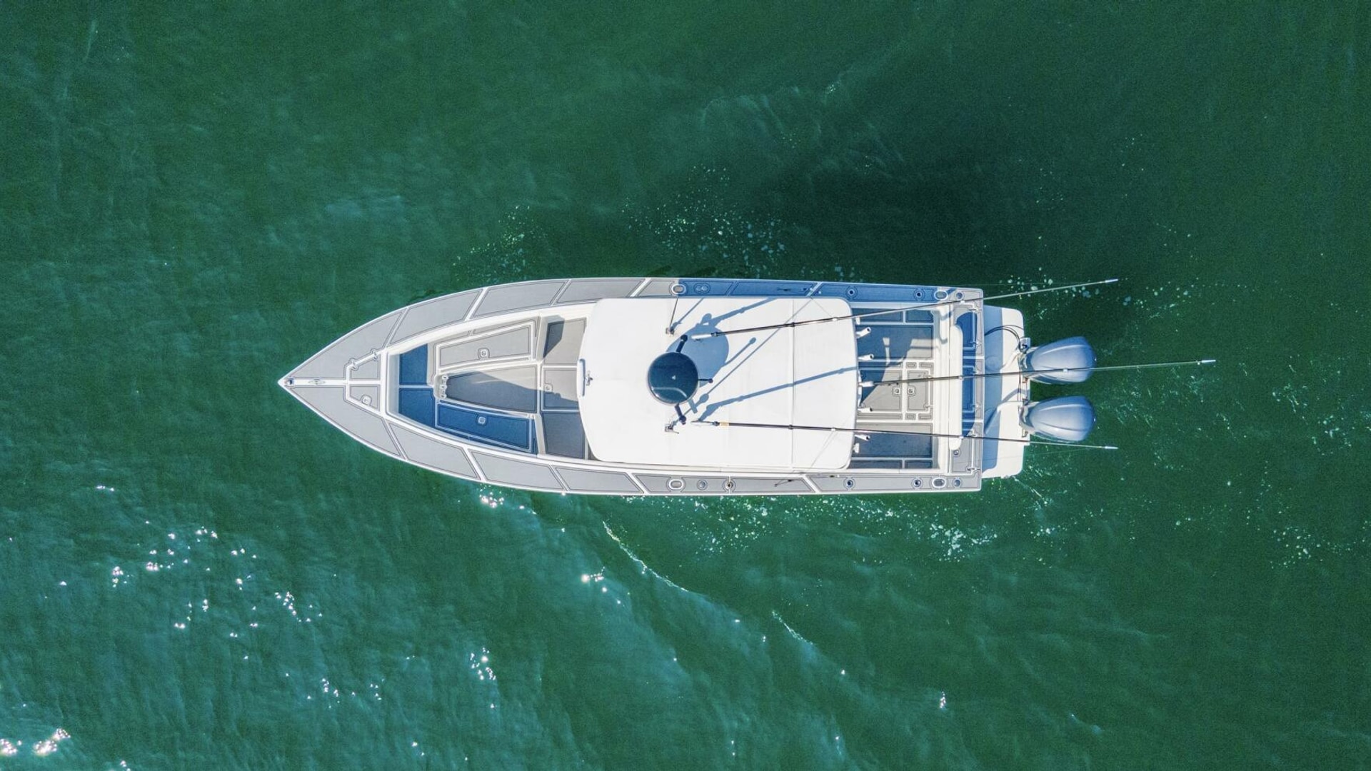 2004 31 Jupiter 31FS "Smoke Show" is a standout example of premium refit and offshore capability. This center console has been meticulously upgraded to deliver modern performance, comfort, and style — starting with twin Yamaha F300s that offer reliable power and speed. The hull gleams in freshly applied Awlgrip Shark Gray, complemented by a powder-coated radar and hardtop that elevate its sleek, commanding profile.