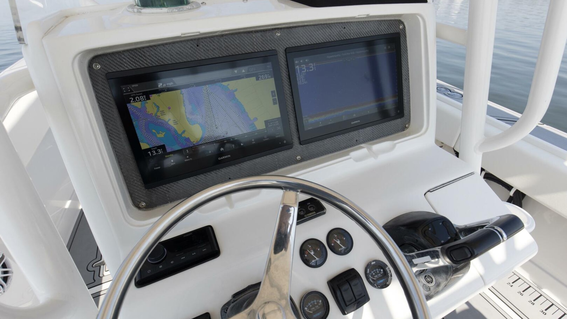 Step aboard and you’ll find new Seadek flooring, custom upholstery, and updated lighting that create a clean, comfortable environment for both serious anglers and weekend cruisers. The electronics suite is top tier: dual Garmin 8616 displays, new autopilot, and a powerful JL Audio system ensure you’re equipped for navigation, entertainment, and control at sea. Additional upgrades include new batteries, pumps, and a full engine service — making “Smoke Show” truly turnkey.