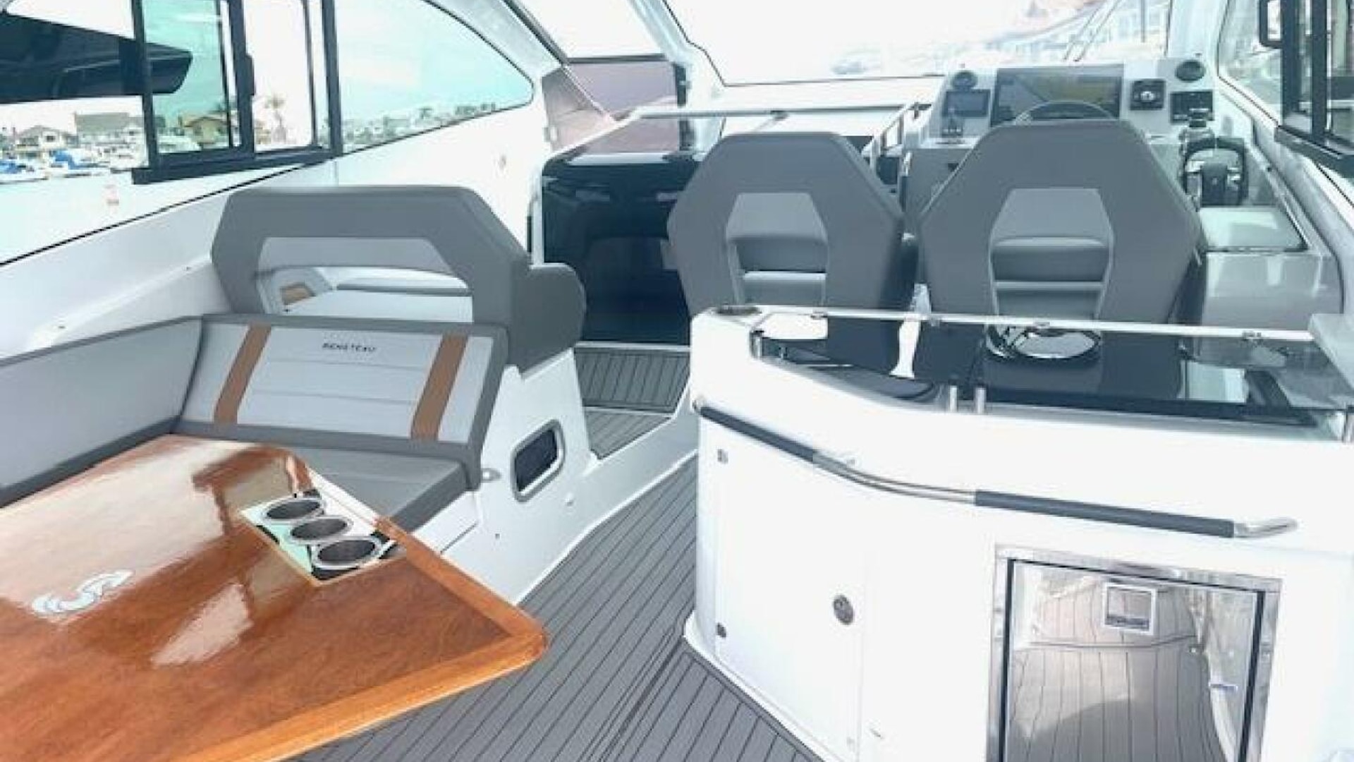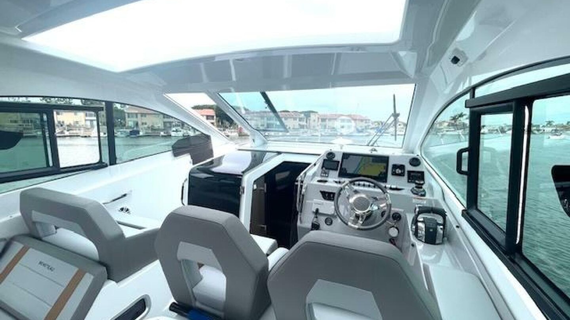 2022 Beneteau 32 Gran Turismo is The modern design of her sides reflects the light elegantly. The well arranged variety of spaces on the upper deck have easy maneuverability between them and include all the features of a cleverly-designed boat. The Gran Turismo 32 has ample head clearance and will appeal to anyone who loves an open boat. Designed to provide a perfect transition from a day boat to an express cruiser, the Gran Turismo 32 makes use of the Flyer 10 deck plan, while retaining the panache of the Gran Turismo line. It also lives up to the challenge the designers set themselves of marrying the spirit of a large, open boat with that of a spacious, comfortable hard top. Call and schedule a showing today!