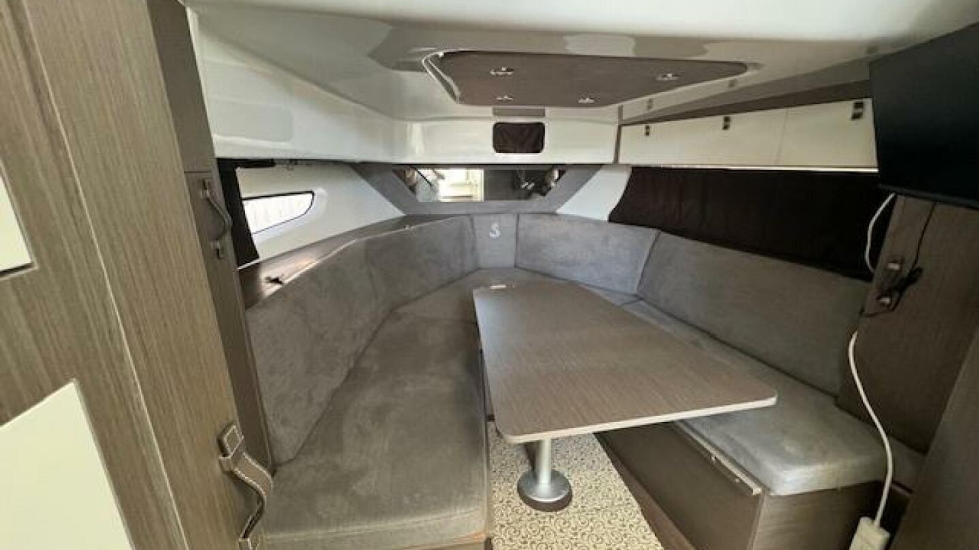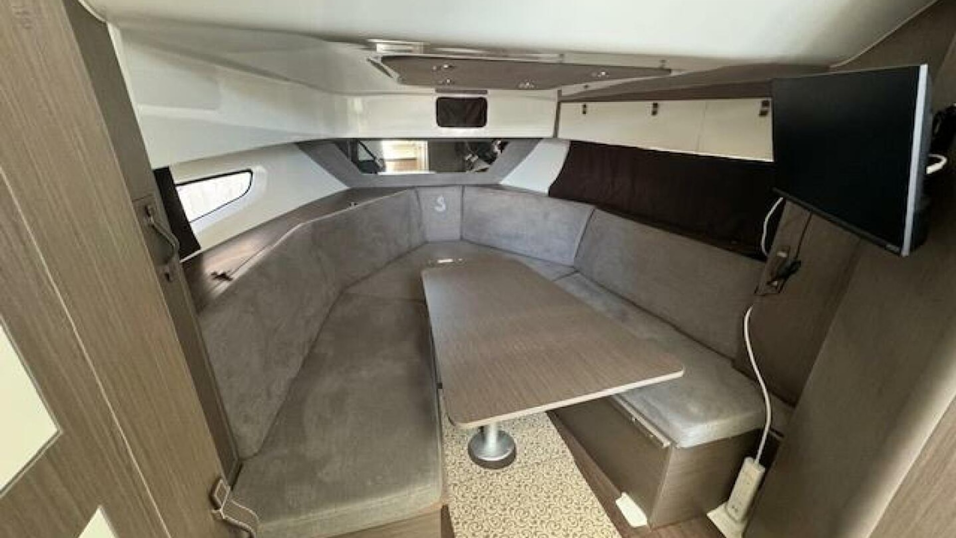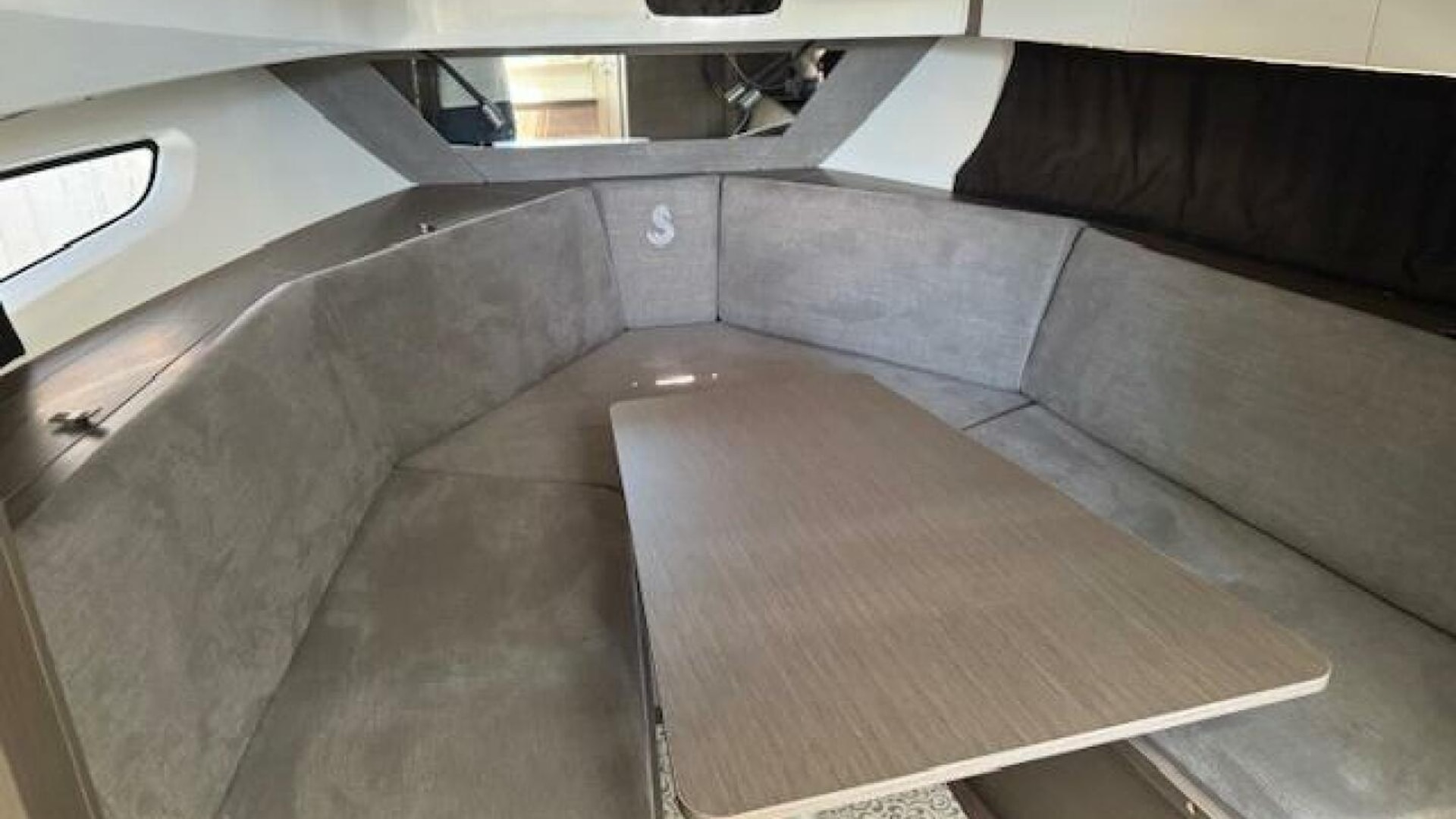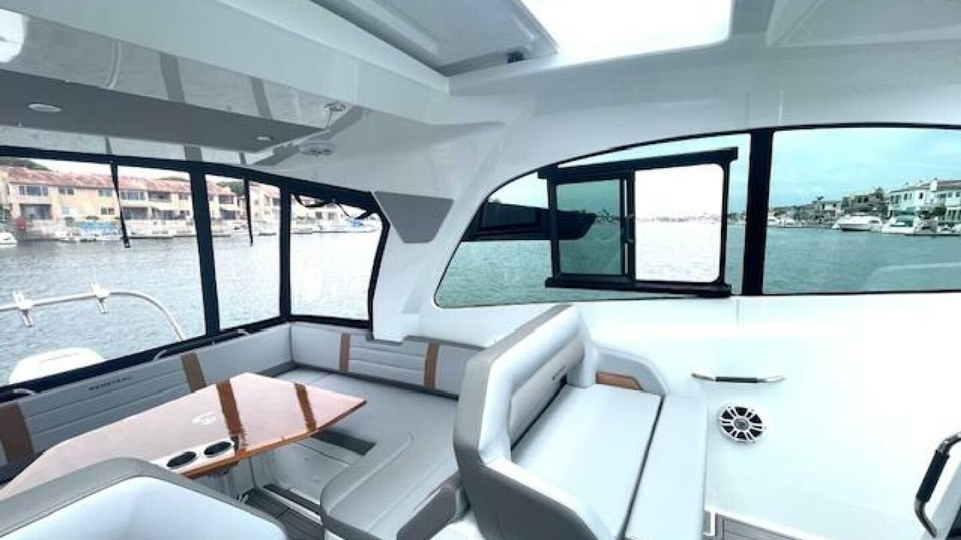 With a panoramic windshield, its opening hard top provides optimal vision underway. At the helm, two bolster seats behind the console are supplemented to port by a double bench seat, allowing four people to share the pleasures of facing the sea while underway.