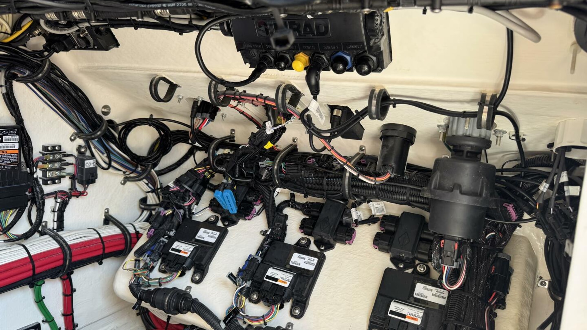 - 357-gallon fuel tank with corrosion-resistant finish that is foamed and fiberglassed into place