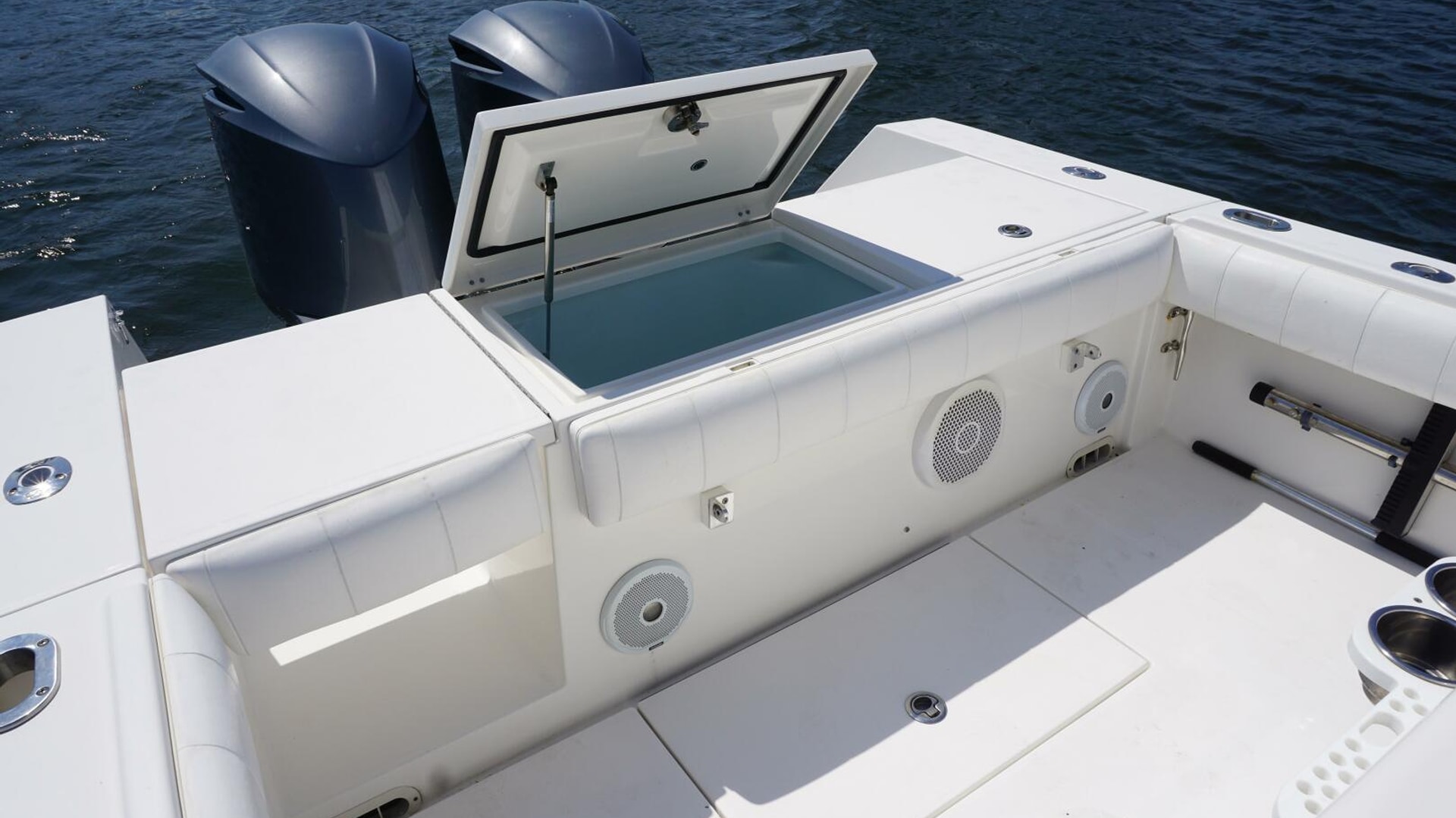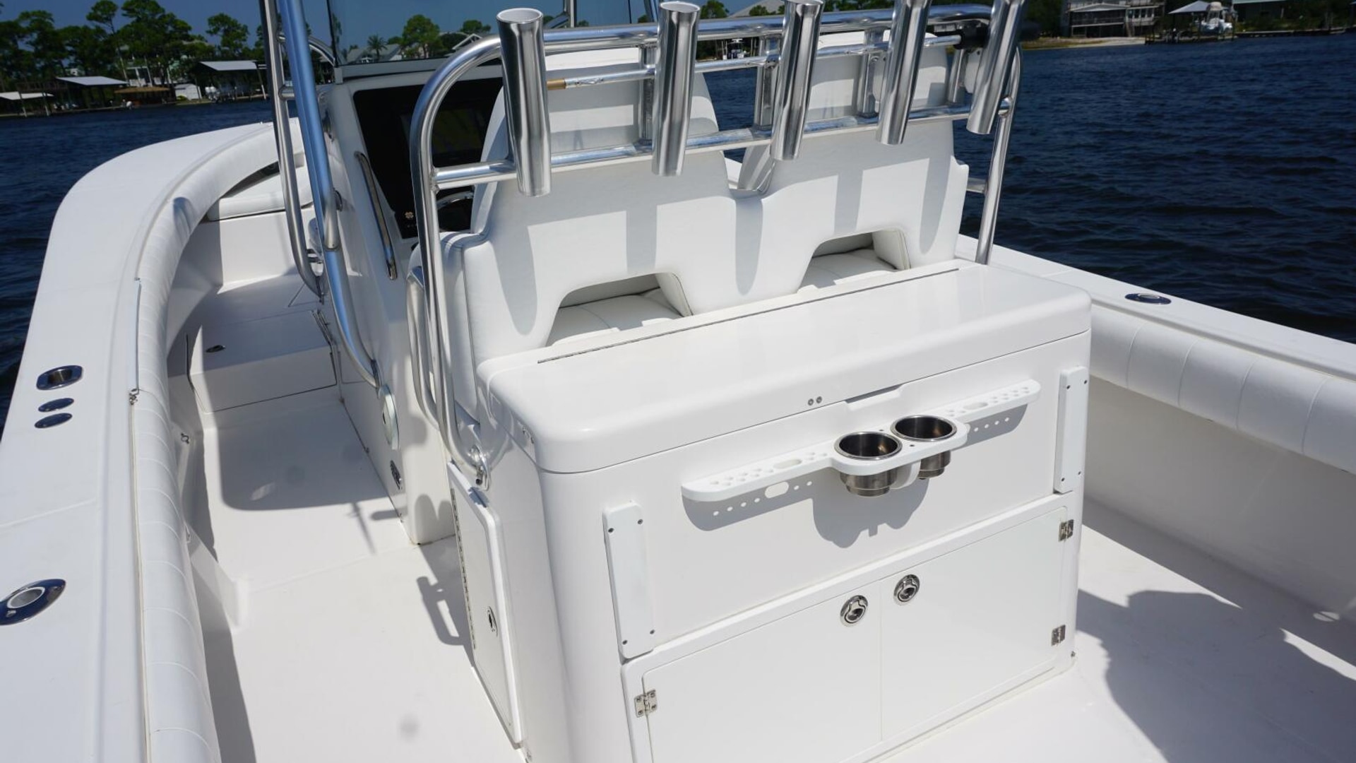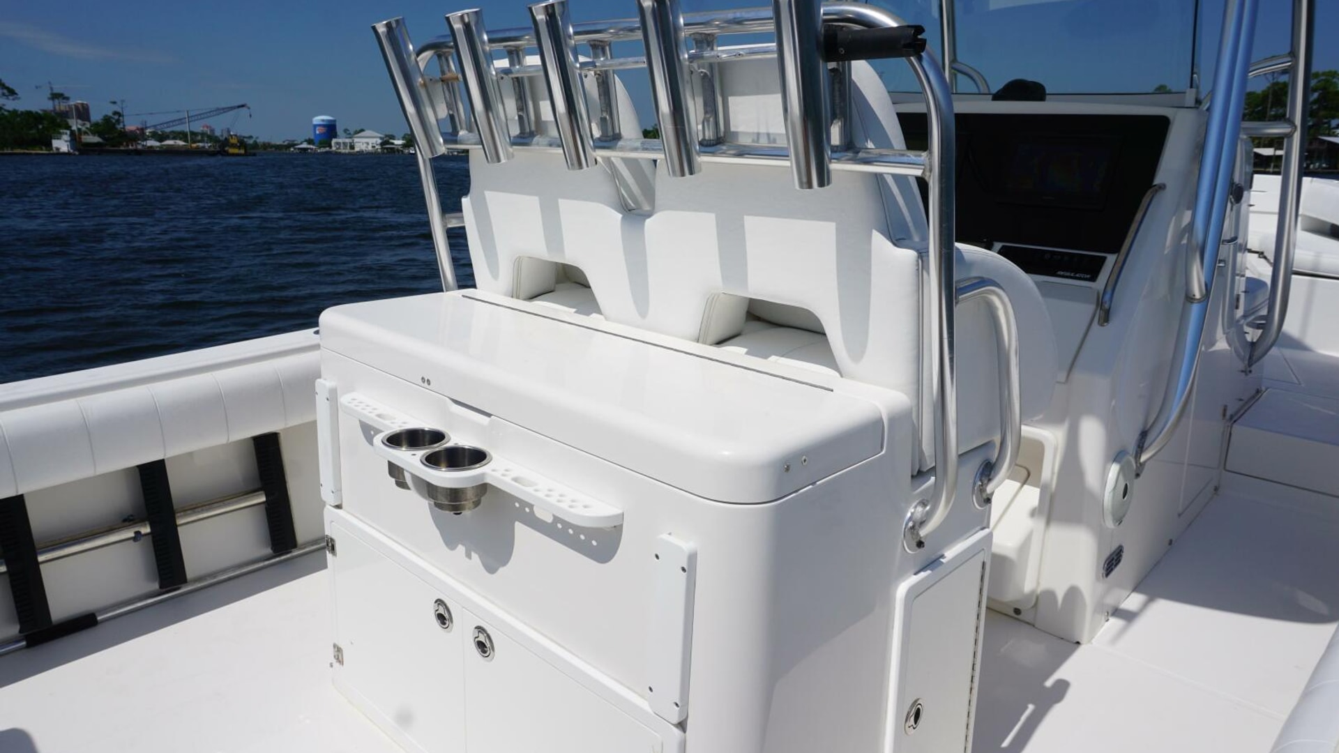 - Deluxe Helm Seat with Aft Tackle Center, Bait Prep Sink, Storage, with 5 Rod Seat Back Rocket Launcher