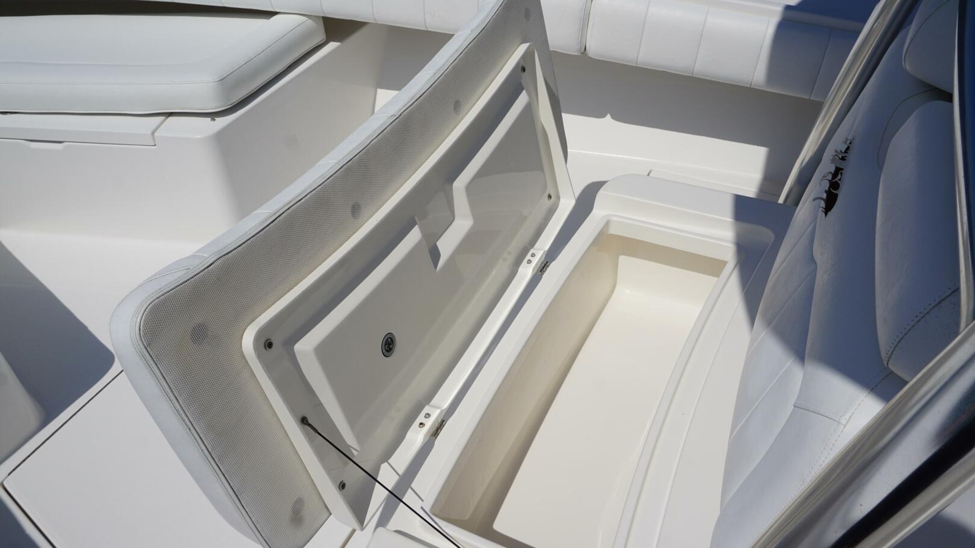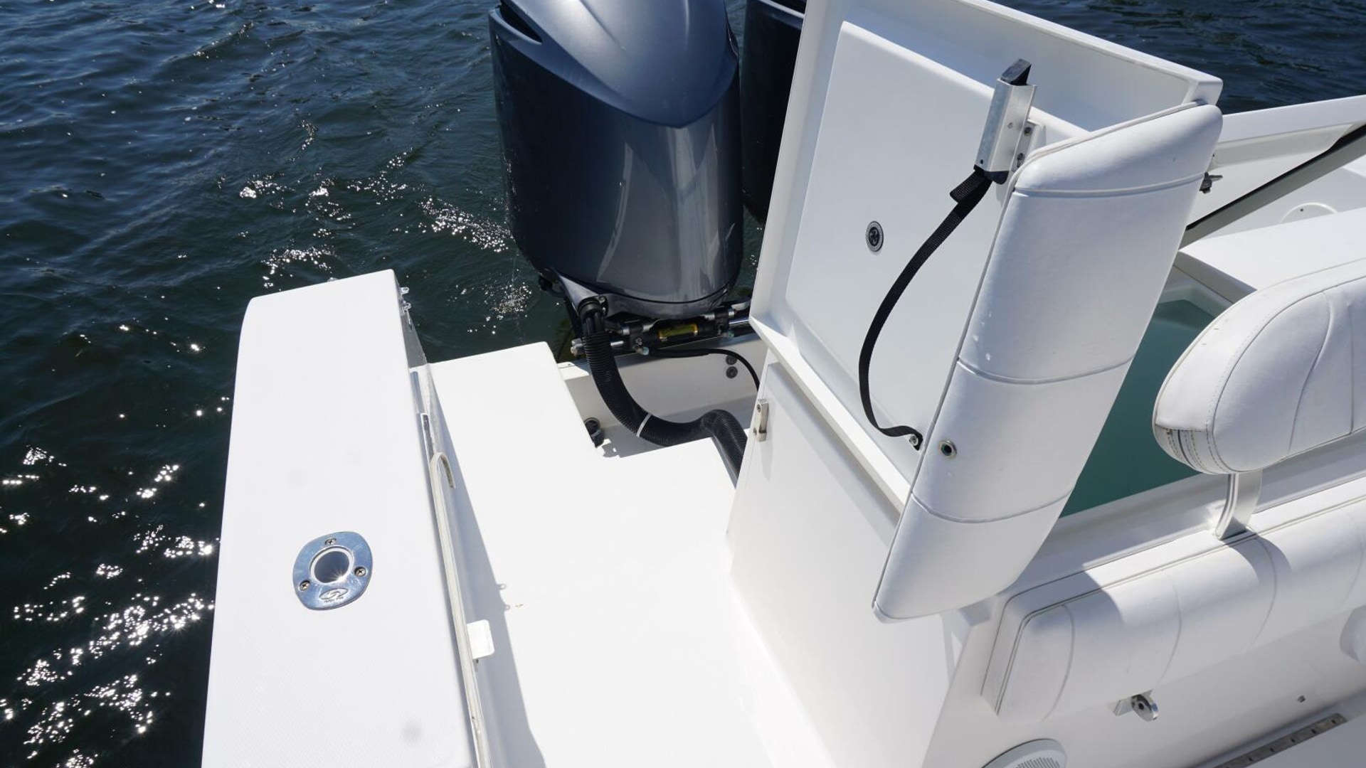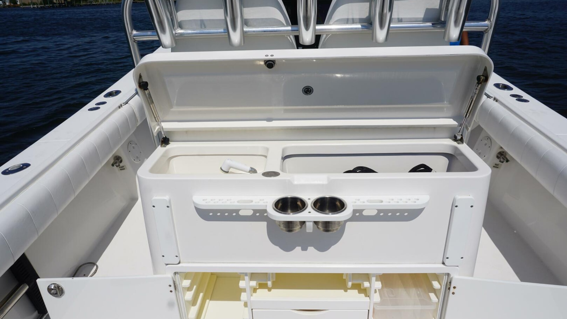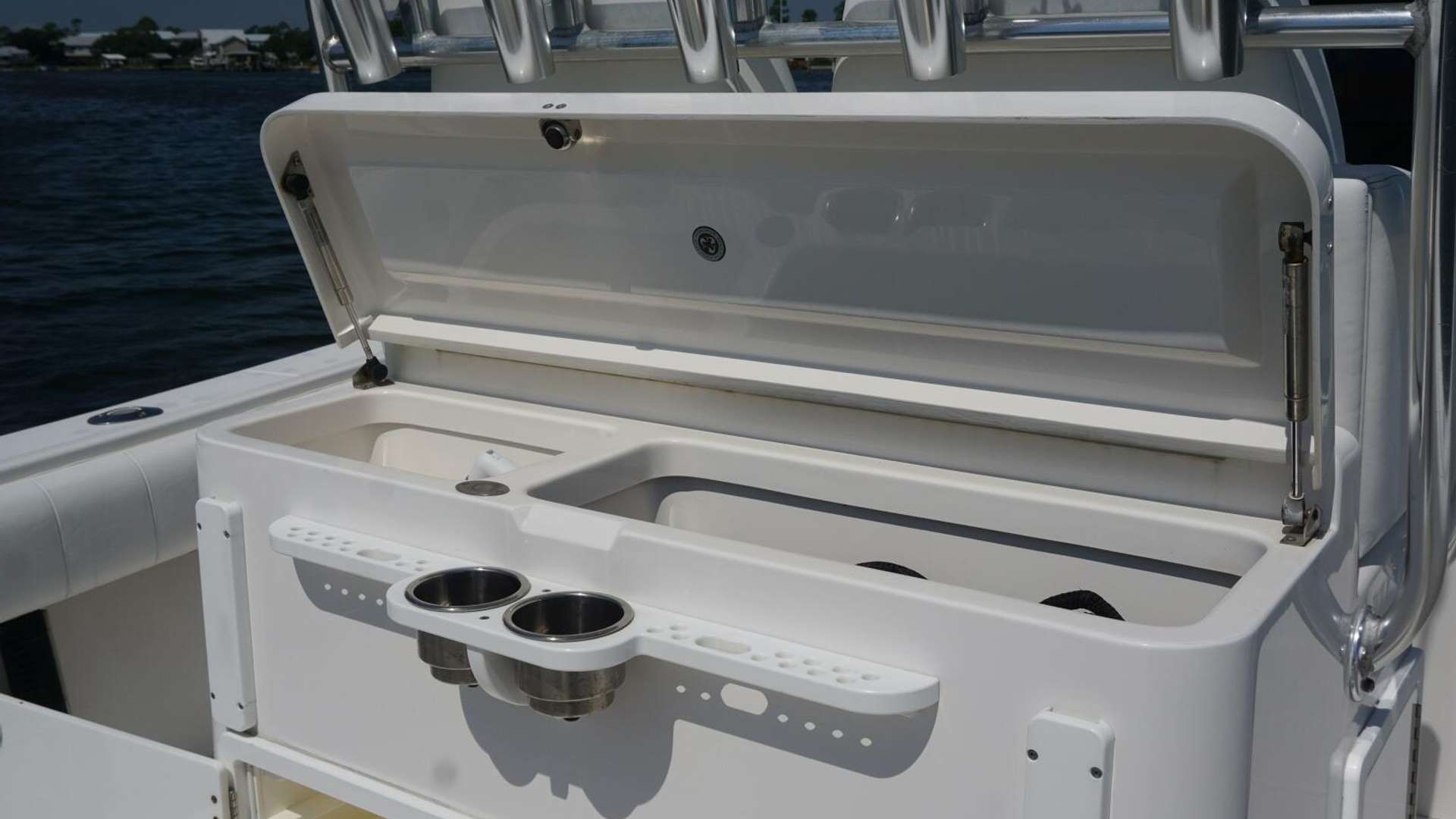 - Deluxe Helm Seat with Aft Tackle Center, Bait Prep Sink, Storage, with 5 Rod Seat Back Rocket Launcher
