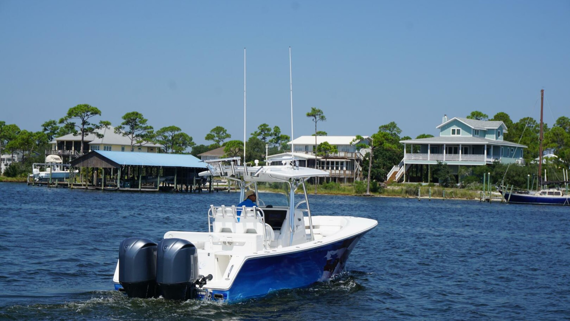 - Twin Yamaha F350’s with Yamaha Remote Controls and MPD Display