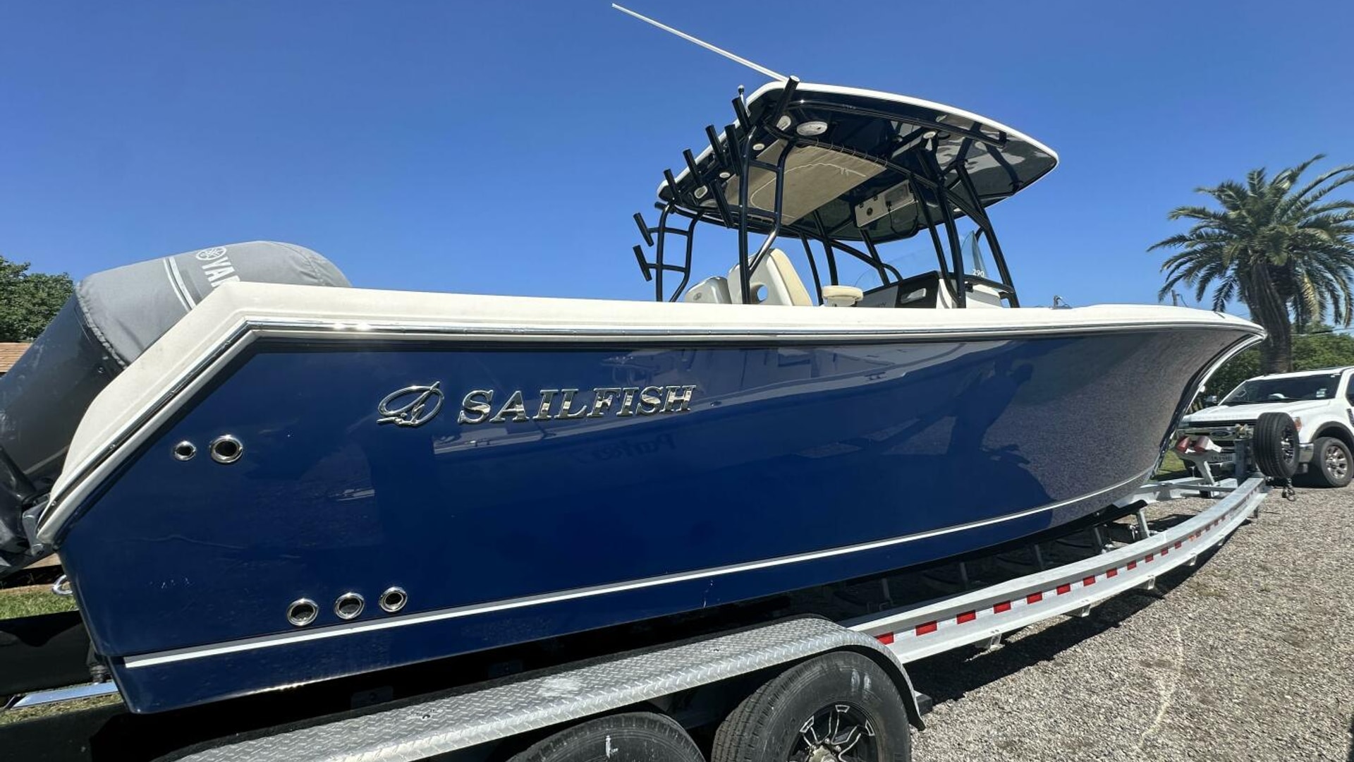 The 29 Sailfish is a versatile and well-regarded center console boat designed for both fishing enthusiasts and leisure cruisers. With a length of 29 feet, it offers a spacious layout, featuring ample seating, a large fishing cockpit, and storage compartments for gear and equipment. Its deep-V hull design ensures a smooth ride even in choppy waters, making it ideal for offshore adventures. Equipped with powerful twin Yamaha 300 HP engines, the 29 Sailfish delivers impressive speed and fuel efficiency, while its fish-friendly amenities, such as rod holders, fish boxes and live wells, cater to avid anglers. Whether you're out for a day of fishing or a family outing, the 29 Sailfish combines performance, comfort, and reliability. The trailer does not convey.