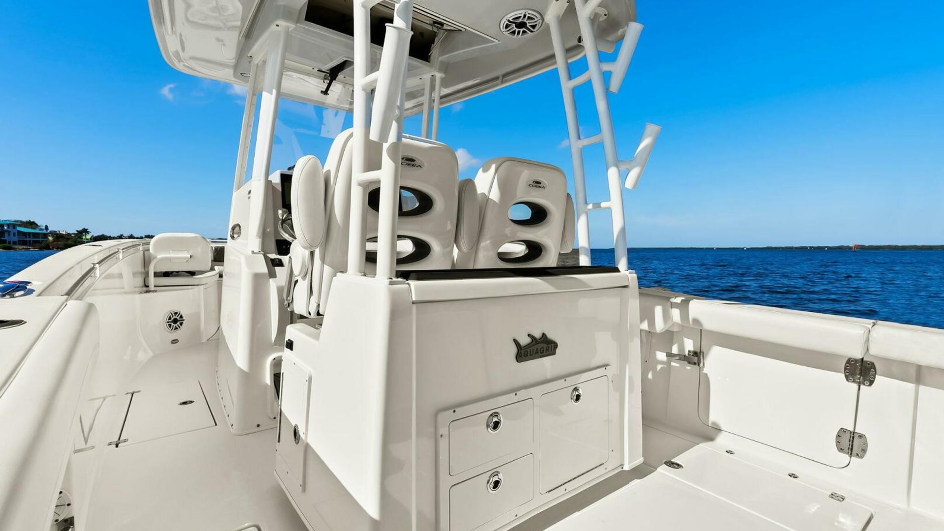 The 2023 Cobia 301 Center Console - seamlessly blends offshore performance with family-friendly comfort. Built on a proven deep-V hull, it delivers a smooth, dry ride in all sea conditions while maintaining exceptional stability at rest. With its spacious layout, advanced helm design, and abundant storage, the 301 is equally suited for serious fishing or all-day cruising. Premium finishes, top-tier electronics, and thoughtful amenities—such as Seakeeper RIDE trim system make this Cobia 301 a comfortable and versatile vessel that excels in both functionality and style.