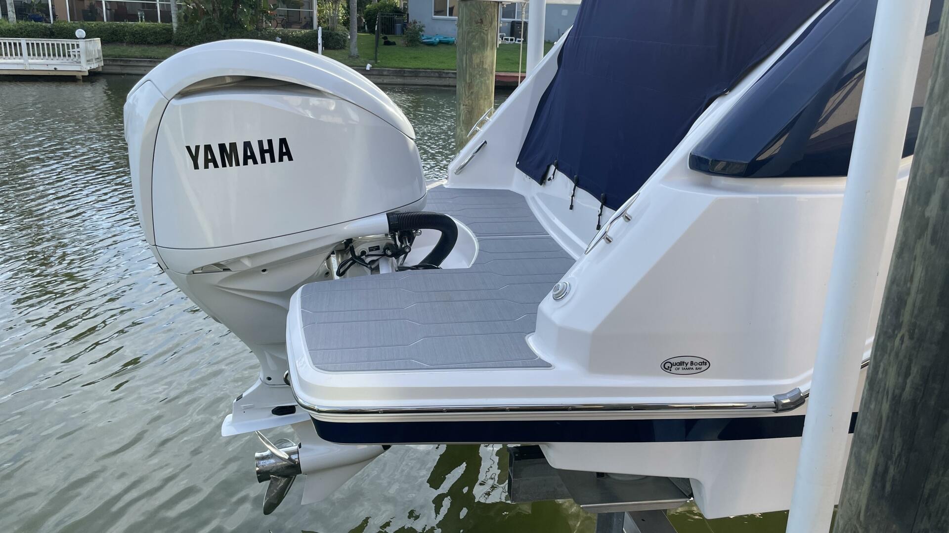 Powered by a fuel-efficient Yamaha 300HP outboard that gets her on plane quickly and delivers a smooth, confident ride at any speed.