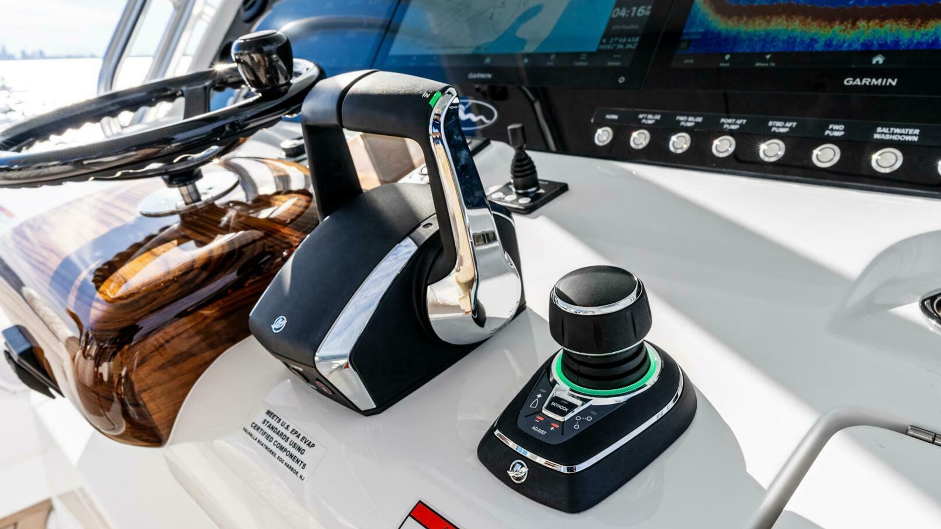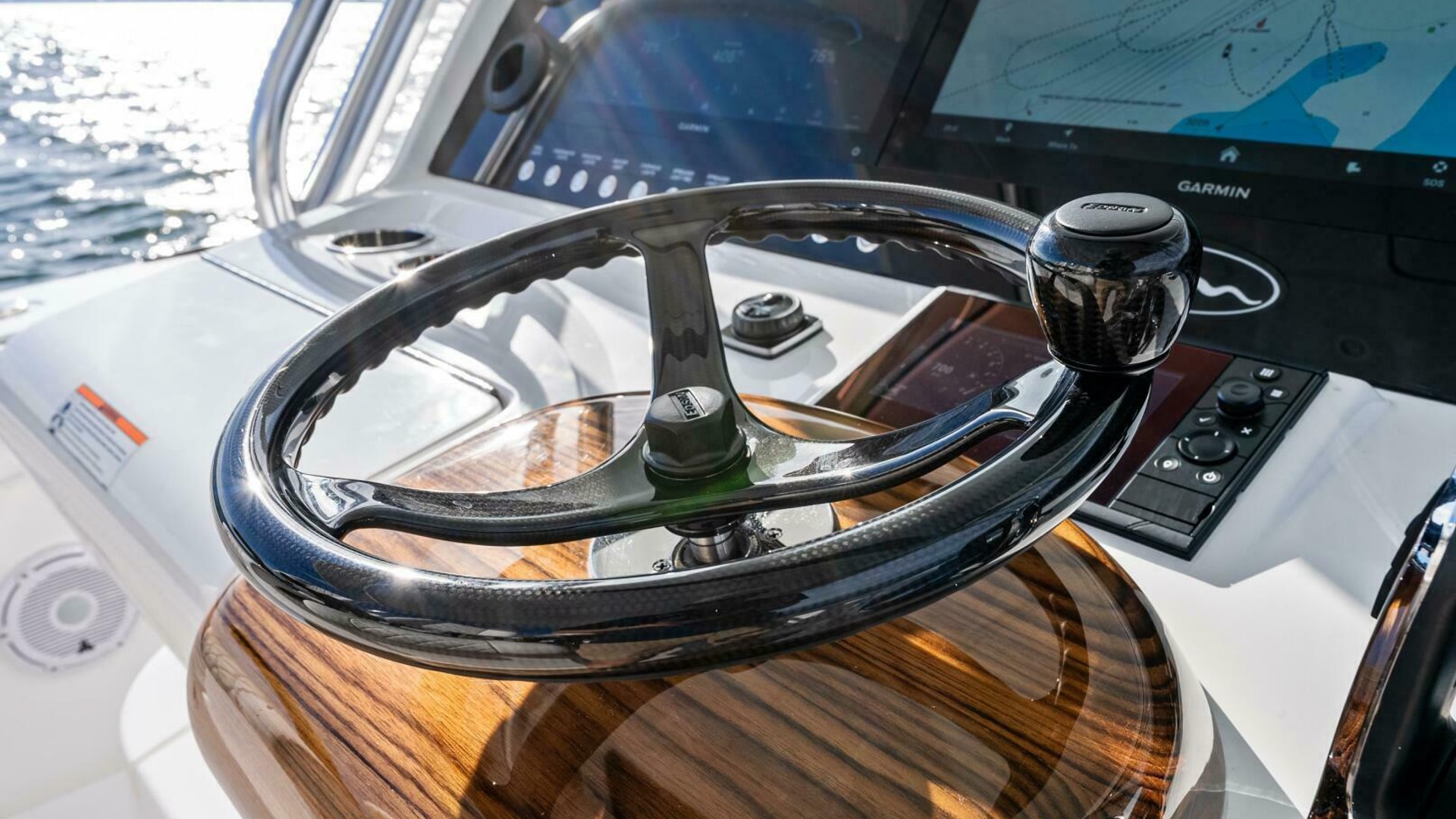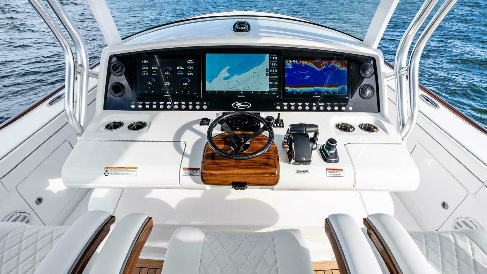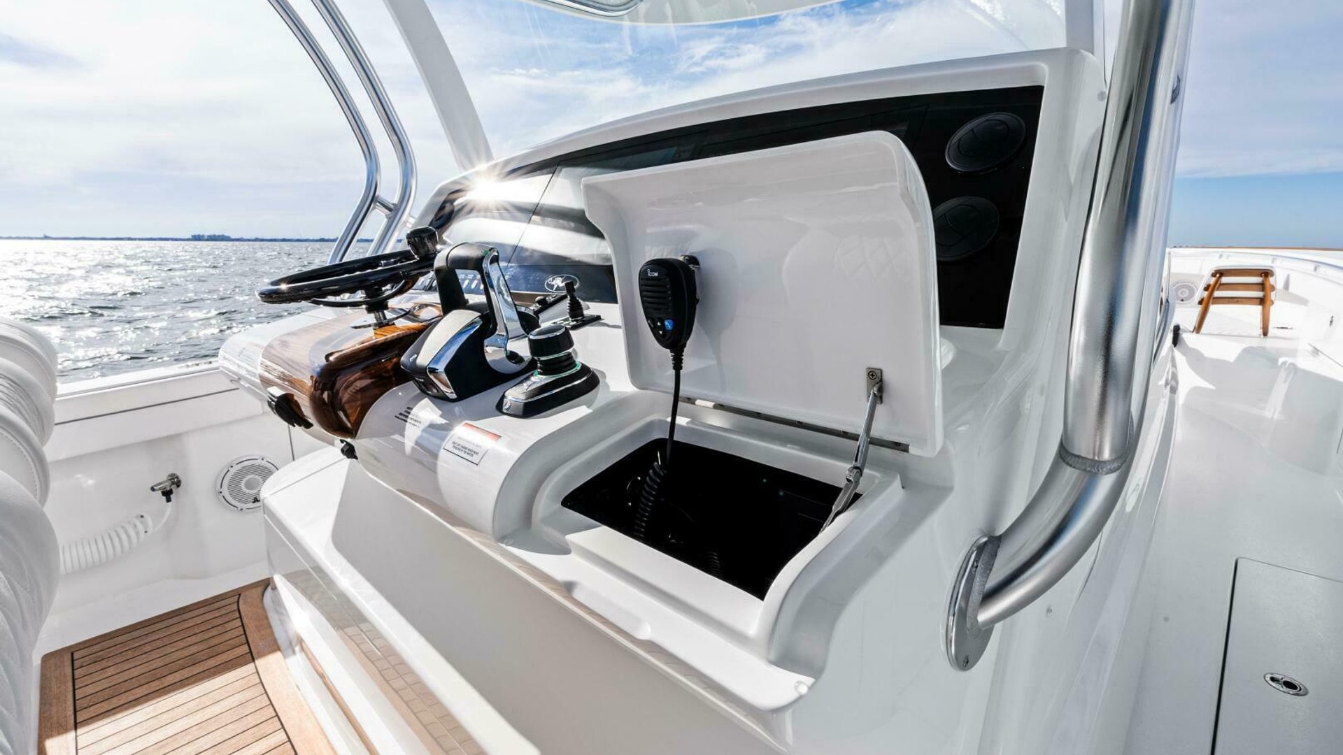 • Teak deck for raised helm platform area, mezz step, and fwd step