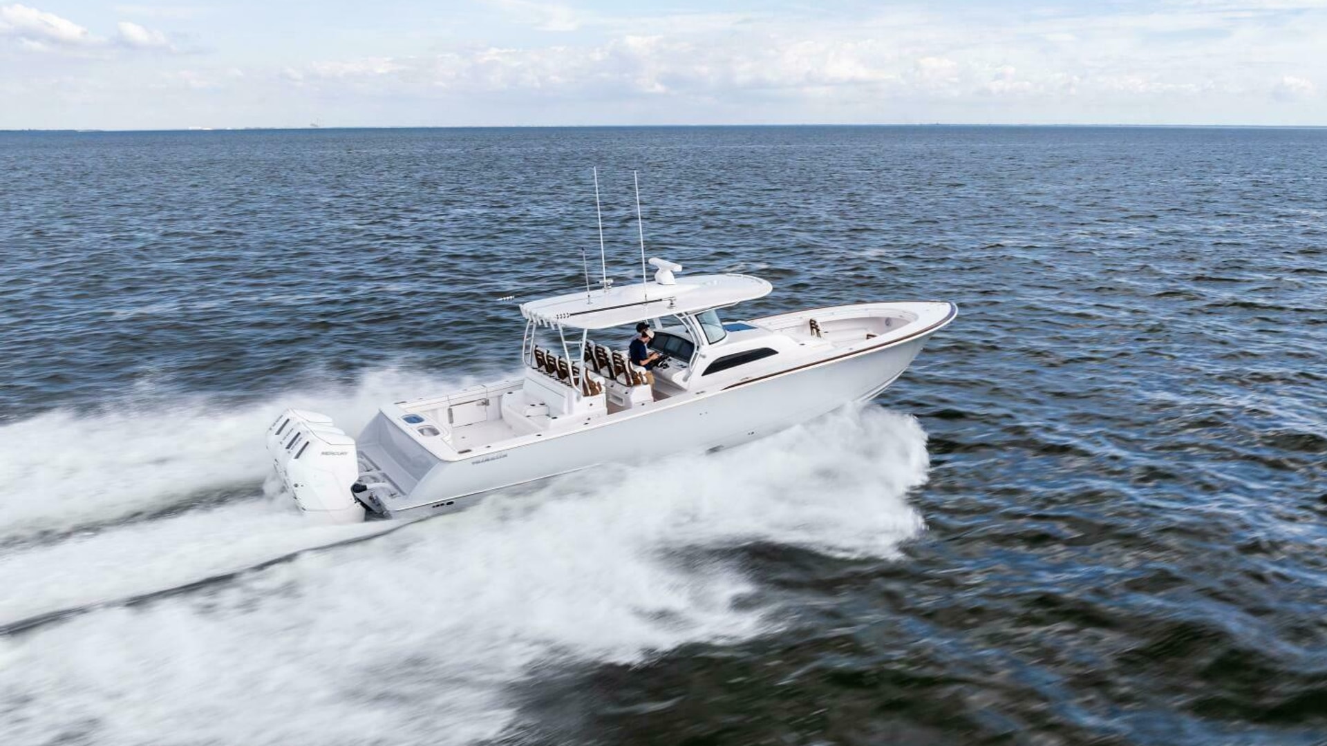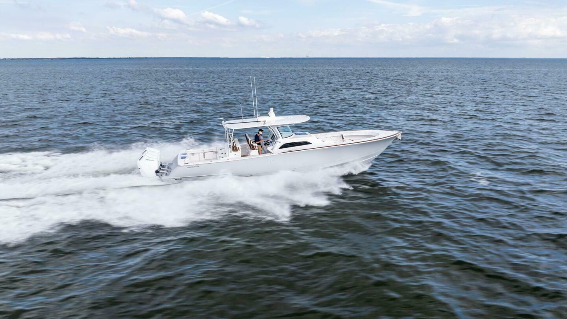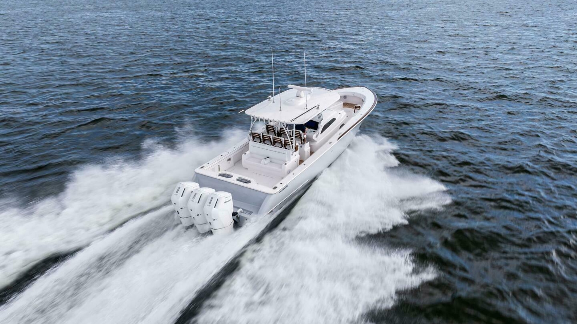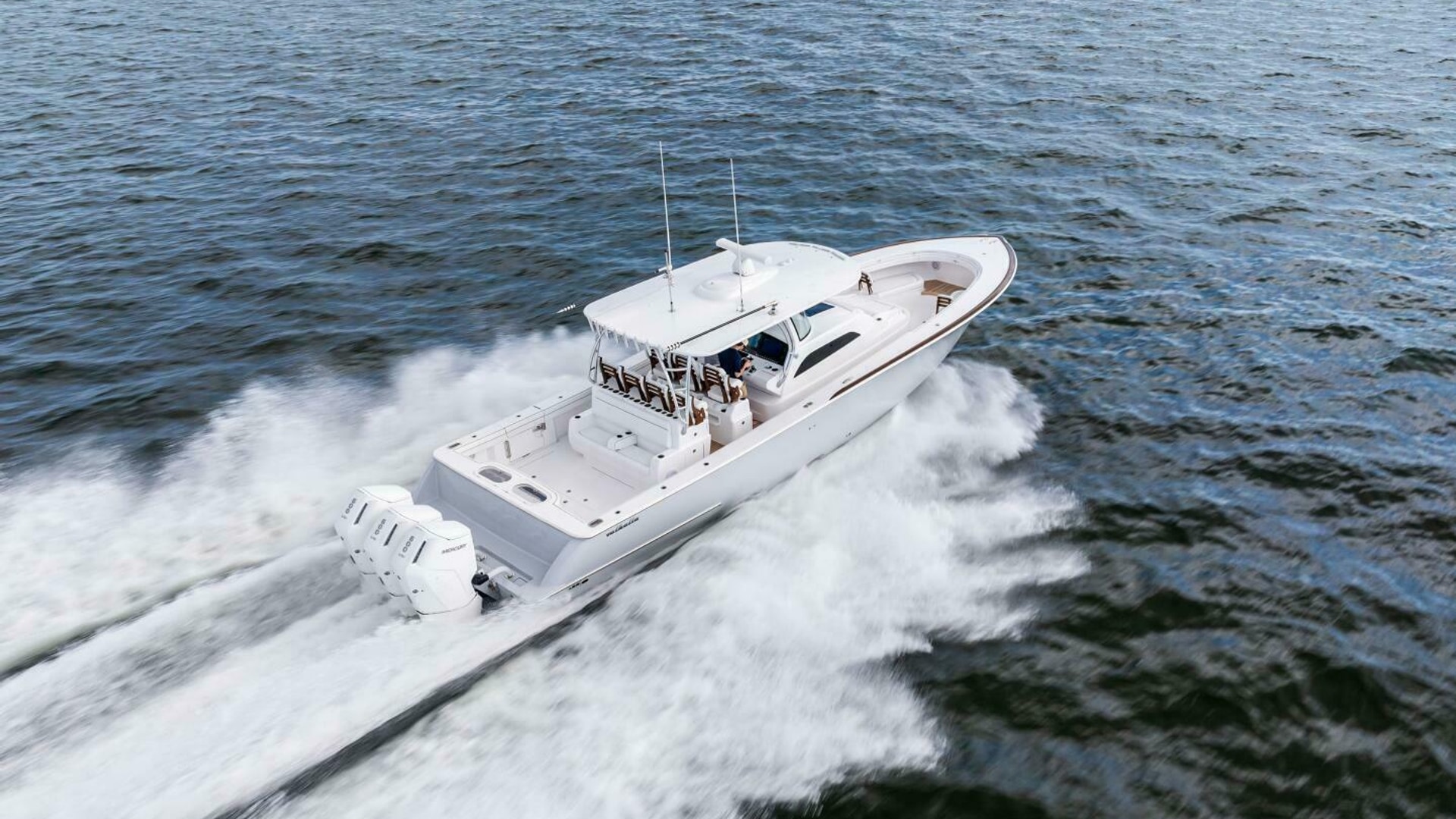 Like its stablemates, the V-46 is an outboard-powered center console that utilizes the patented Michael Peters Yacht Design (MPYD) double-stepped hull. "We've been extremely pleased with the performance of the first three boats," says Design Manager David Wilson. "Our close collaboration with MPYD has continued, and we expect the same high level of performance in this boat."