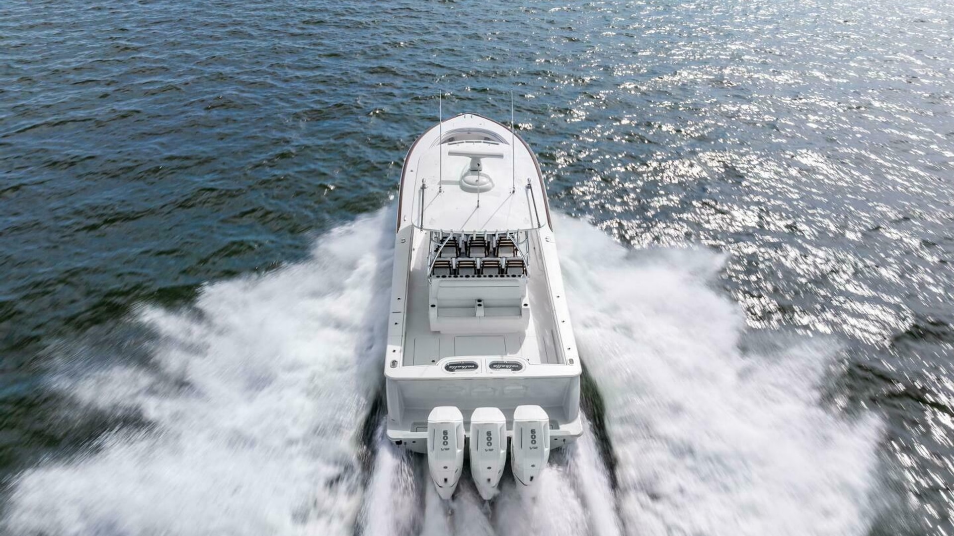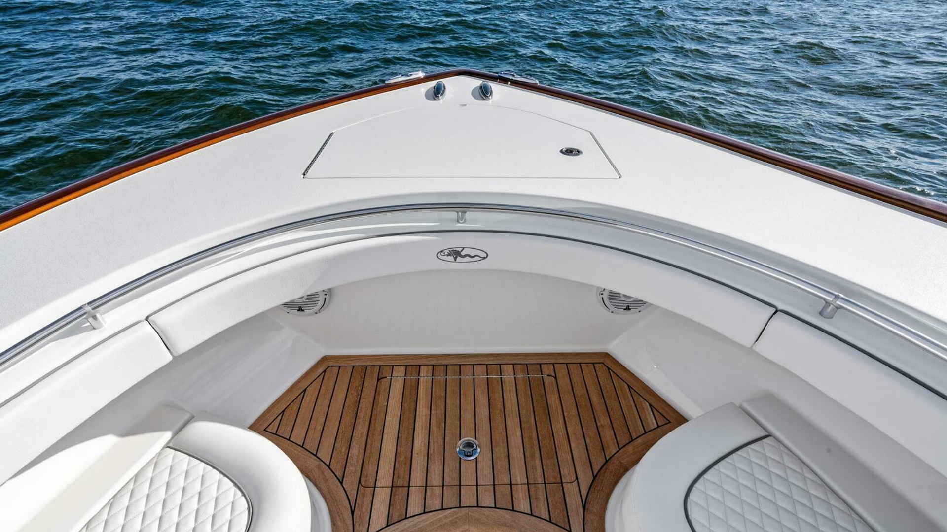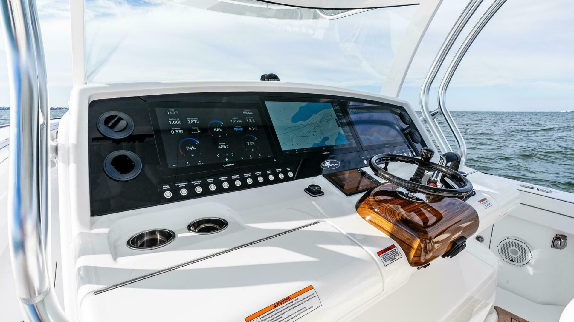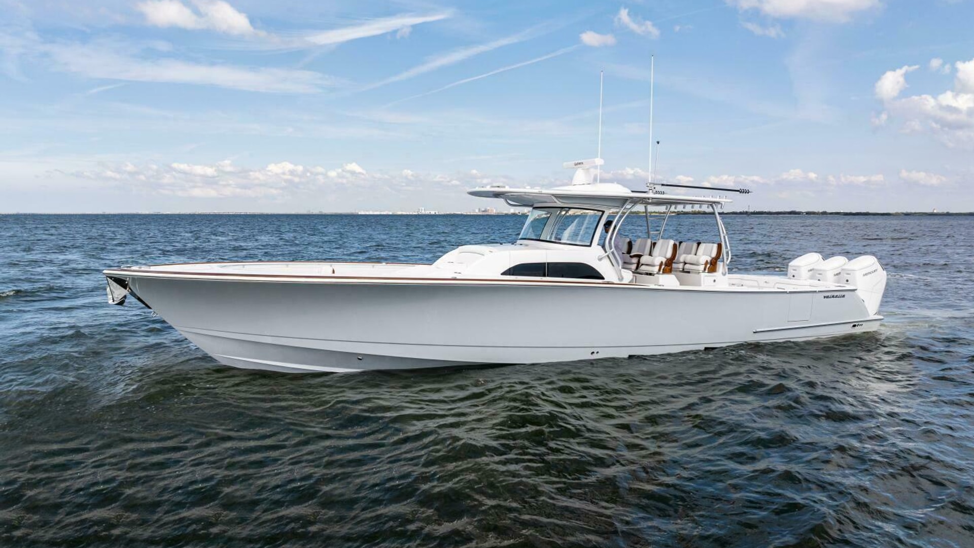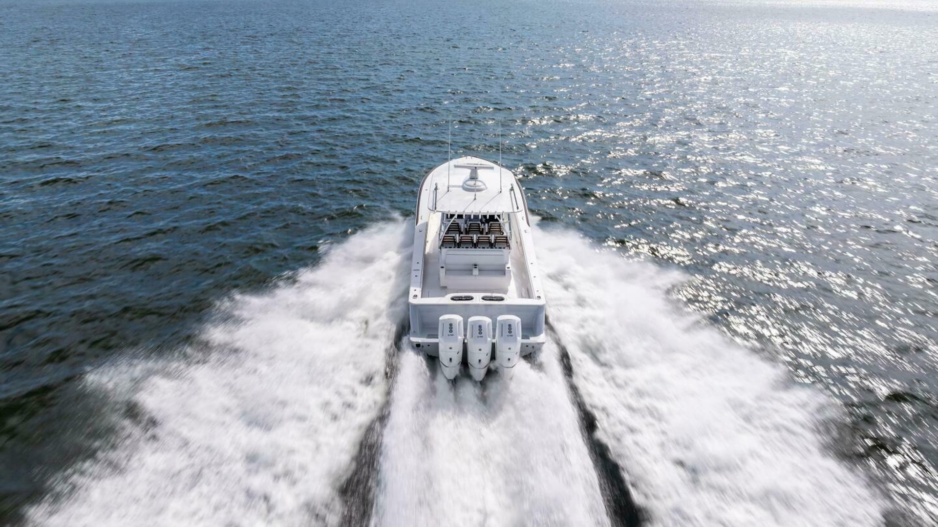 Like its stablemates, the V-46 is an outboard-powered center console that utilizes the patented Michael Peters Yacht Design (MPYD) double-stepped hull. "We've been extremely pleased with the performance of the first three boats," says Design Manager David Wilson. "Our close collaboration with MPYD has continued, and we expect the same high level of performance in this boat."