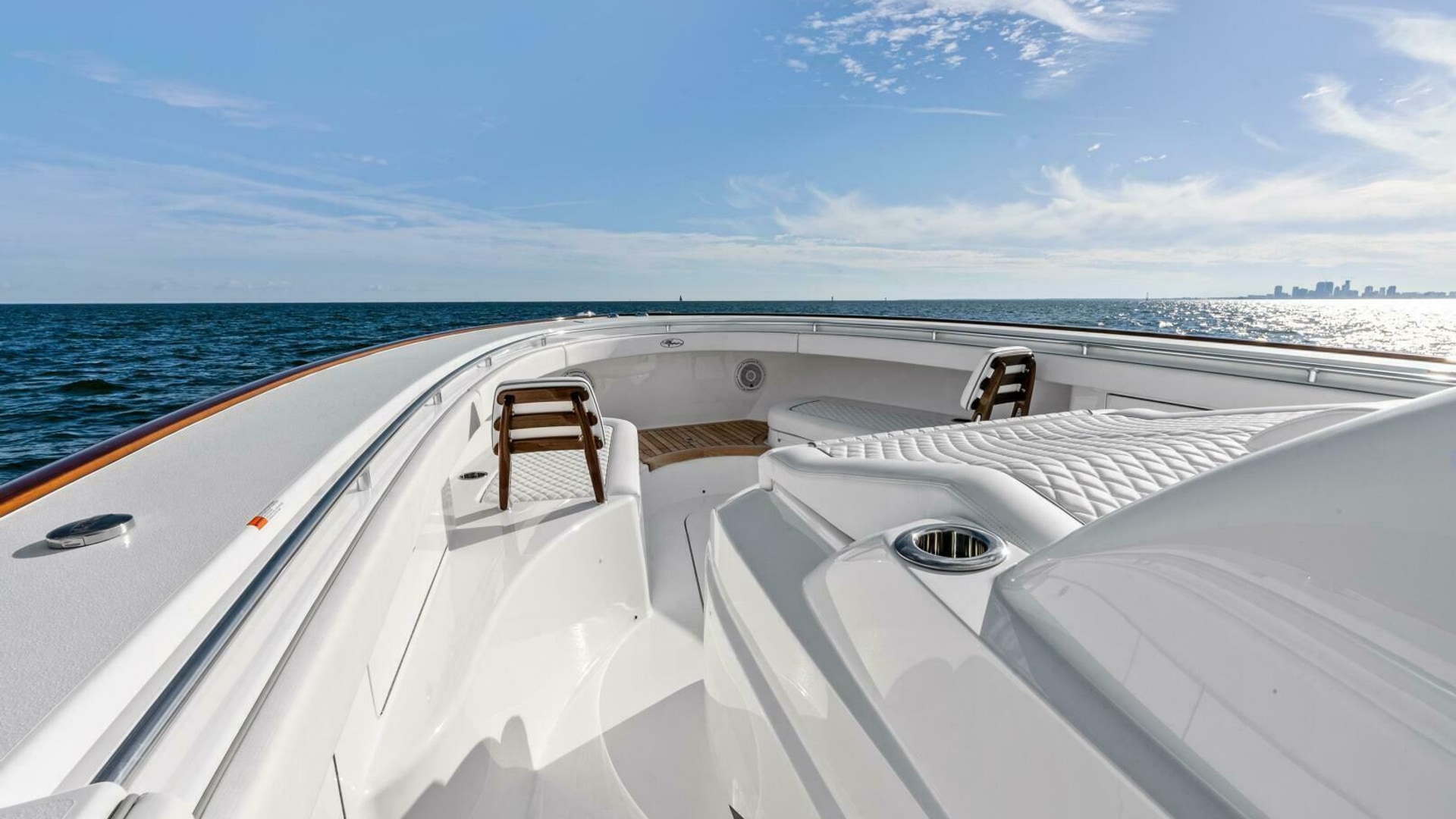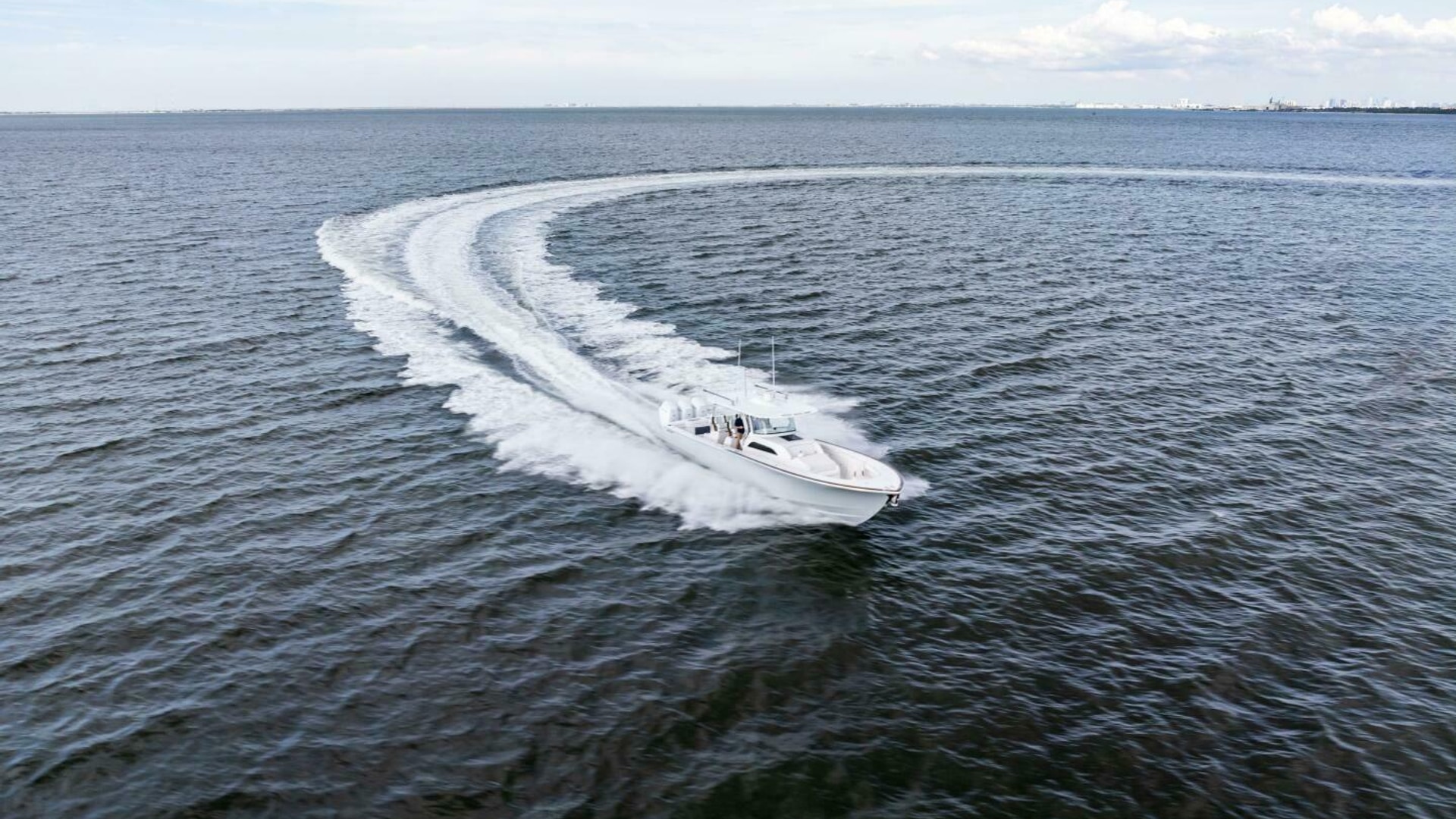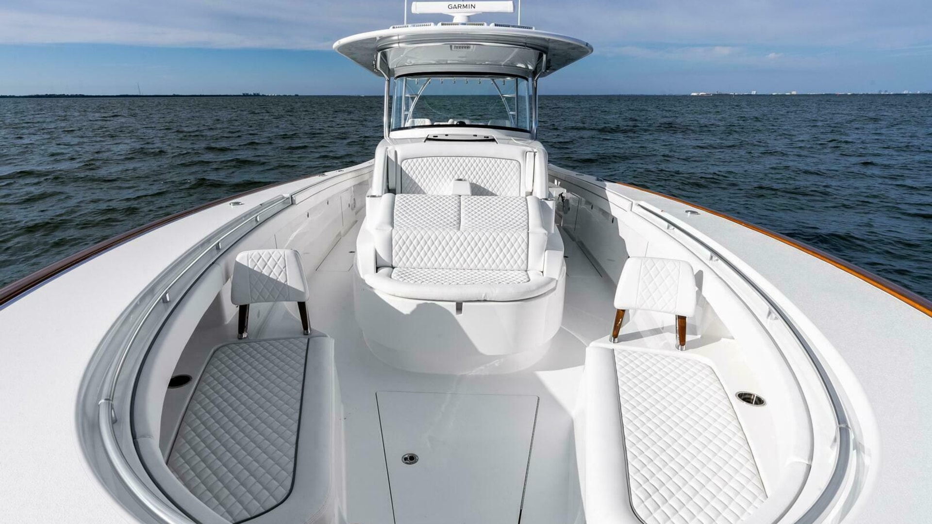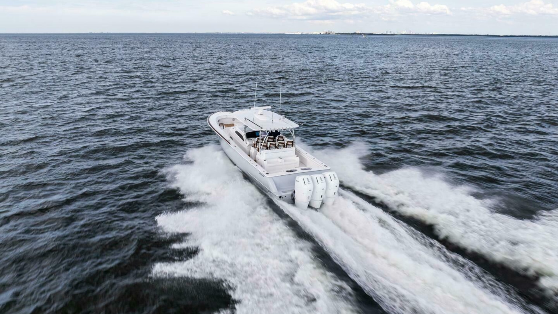Like its stablemates, the V-46 is an outboard-powered center console that utilizes the patented Michael Peters Yacht Design (MPYD) double-stepped hull. "We've been extremely pleased with the performance of the first three boats," says Design Manager David Wilson. "Our close collaboration with MPYD has continued, and we expect the same high level of performance in this boat."