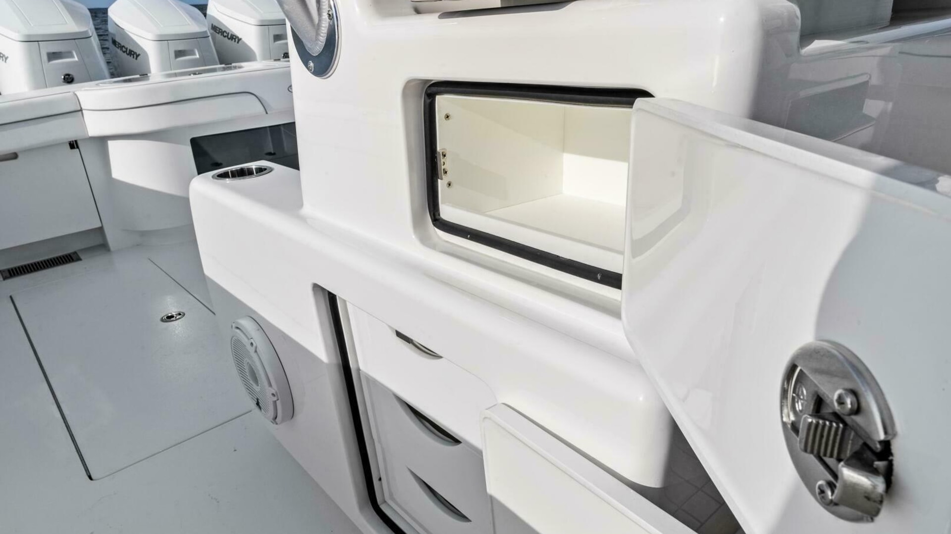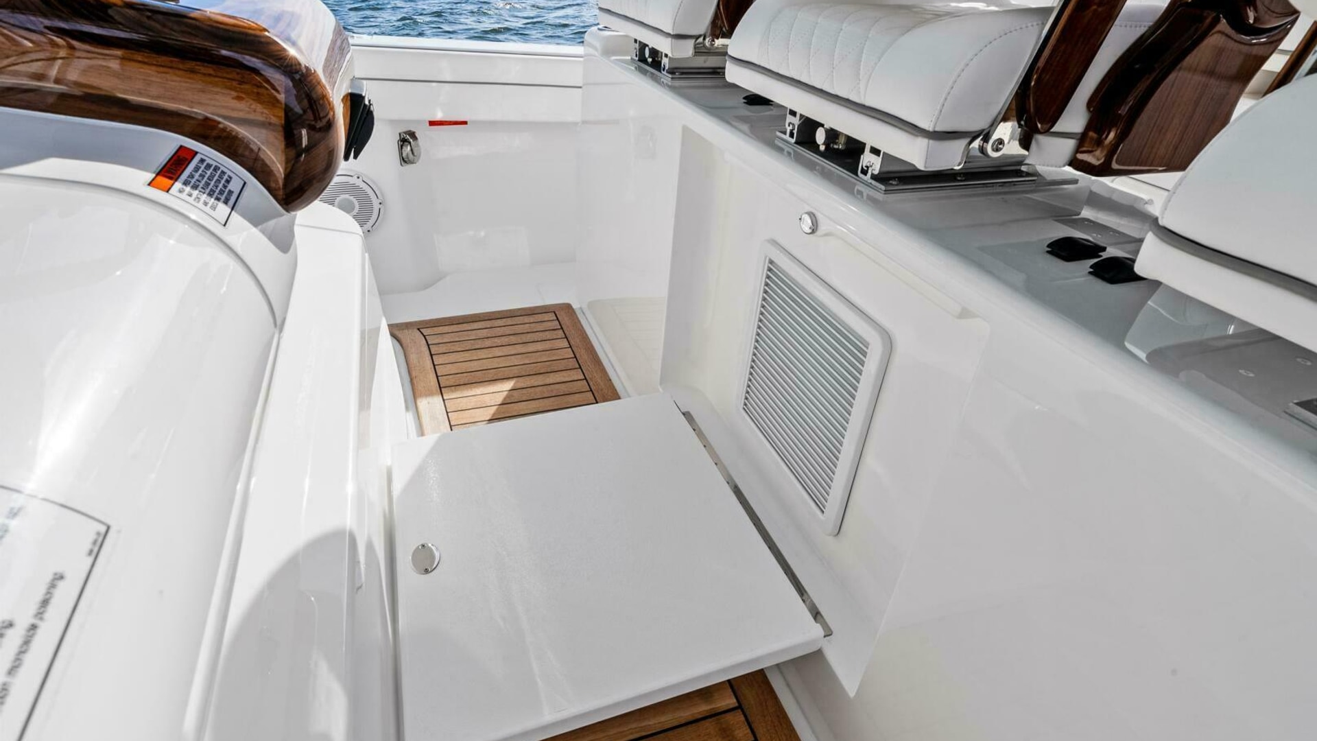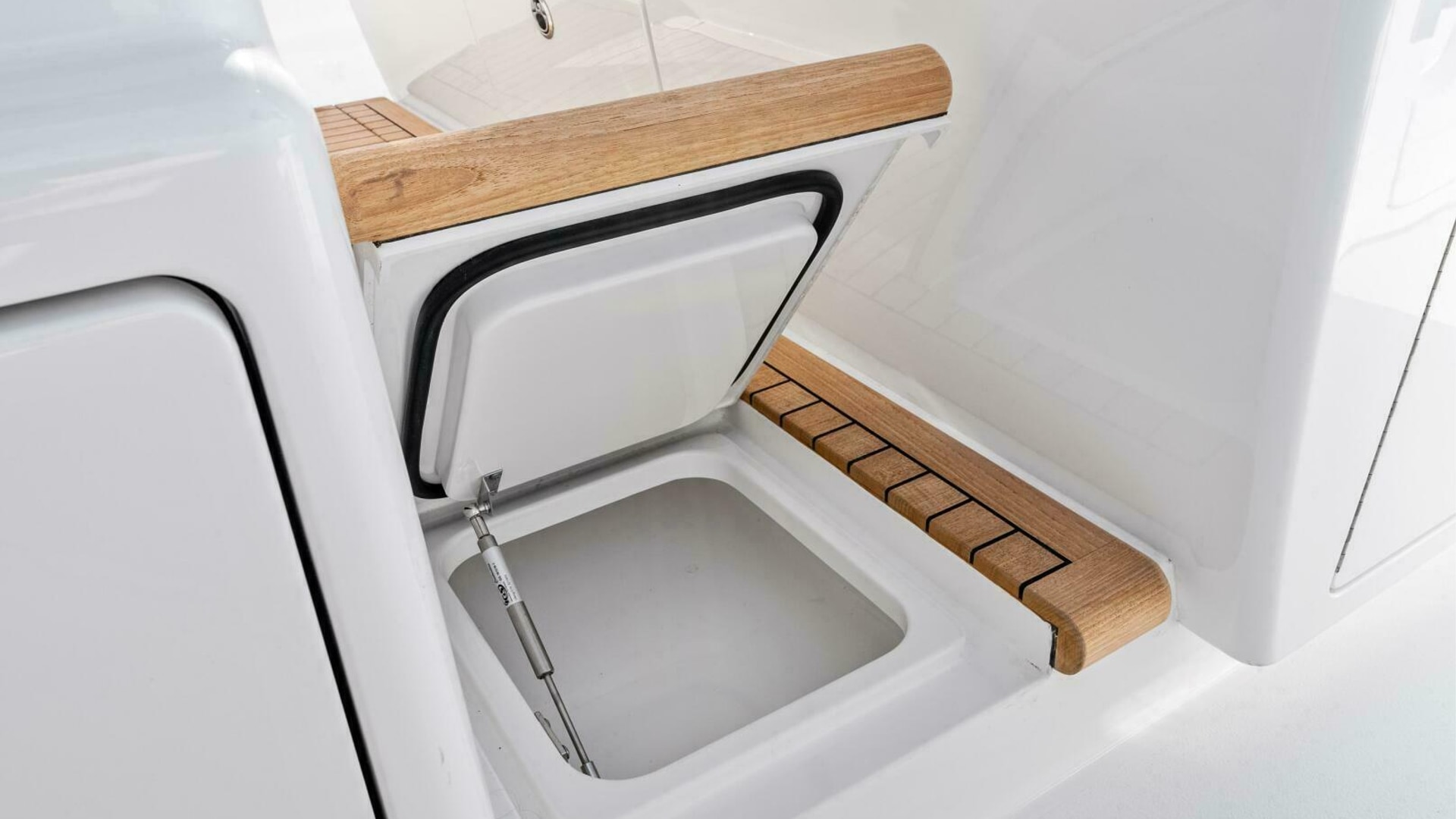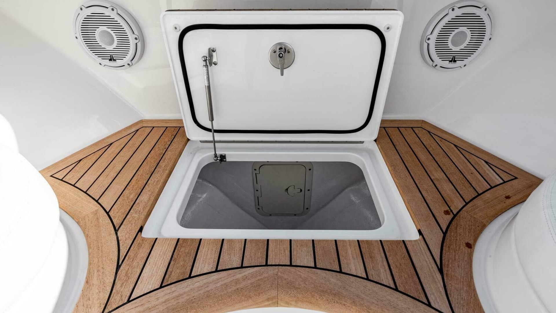 • Access to insulated drink box in-deck between fwd seating and mezzanine