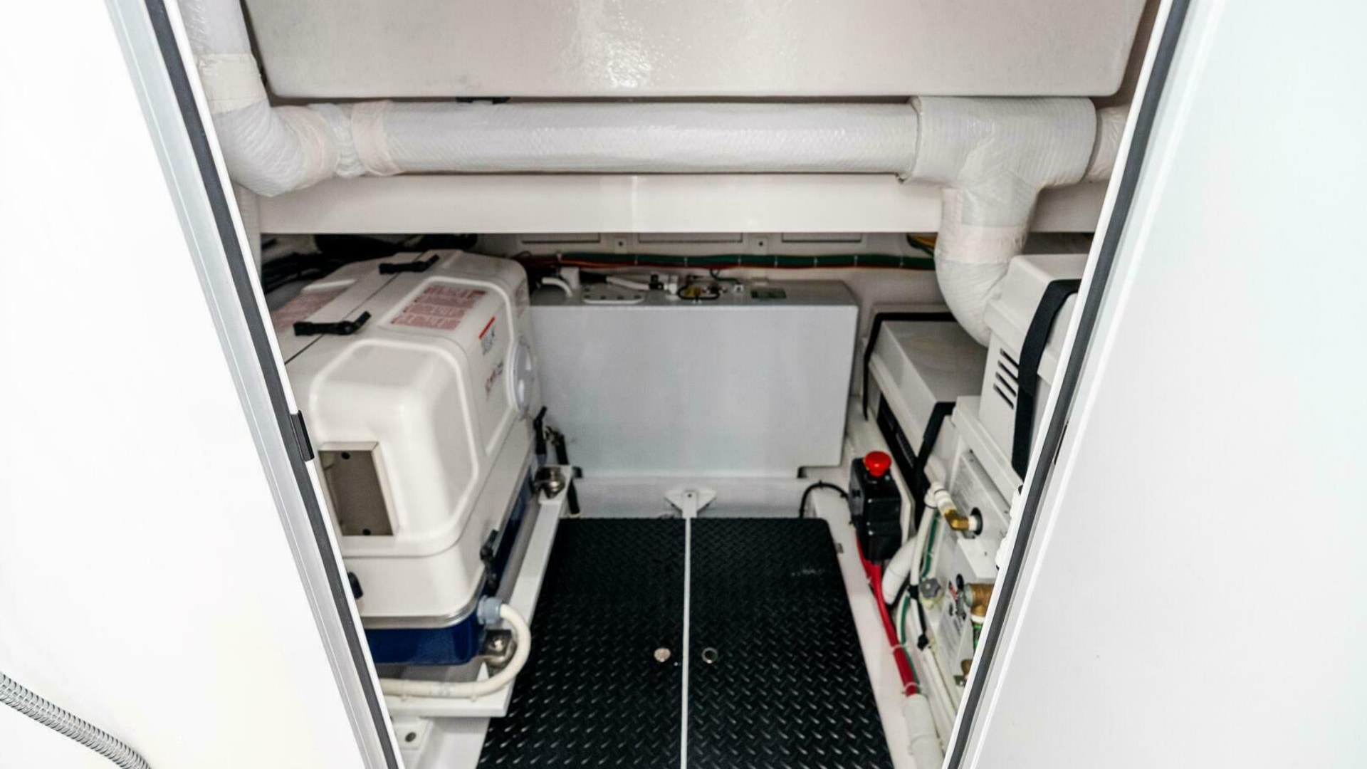 • Entrance door thru head to mechanical room location for access to water heater, generator 9kW, batteries and to backside of helm and electronics equipment