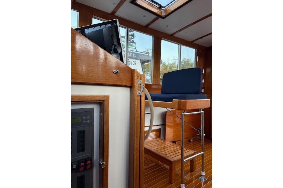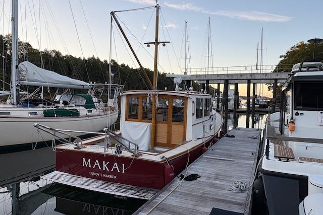 MAKAI is a one a kind lobster style cruising boat from her powerful bow with teak bowsprit and mounted anchor, her long, low silhouetted cabin trunk and spacious pilothouse windows culminating in a comfortable cockpit with a traditional sika spruce mast and boom. She is elegantly appointed with traditional yacht furnishings, including the John Williams Boat Company helm and nav seats, a large dinette that makes into a very comfortable double bunk and a unique solid mahogany bi-fold door which encloses the pilothouse. The forecastle is designed for two with a large V-berth, ample galley and spacious head with stall shower. MAKAI is set up for coastal cruising and can accommodate five people sleeping onboard. She has been continually upgraded by her current owner, with many special ammenities you'd typically find on a much bigger yacht. It is a pleasure to see a boat that is as nicely finished and functional as this one. Featured on the covers of Soundings and Northeast Boating magazines. She is really worth seeing.