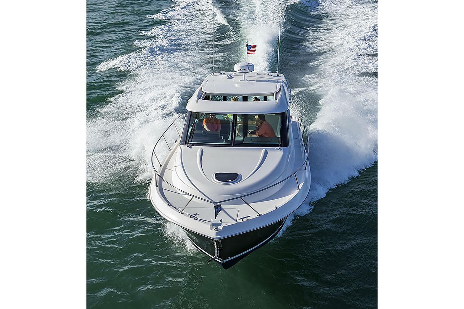 Tiara’s uncompromised quality and luxury combined with the latest in navigation and operating technologies make the Tiara 39 coupe a perfectly sized and powerful package. Twin Volvo Penta IPS drives, paired with the dependable, sweet-riding Tiara hull, deliver an exceptional driving experience. The ergonomic helm with seating for two compliments the joystick controls and glass cockpit instrumentation with two displays that provide easy navigation and increase the enjoyment of your yachting experience. Settle in to a comfortable cruise at 30 mph, or turn it up and enjoy that last dash into the inlet at a get to your destination faster at a wot speed of 40 mph.