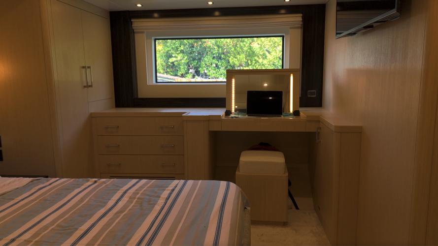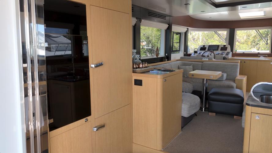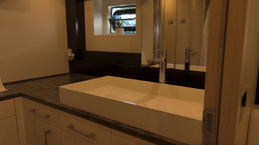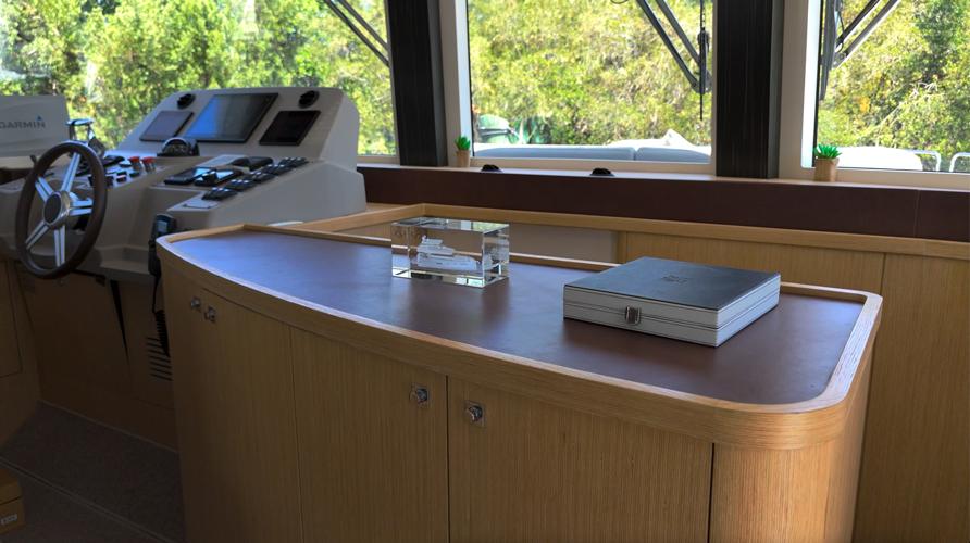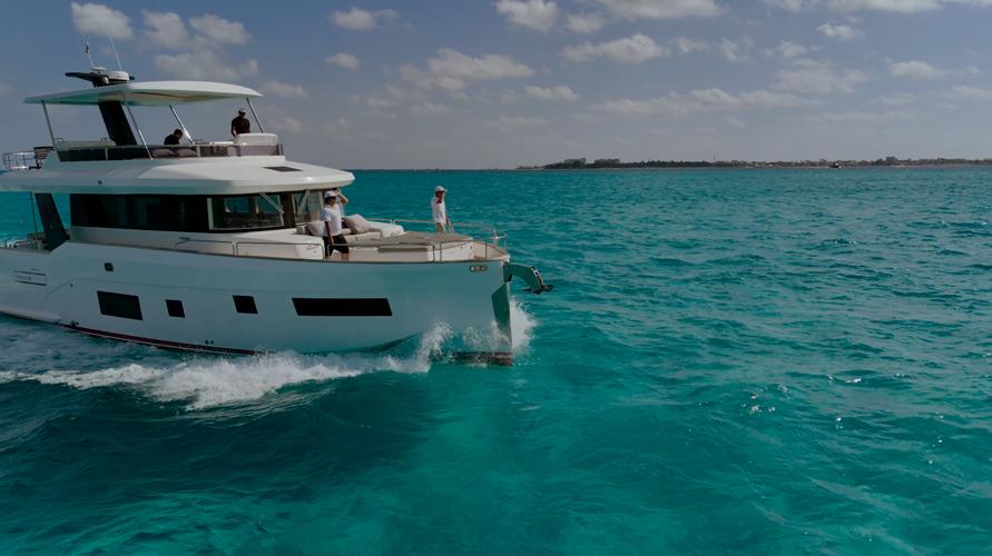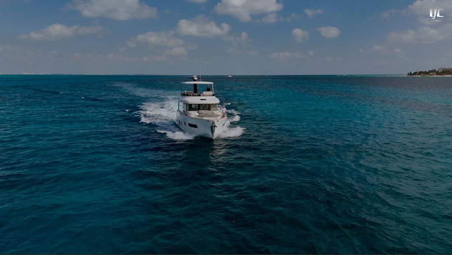 Esta embarcación está diseñada para funcionar de manera eficiente en una amplia gama de velocidades, con un modo de desplazamiento que permite un amplio rango para largos tramos de crucero, pero también una velocidad de planeo que permite velocidades de crucero más rápidas para optimizar el tiempo. Con un consumo de combustible comparativamente bajo, hemos creado un casco que puede llevar a sus propietarios en travesías largas, y la estabilidad y la comodidad significan que disfrutarán del viaje.