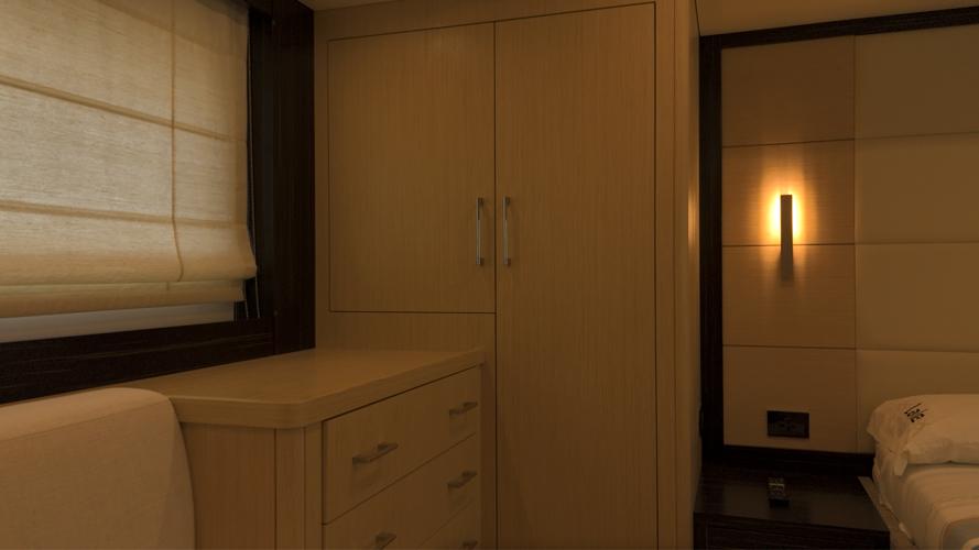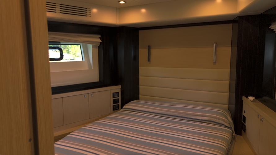 El volumen del casco es bastante grande para su Tamaño, y nos permite utilizar el espacio disponible para crear un diseño más abierto de lo que es común en un barco de este tamaño, con líneas de visión y espacio libre para reflejar el de un yate mucho más grande. El resultado es una combinación de líneas limpias y espacios aireados que ayuda a concentrar la mente y relaja el cuerpo.