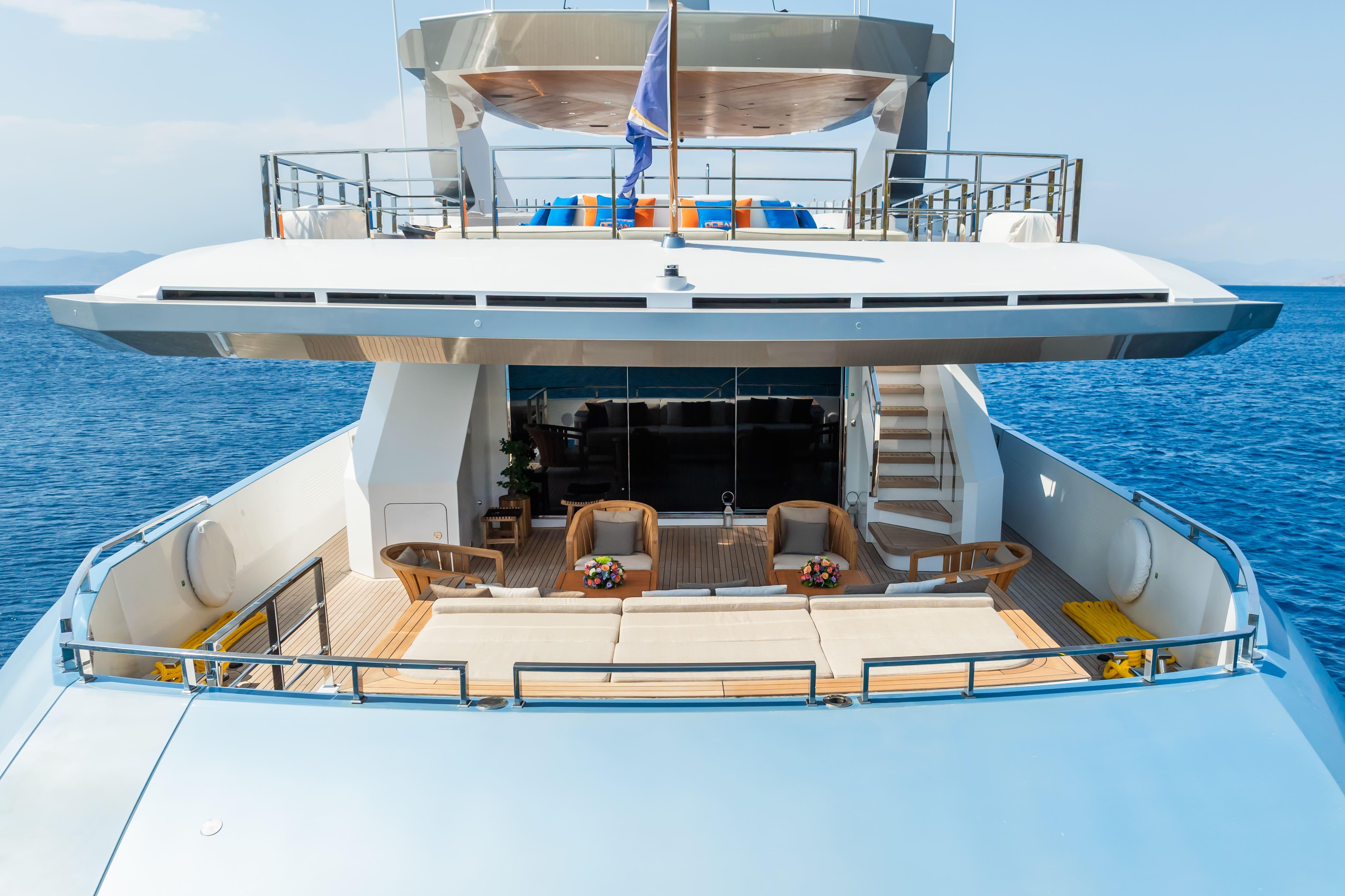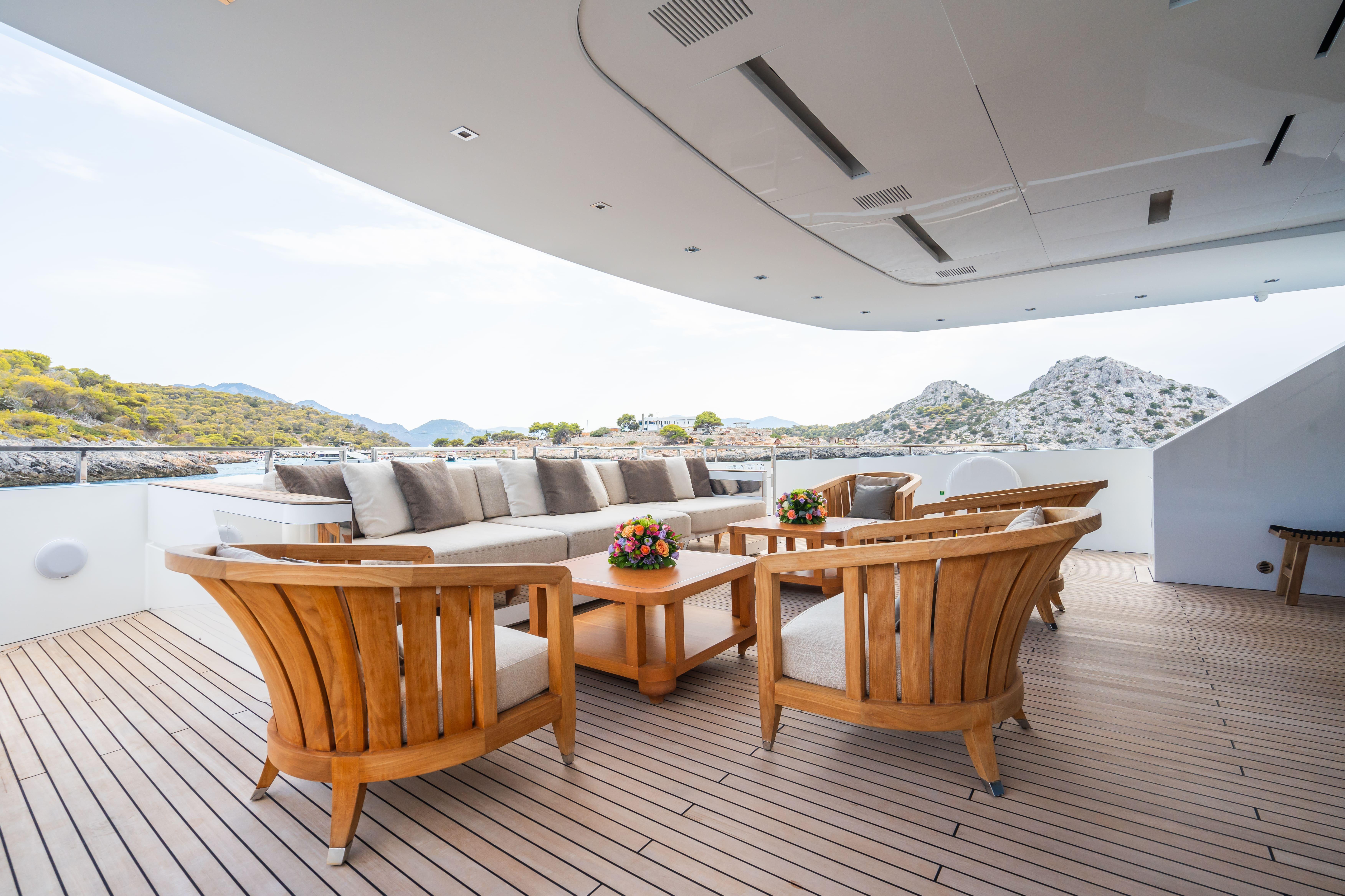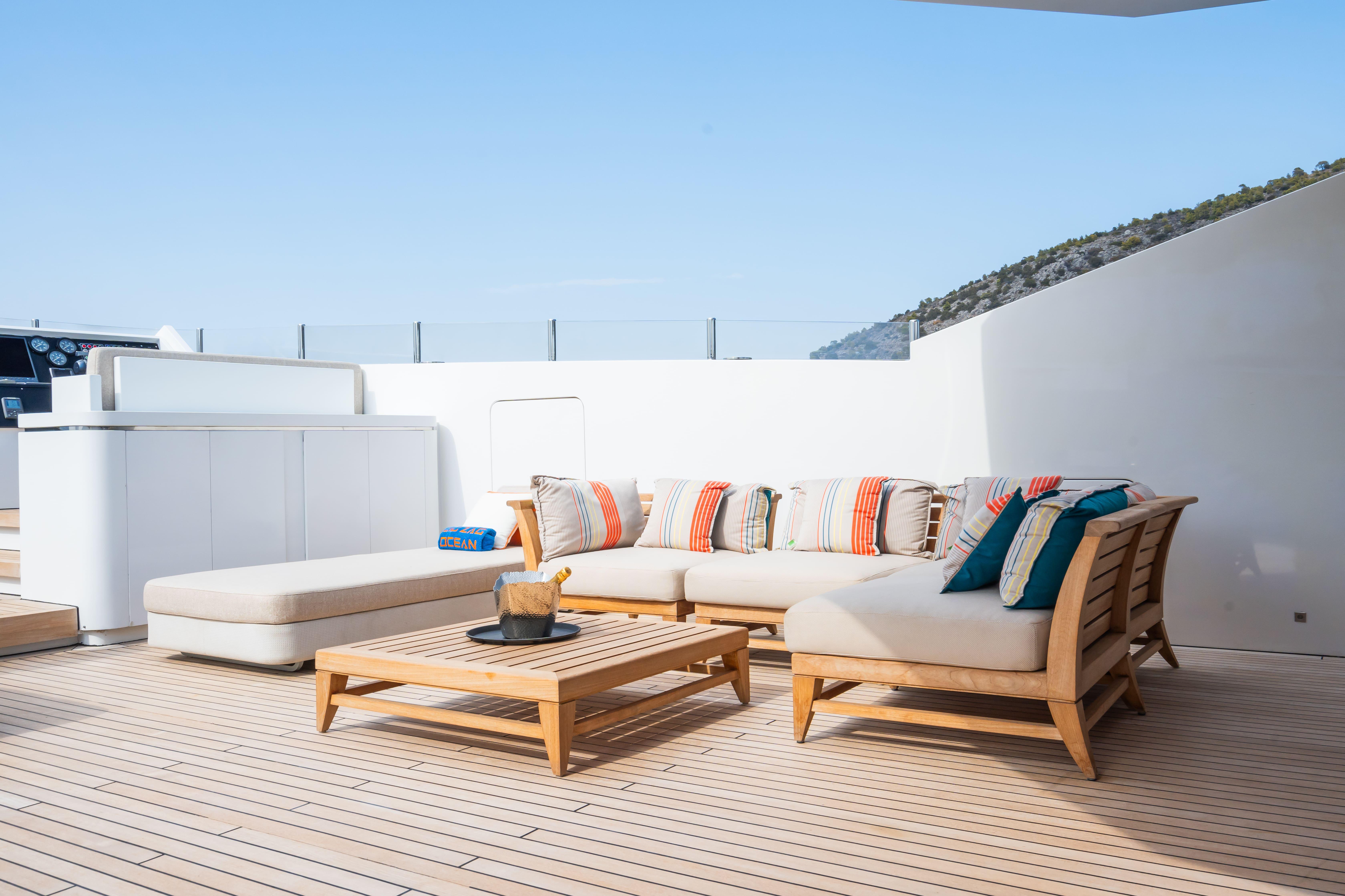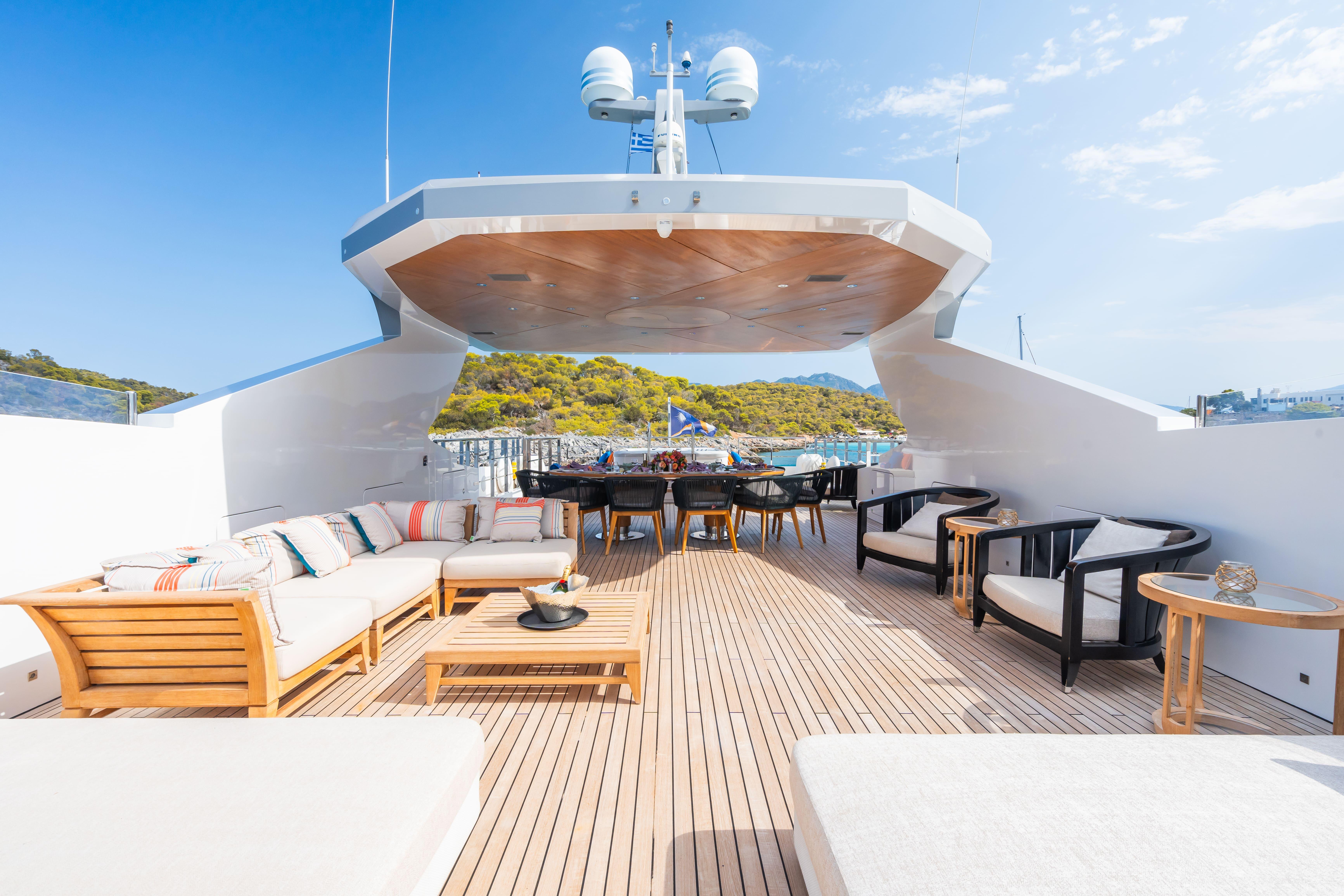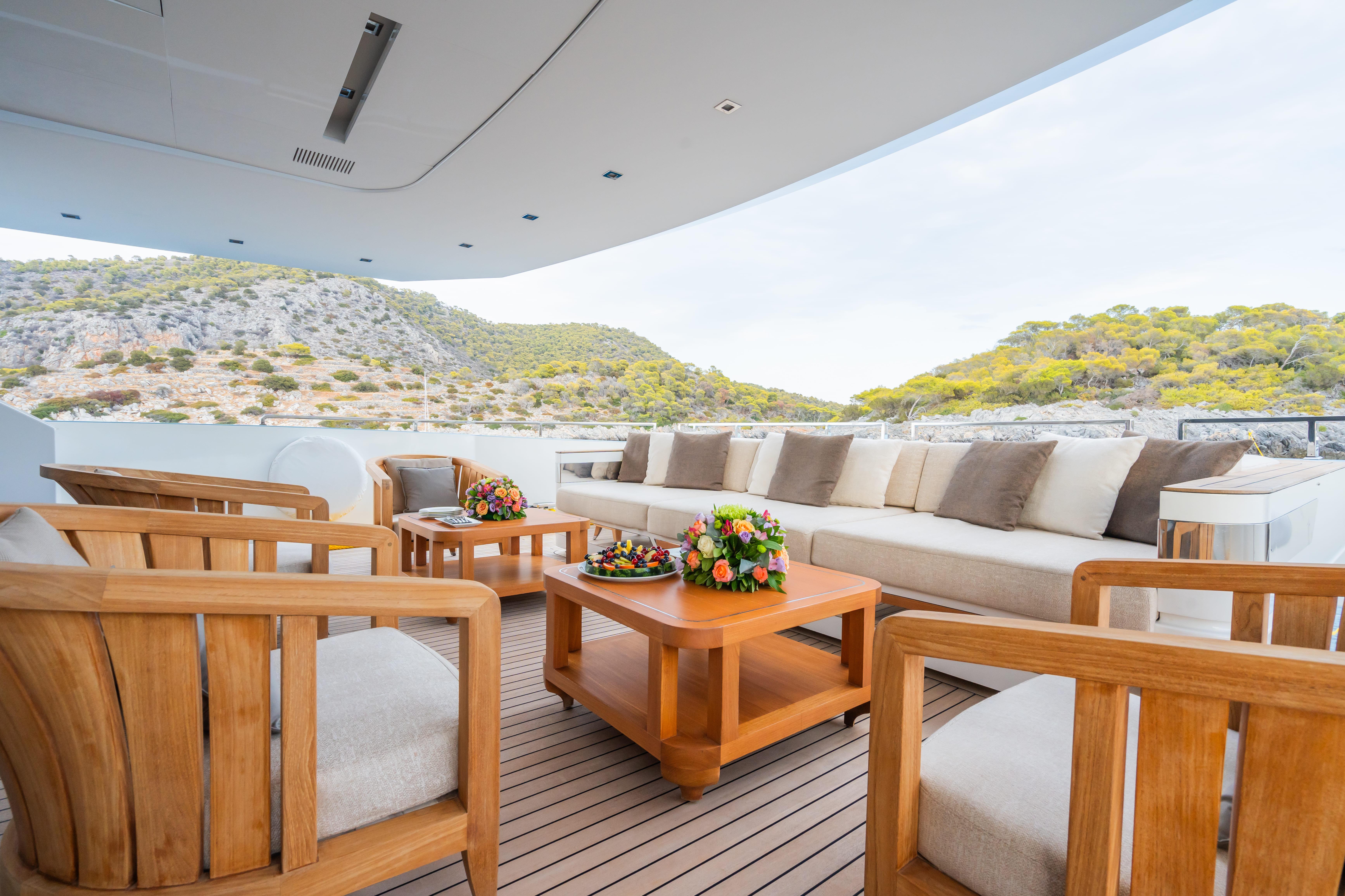 Versatile Entertainment Space: The sundeck offers an expansive area, perfect for hosting large gatherings and events, with the capacity to accommodate up to 30 guests. It's an ideal setting for socializing, parties, and enjoying panoramic ocean views. Luxurious Sunbathing: The bow's large sunbathing area comfortably hosts up to 8 guests, providing a serene spot for relaxation.