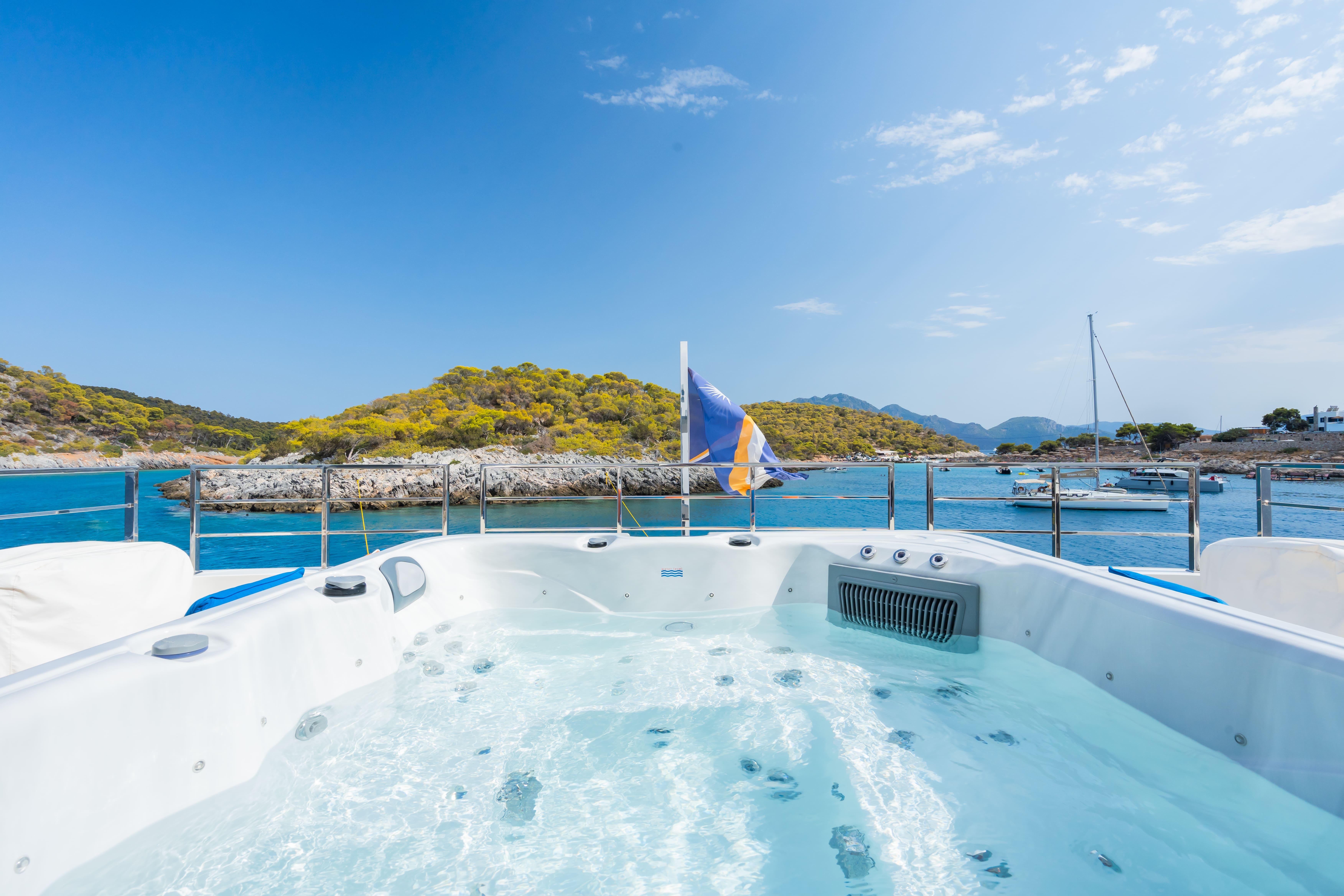 - Deck Jacuzzi: A newly installed custom-made Jacuzzi on the sundeck, surrounded by expansive sunbedding, offers a perfect place to relax and enjoy the views.
