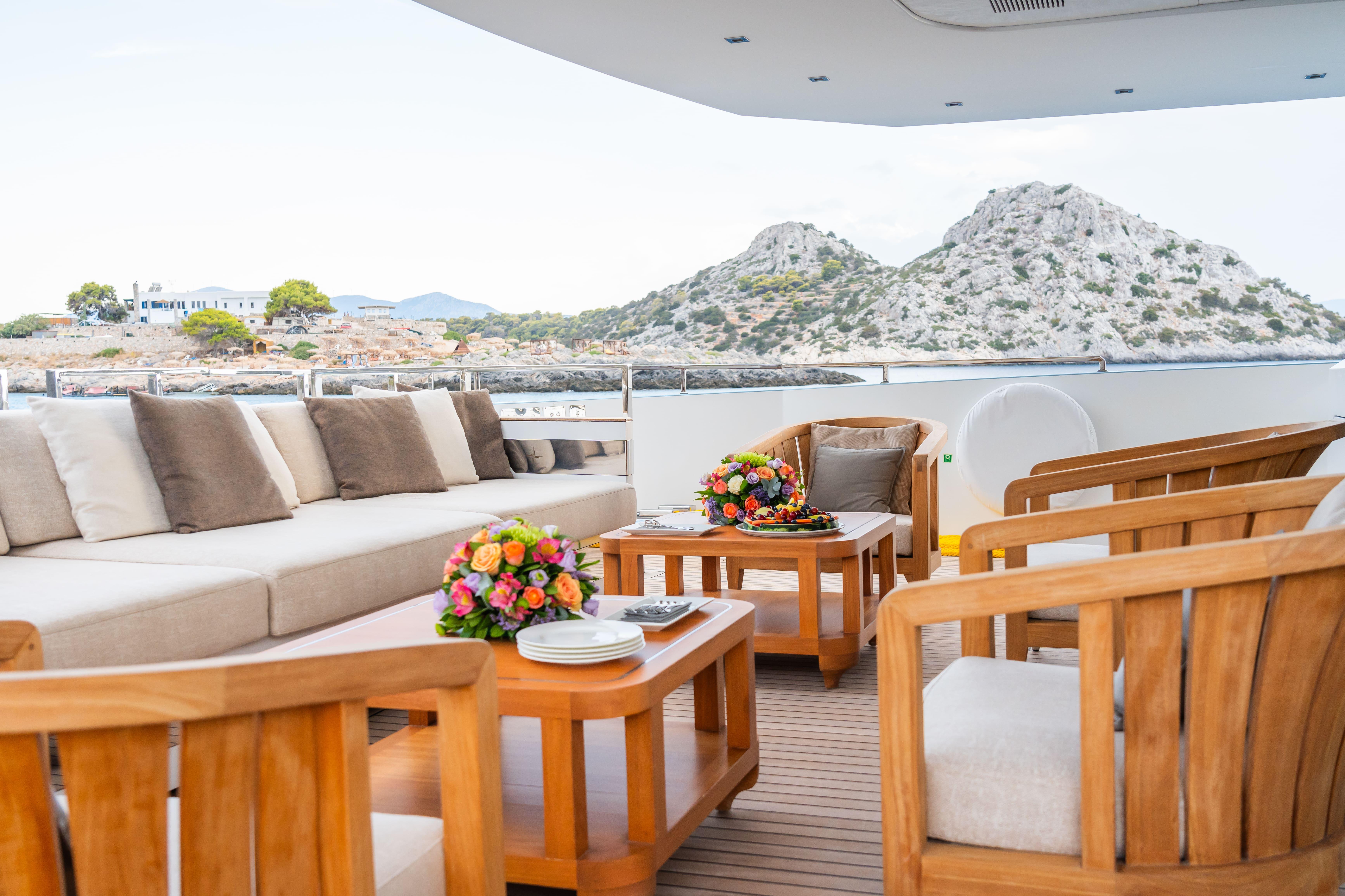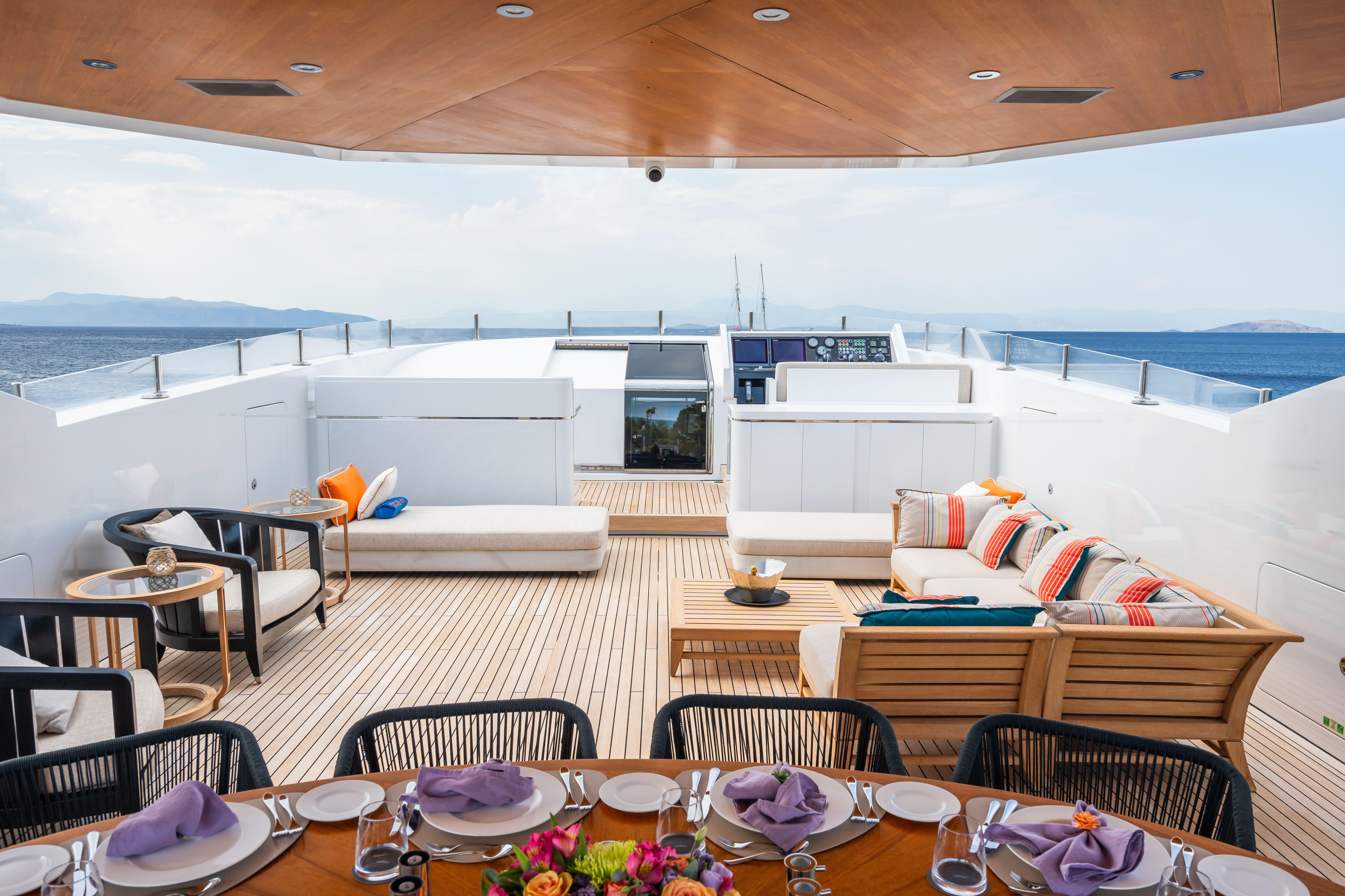 - Al Fresco Dining: A beautifully arranged dining area on the upper deck allows for outdoor meals with panoramic views.