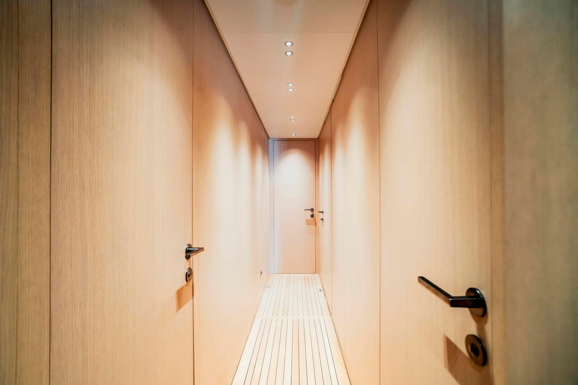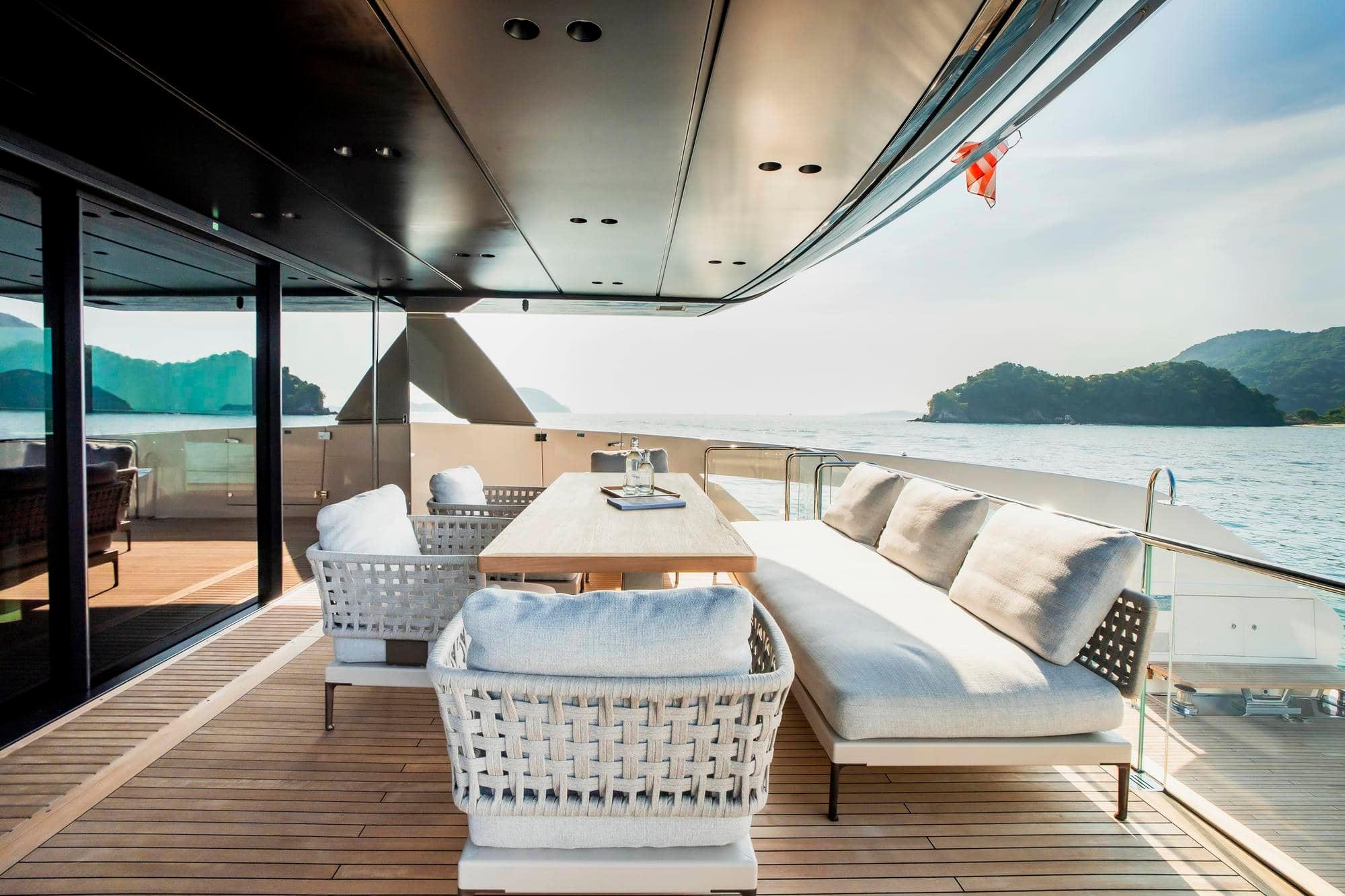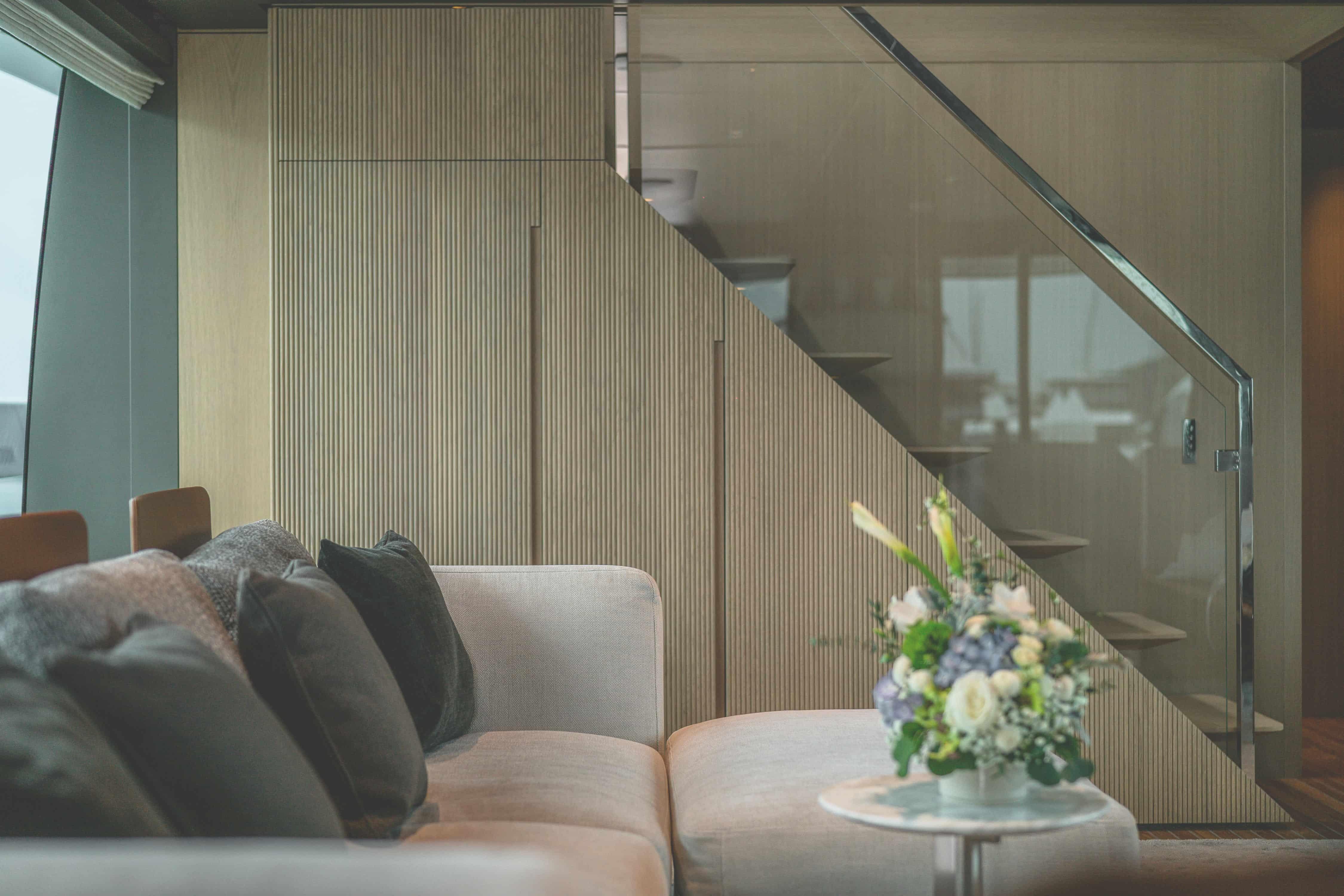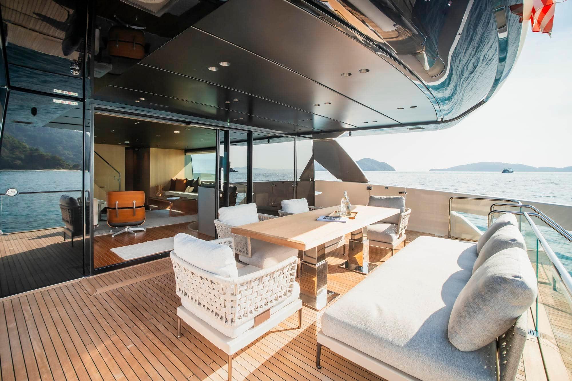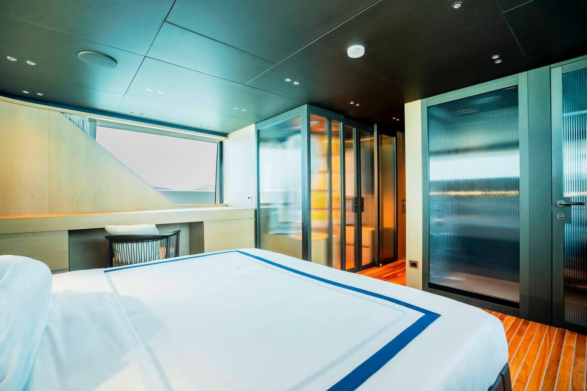 This SX100 was designed and built for an experienced yacht owner who loves the sea, he oversaw every detail of her construction, with particular attention on her very high specification including a Lissoni themed interior and furniture by Poltrona Frau, Flexform, Minotti and Roda. The highest grade of fittings, fluted oak and marble was chosen throughout the yacht.