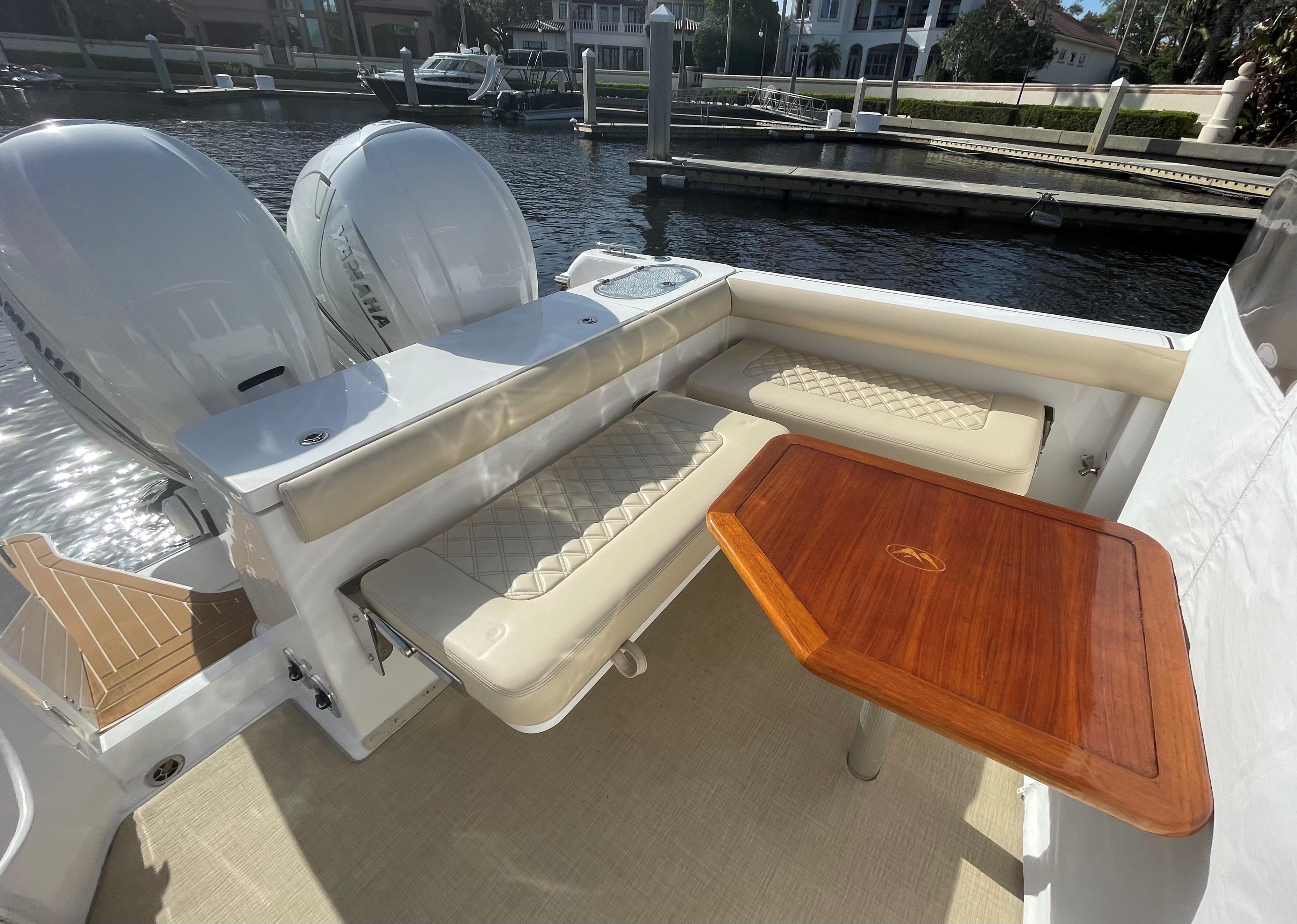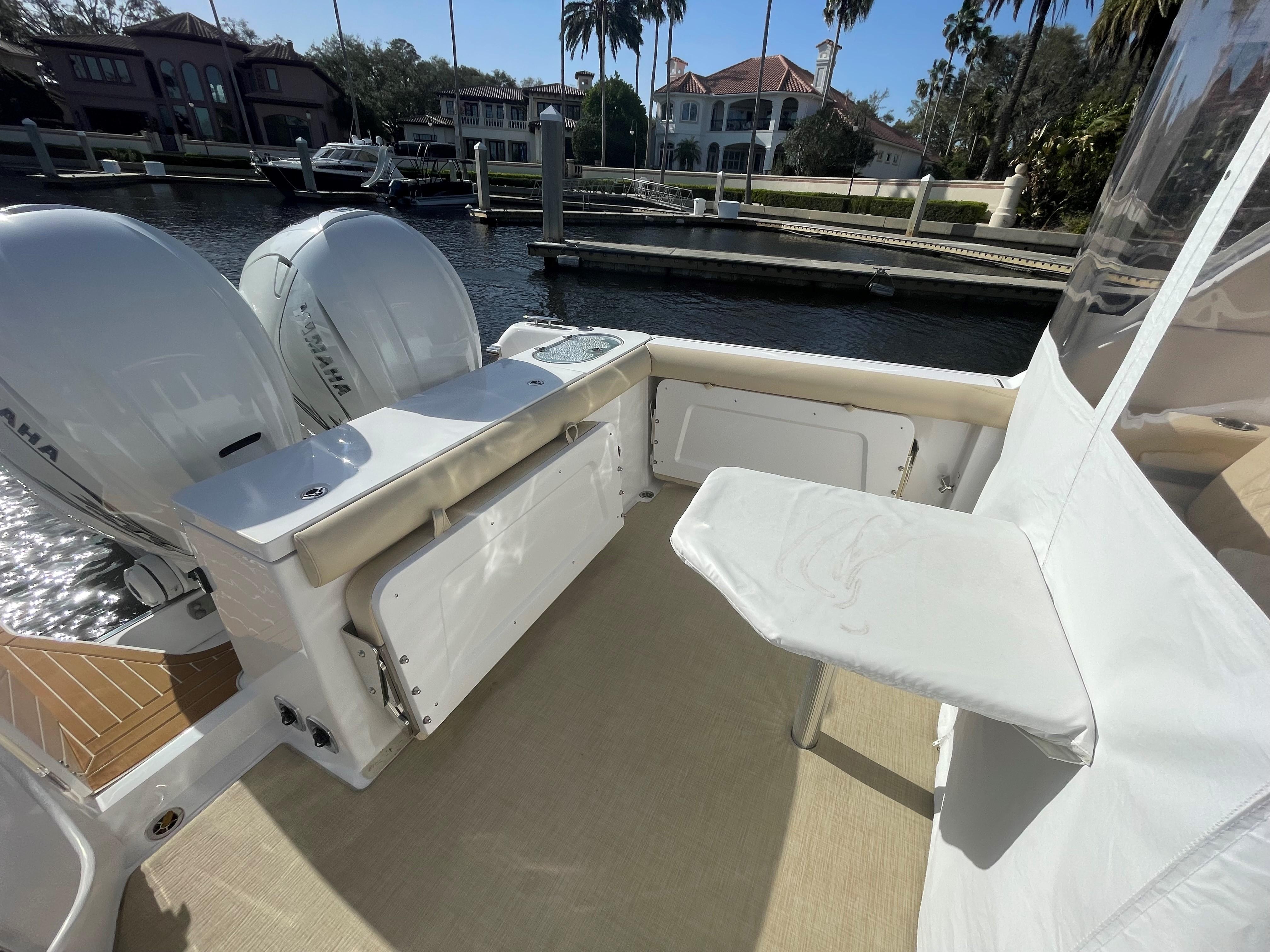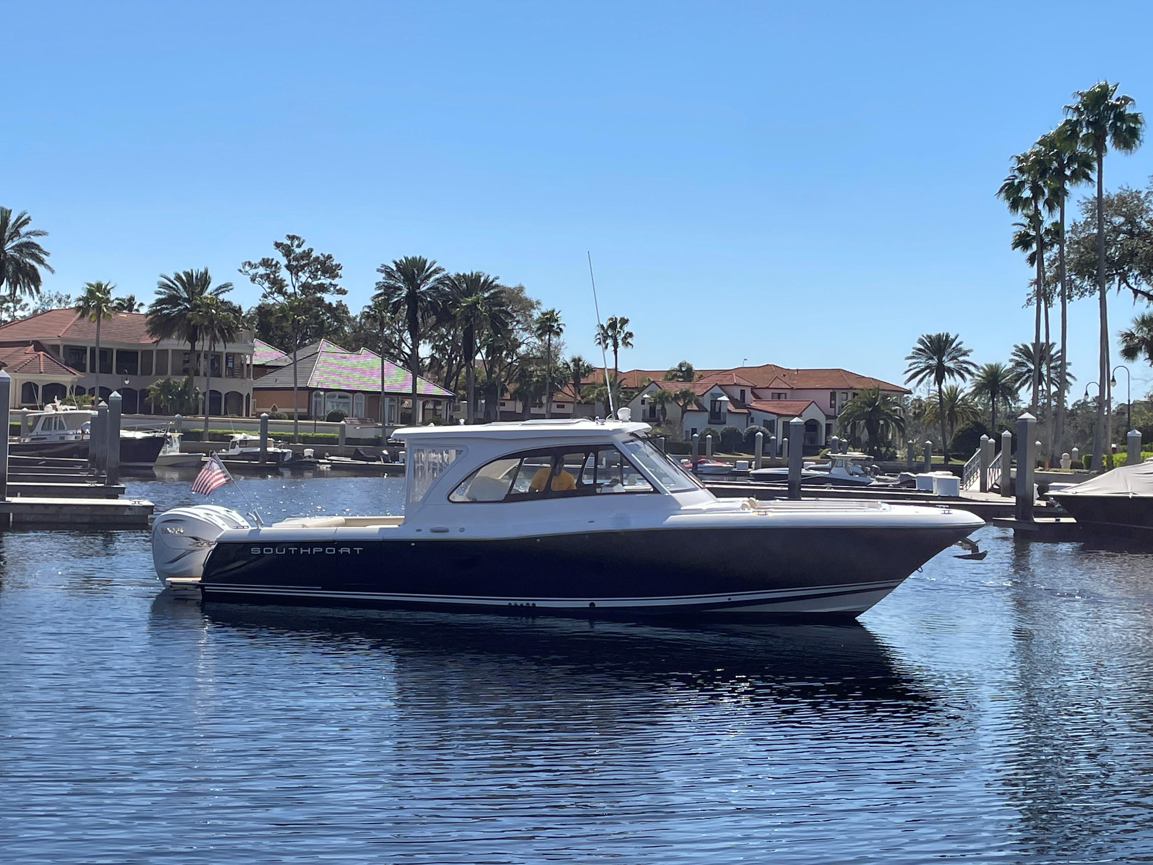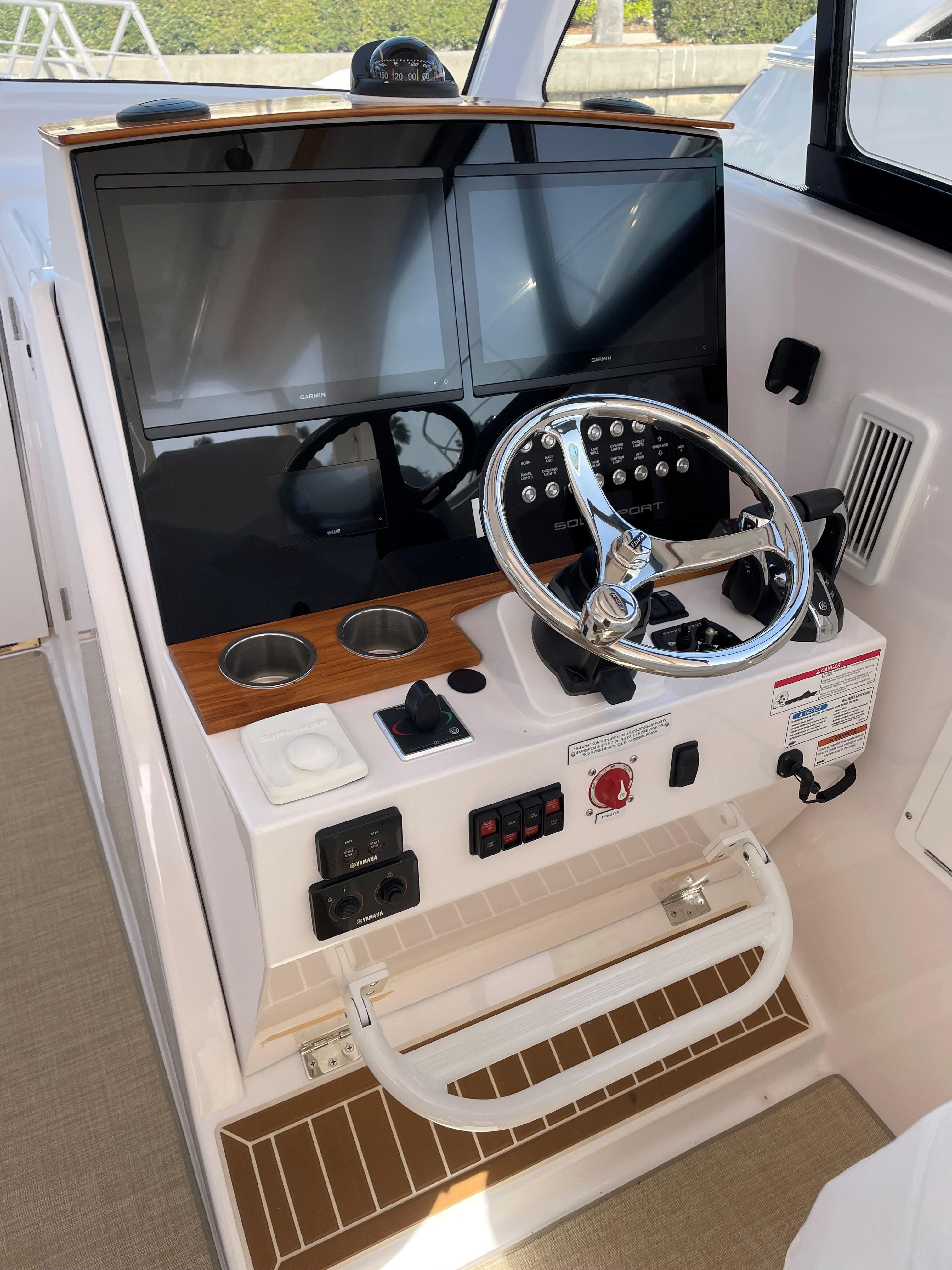 She has an electric sun shade, bow thrusters, Fly sunshades, cockpit A/C, Flexi Teak, Vinyl Gulf Sand floor mats, cabin, full head, fold down and mezzanine seating, Garmin electronics, the list goes on. The Yamahas are under warranty until April 2027, and the Southport 10 year structural warranty is still in place. See full specs.