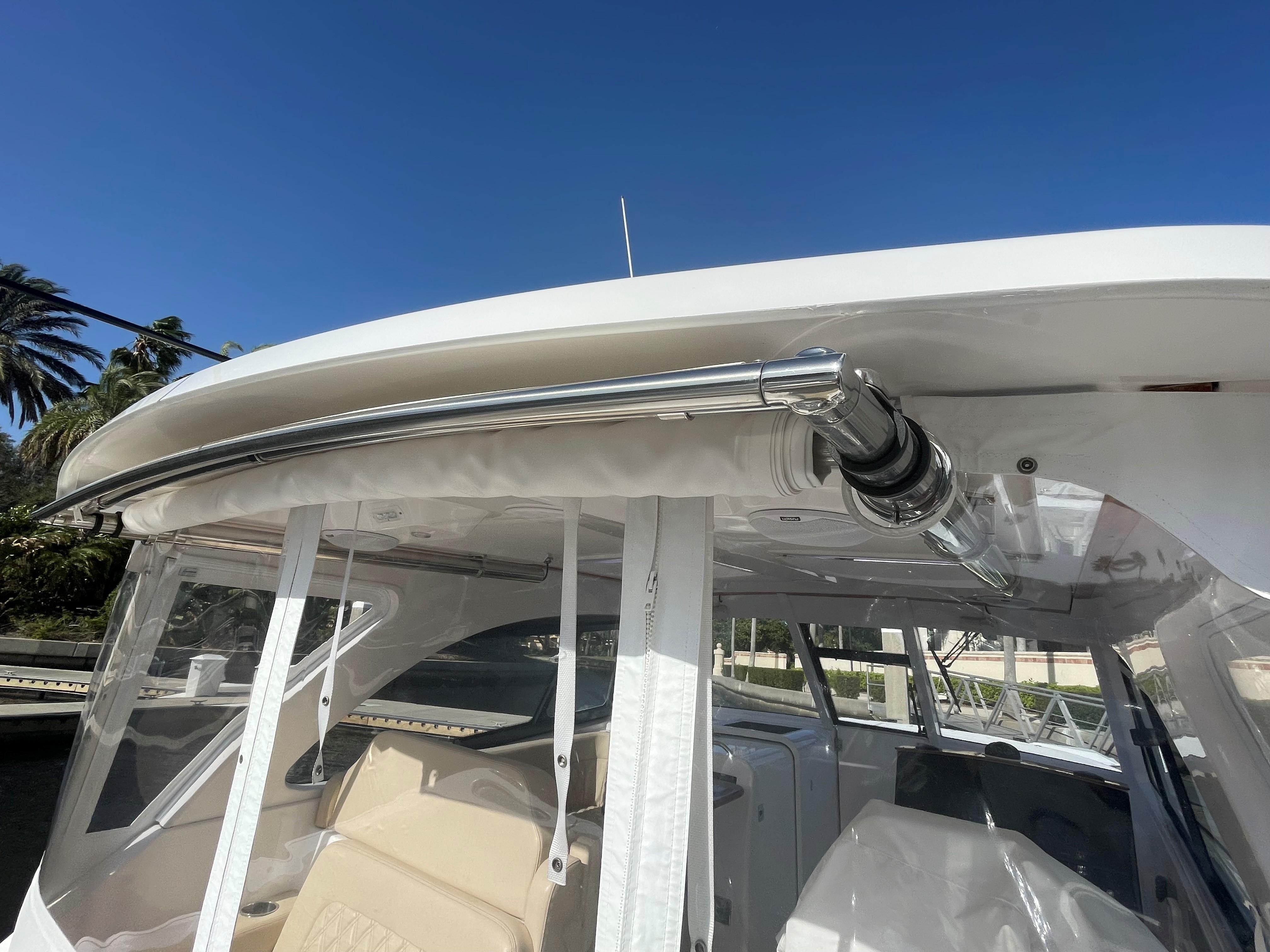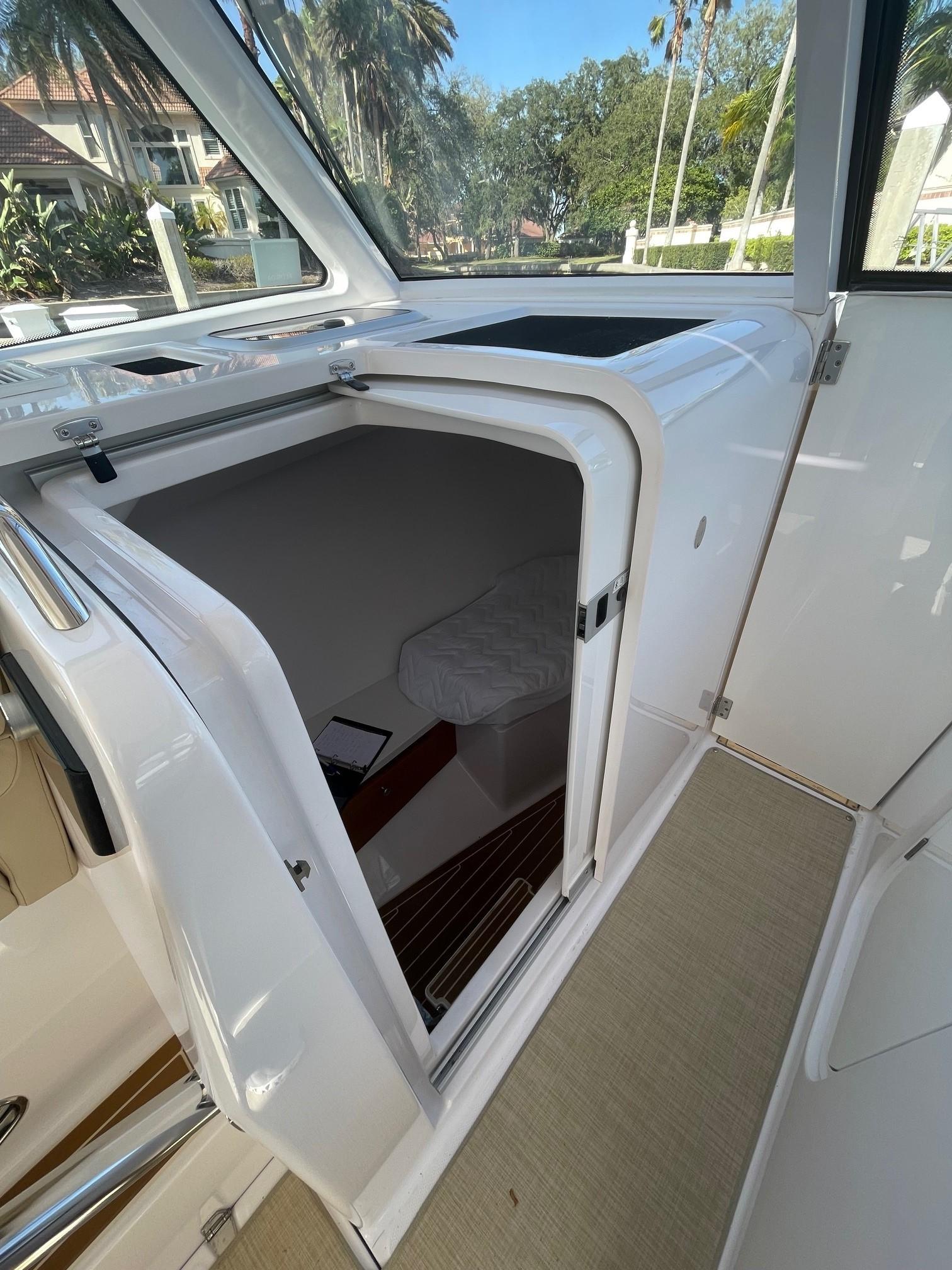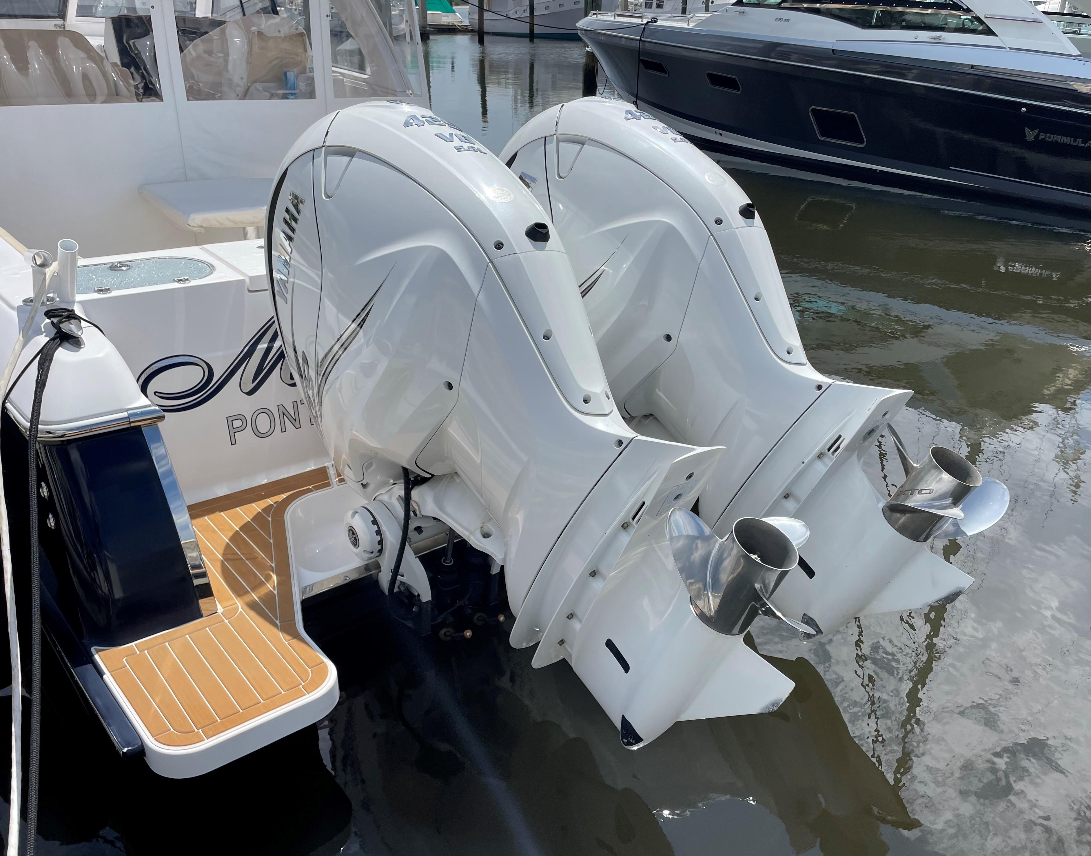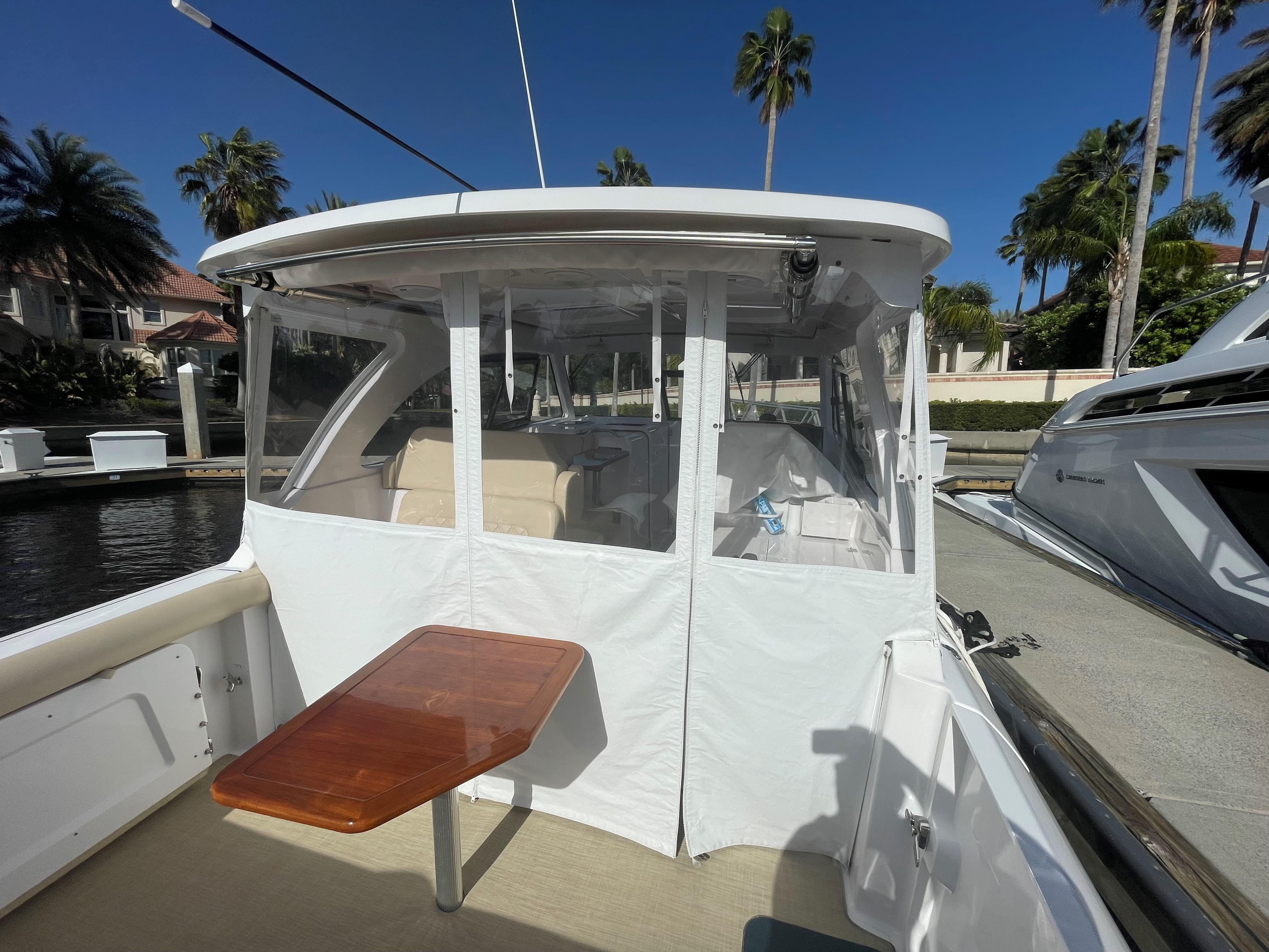 She has an electric sun shade, bow thrusters, Fly sunshades, cockpit A/C, Flexi Teak, Vinyl Gulf Sand floor mats, cabin, full head, fold down and mezzanine seating, Garmin electronics, the list goes on. The Yamahas are under warranty until April 2027, and the Southport 10 year structural warranty is still in place. See full specs.