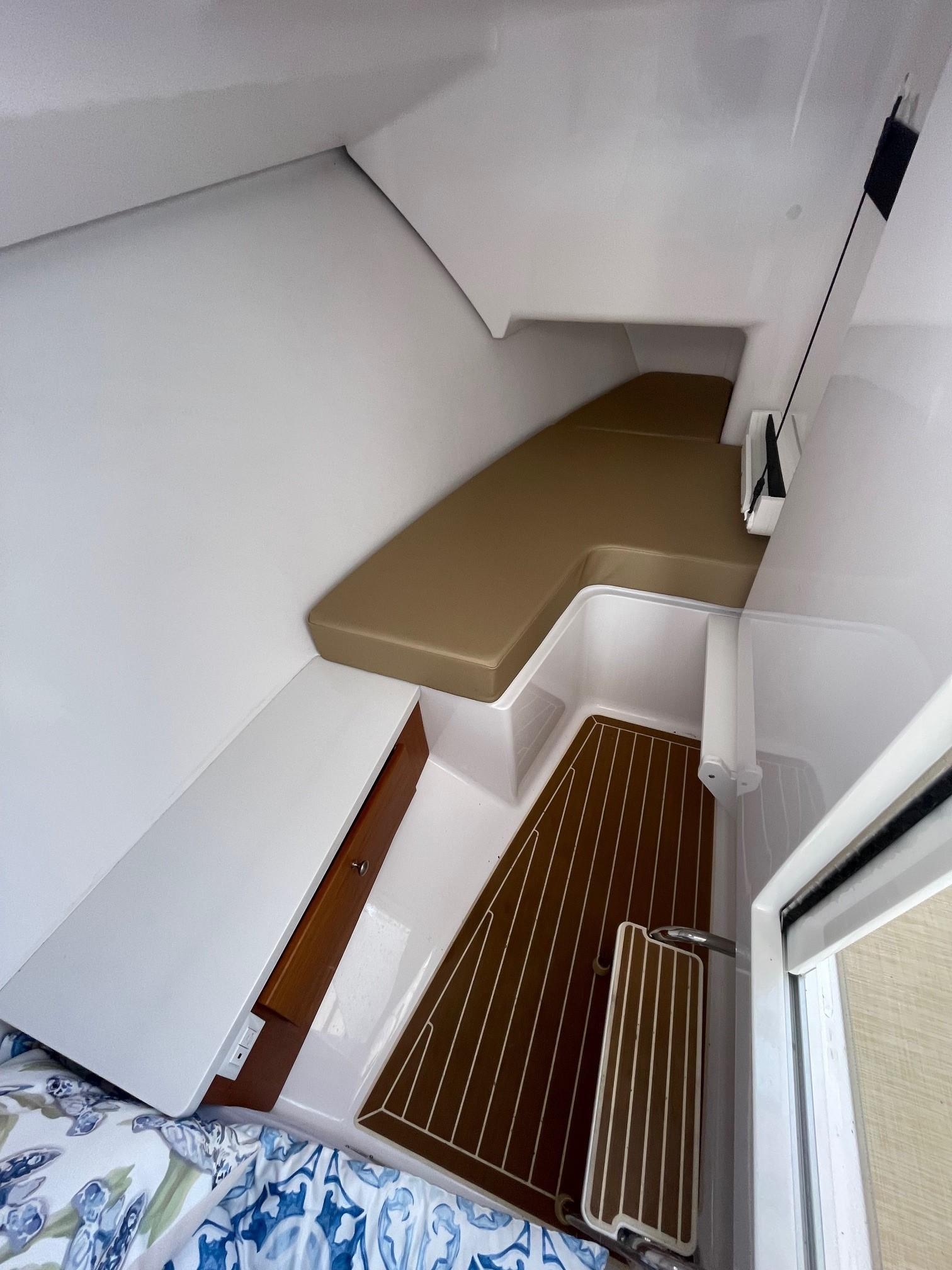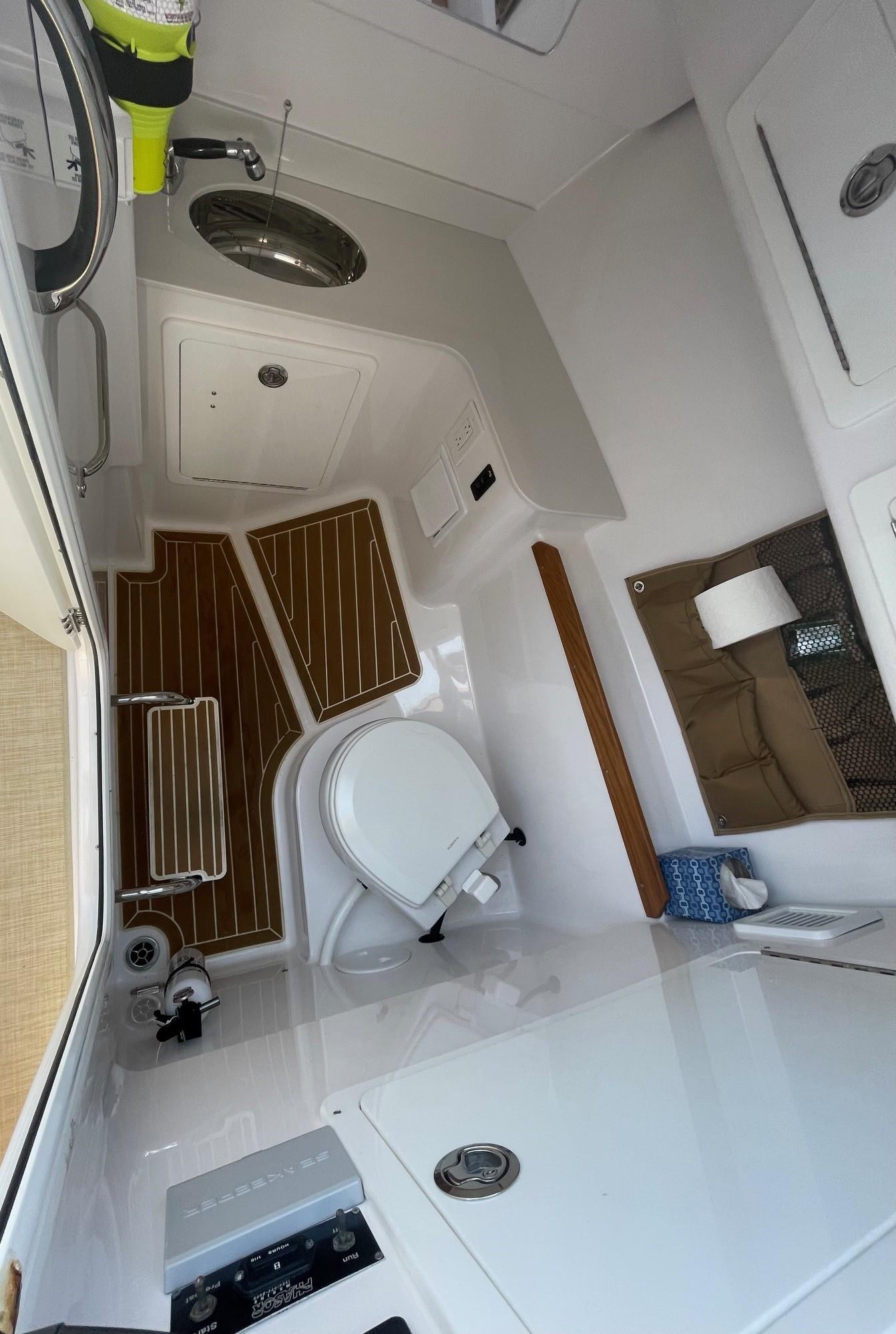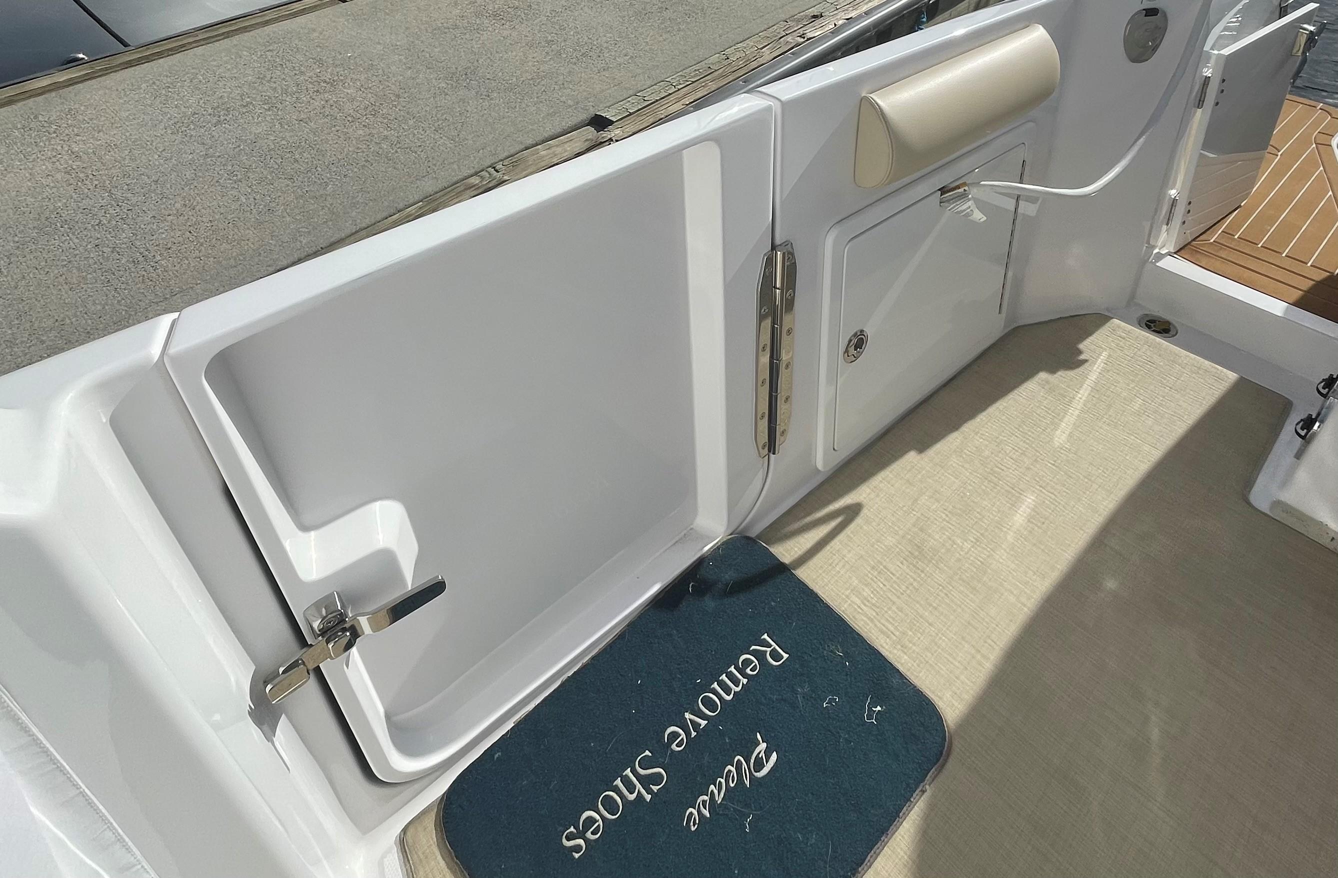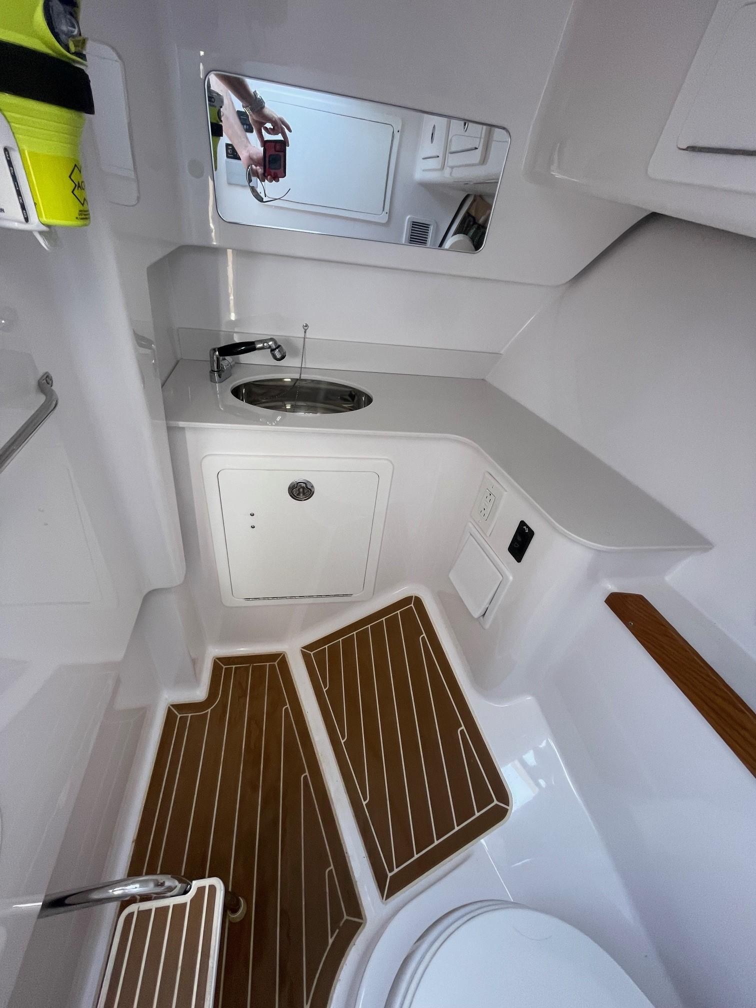 She has an electric sun shade, bow thrusters, Fly sunshades, cockpit A/C, Flexi Teak, Vinyl Gulf Sand floor mats, cabin, full head, fold down and mezzanine seating, Garmin electronics, the list goes on. The Yamahas are under warranty until April 2027, and the Southport 10 year structural warranty is still in place. See full specs.