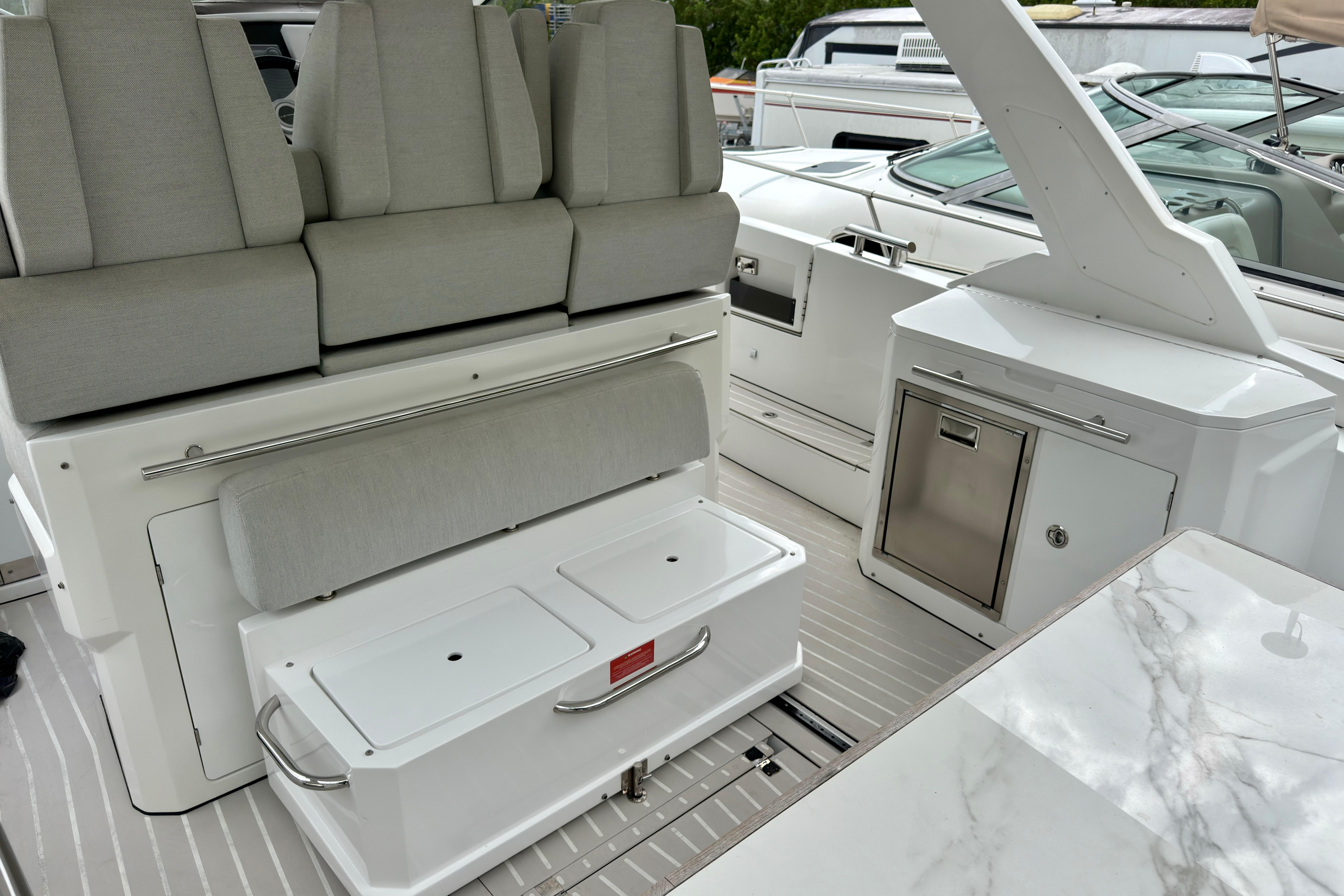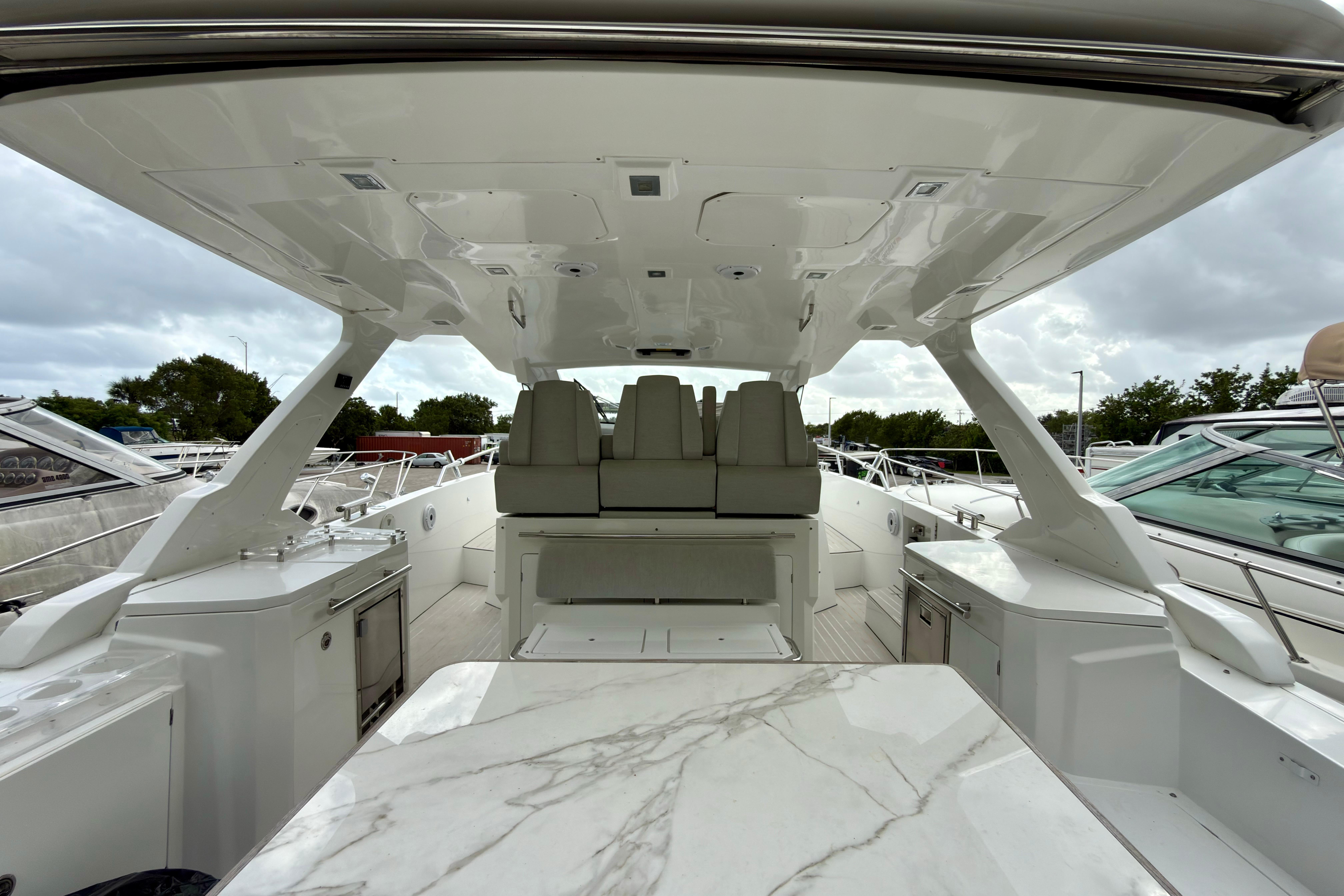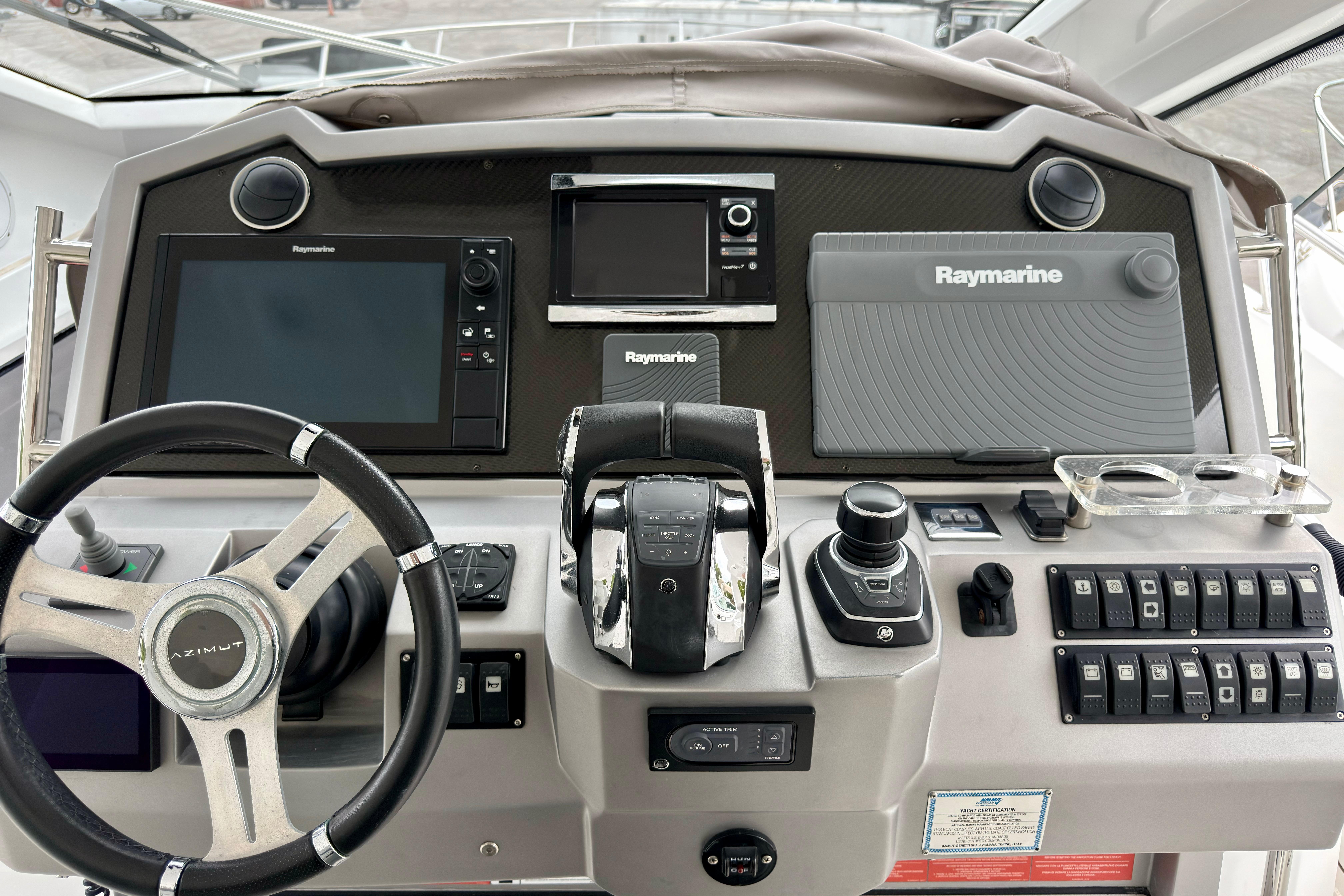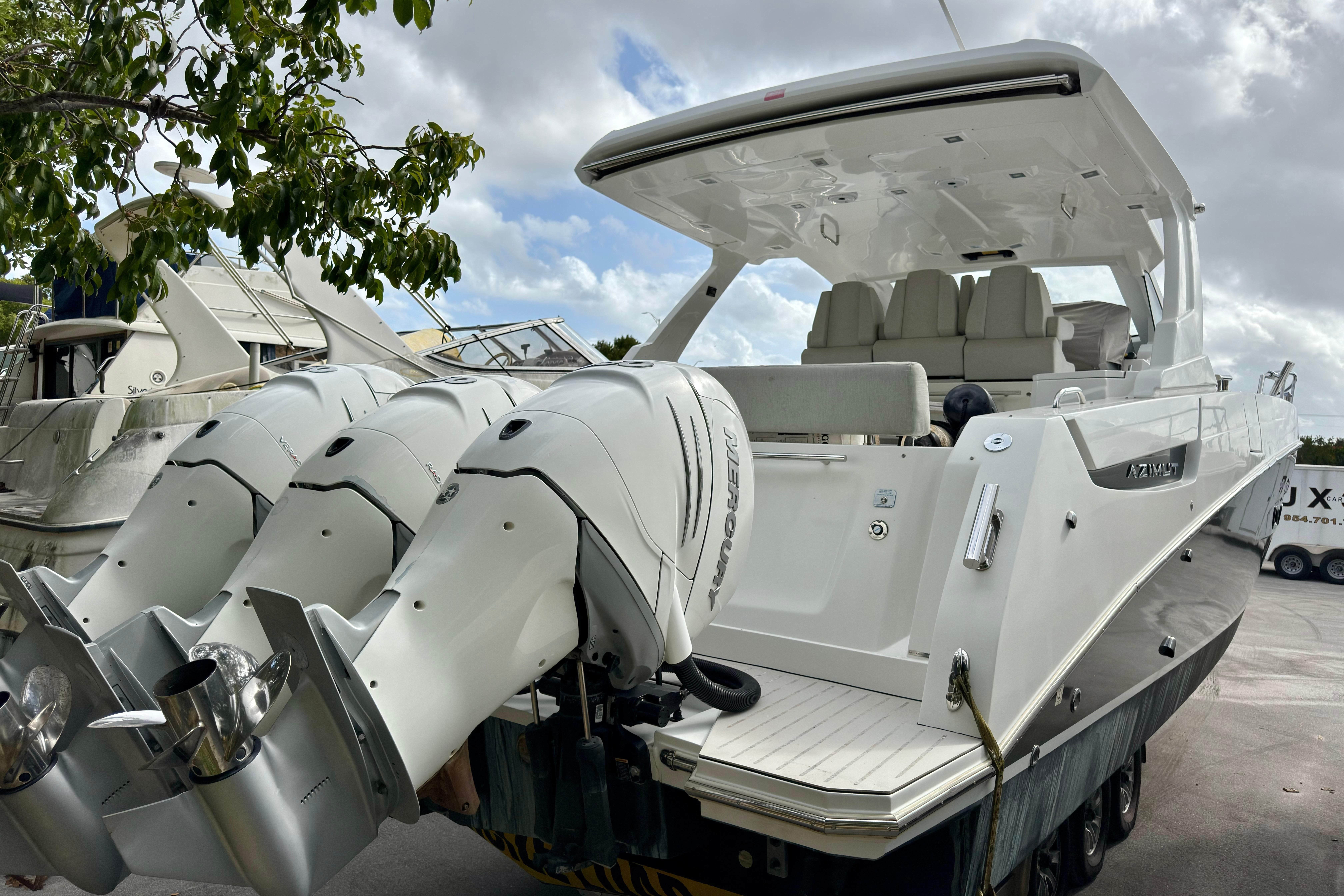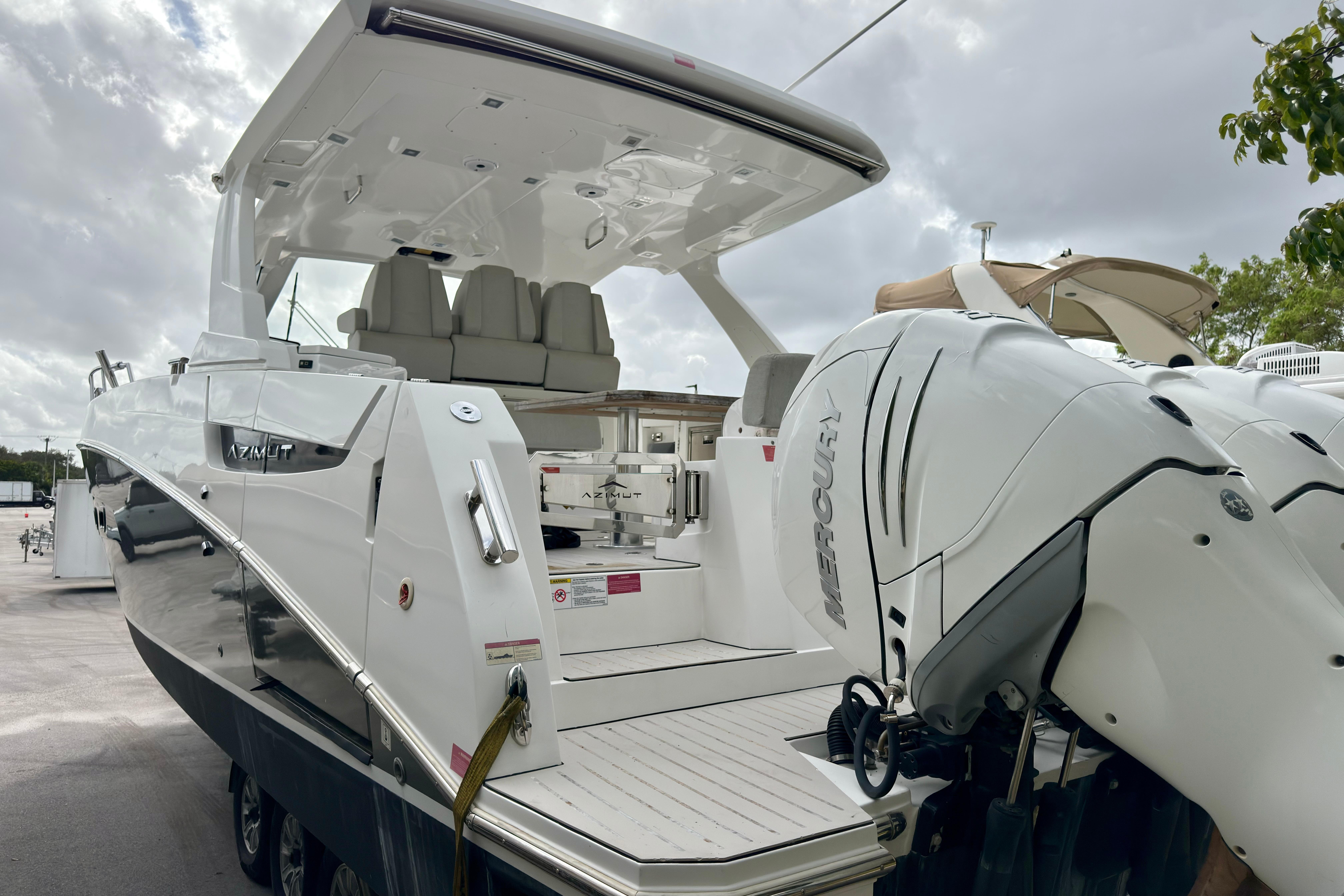 We are pleased to present this exceptional 2019 Azimut 40 Verve, currently on the hard in Fort Lauderdale. This high-performance luxury yacht is powered by triple Mercury Verado 350 outboard engines, each with 500 hours. The engines have been recently serviced, including the replacement of water pumps, ensuring optimal performance. Additionally, the generator has been recently serviced, providing reliable power for all onboard systems.