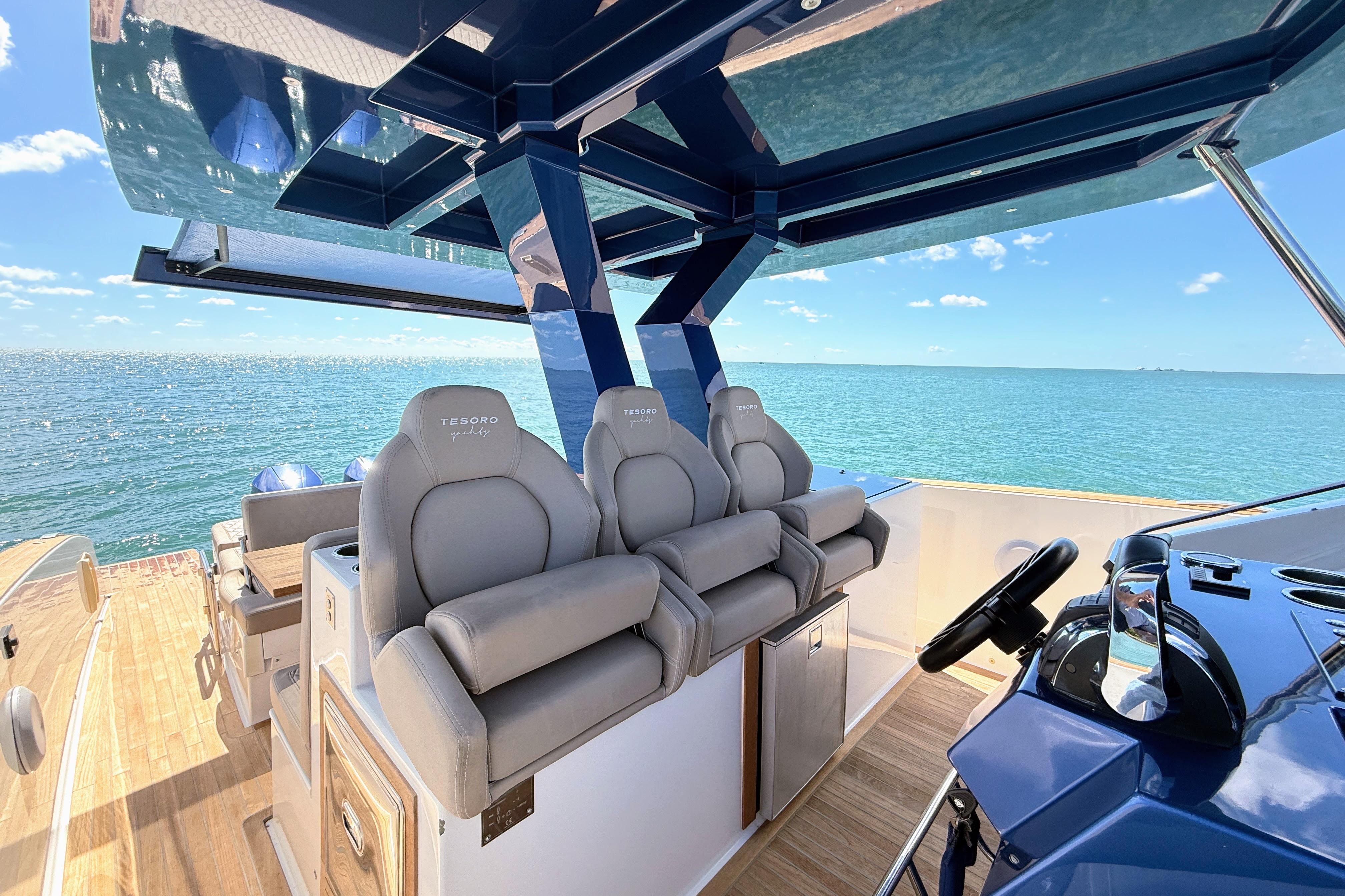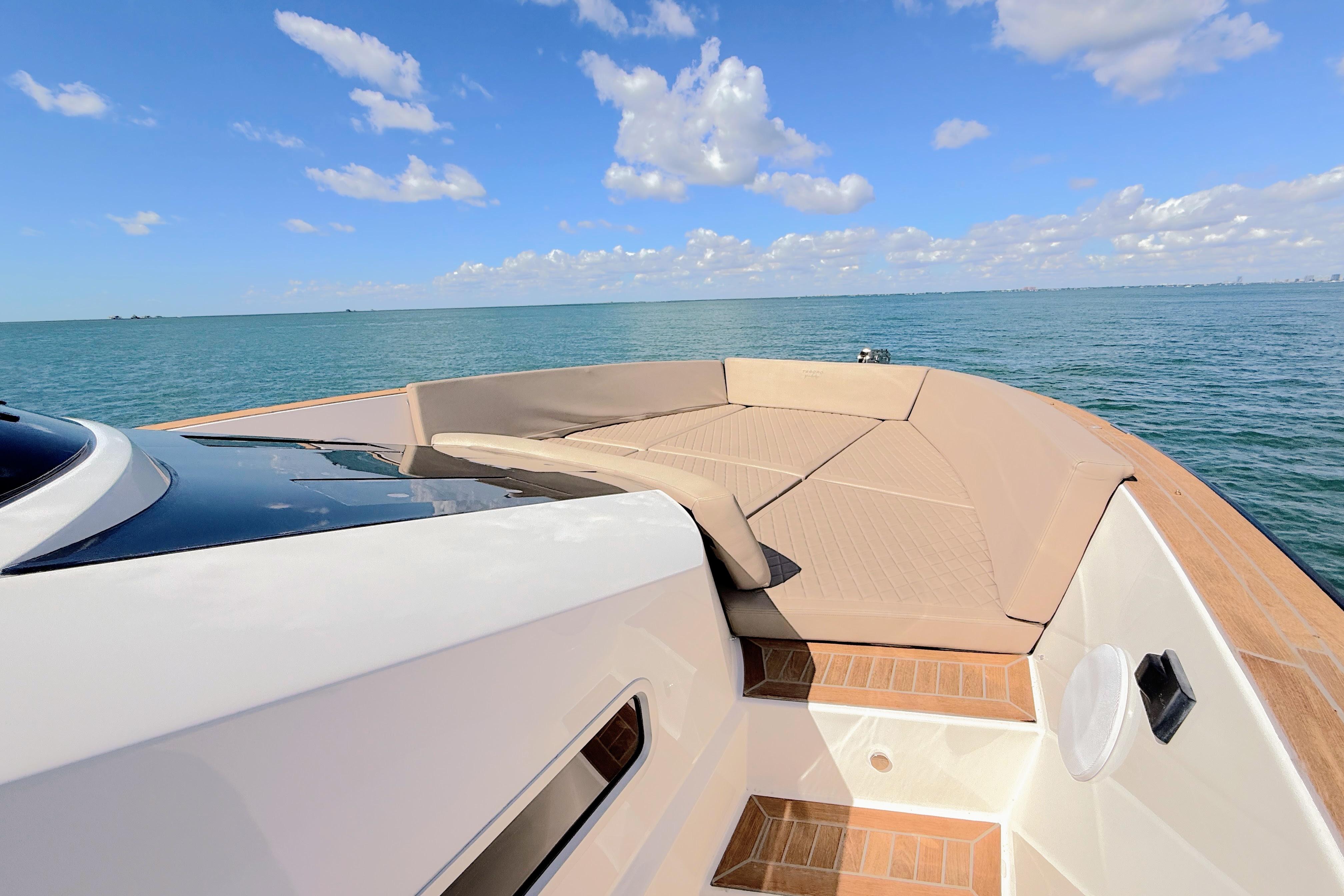 Presenting M/Y “MINE”, a highly customized 2022 Tesoro T38 Outboard, now available in Miami. This is the only T38 Outboard for sale in the U.S., uniquely specified and meticulously maintained. Designed to offer European luxury with thrilling performance, “MINE” blends refined craftsmanship, high-performance handling, and head-turning style.