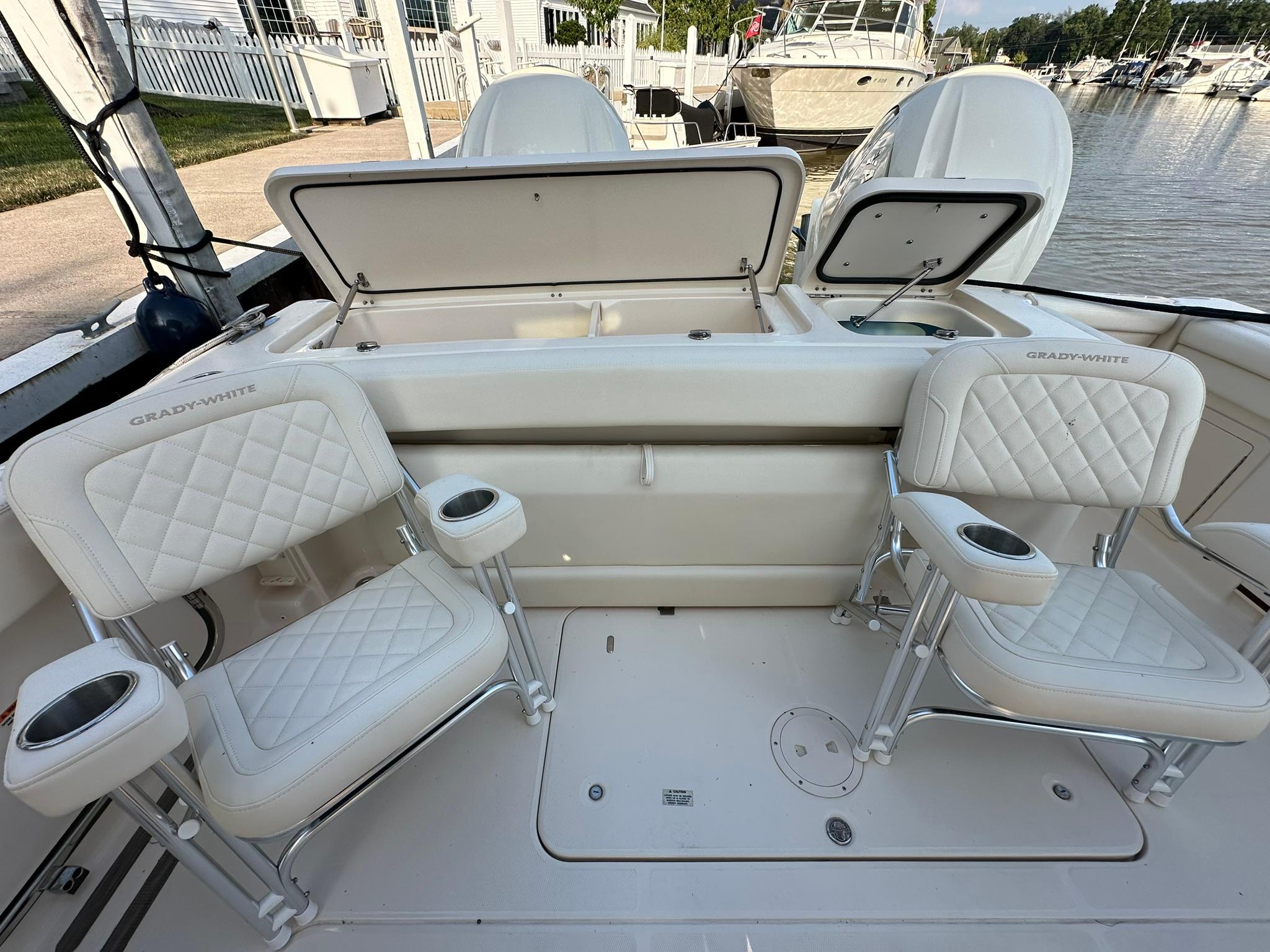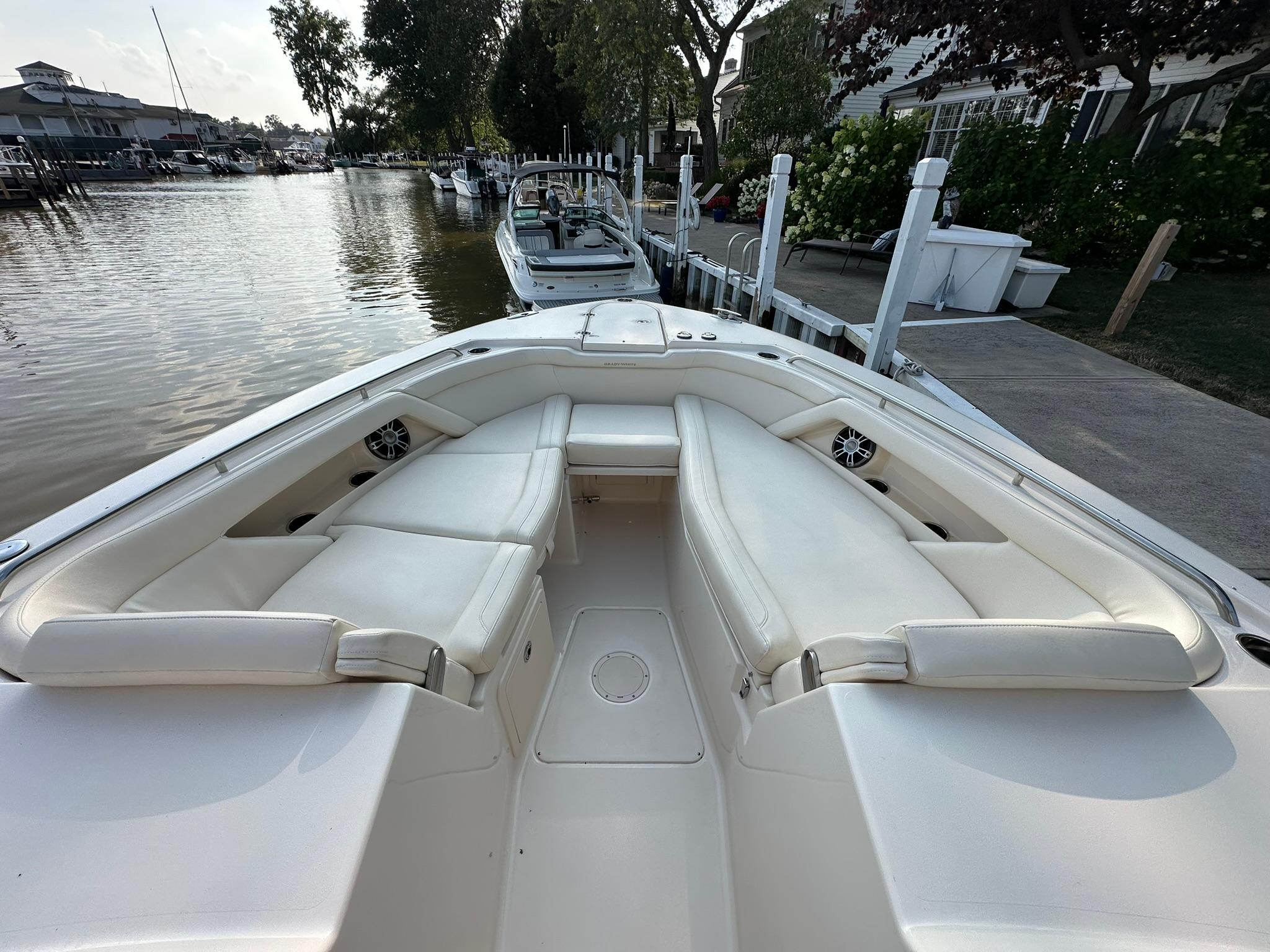 This 2024 Grady-White 335 Freedom is in like-new condition with only 36 hours on the twin Yamaha 450 XTO engines and 16 hours on the generator. Freshwater-kept since new and meticulously maintained.