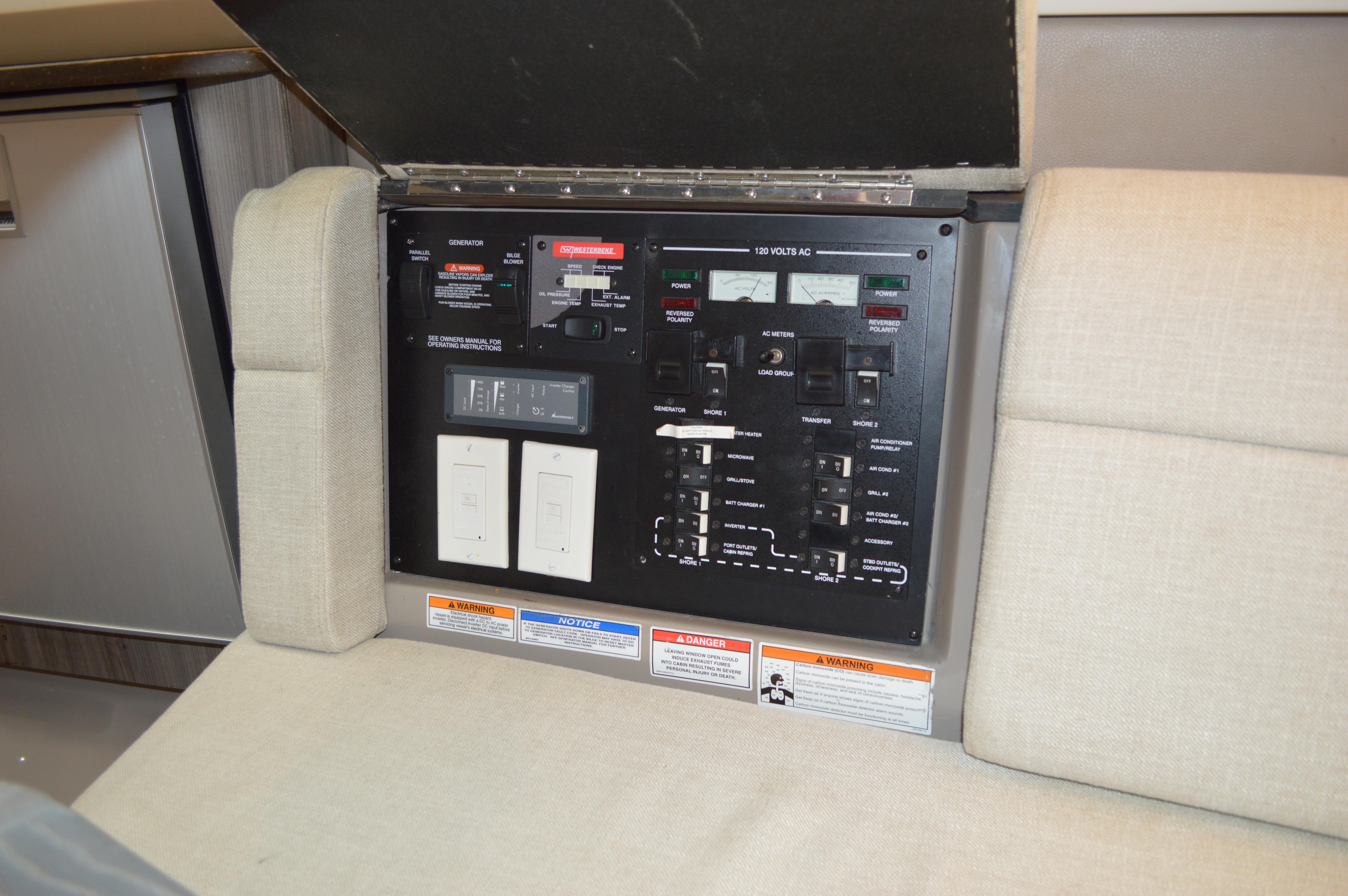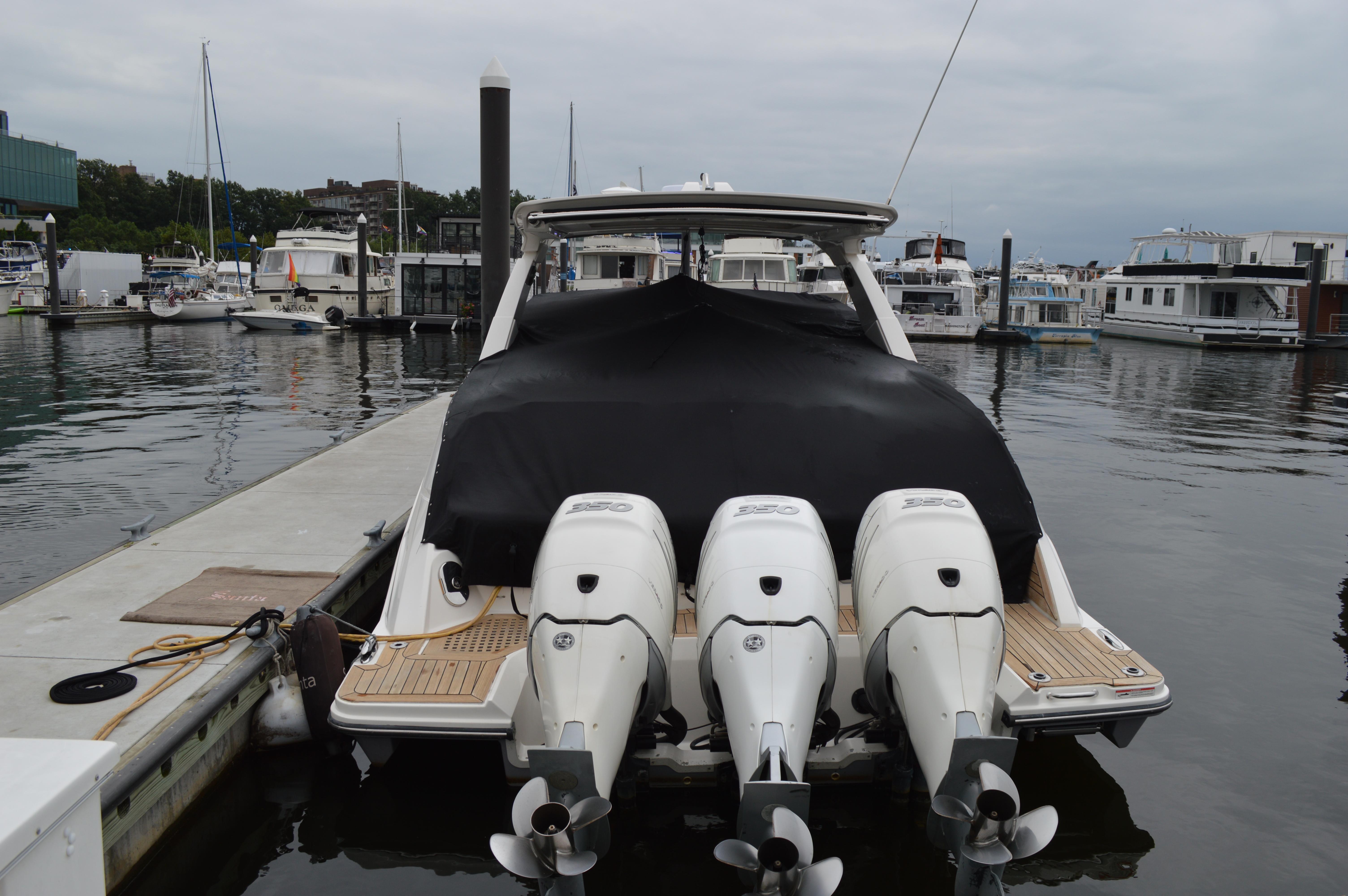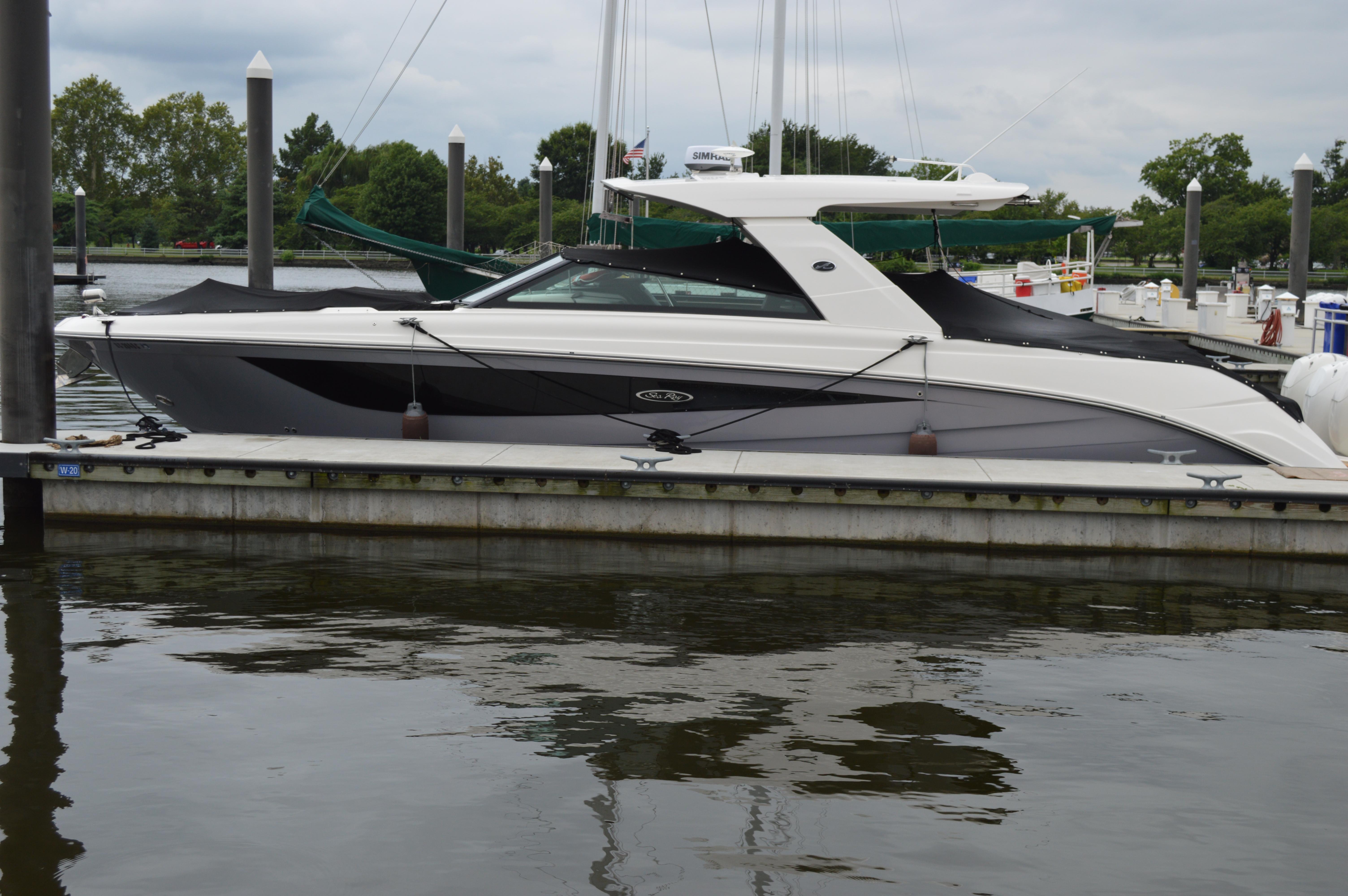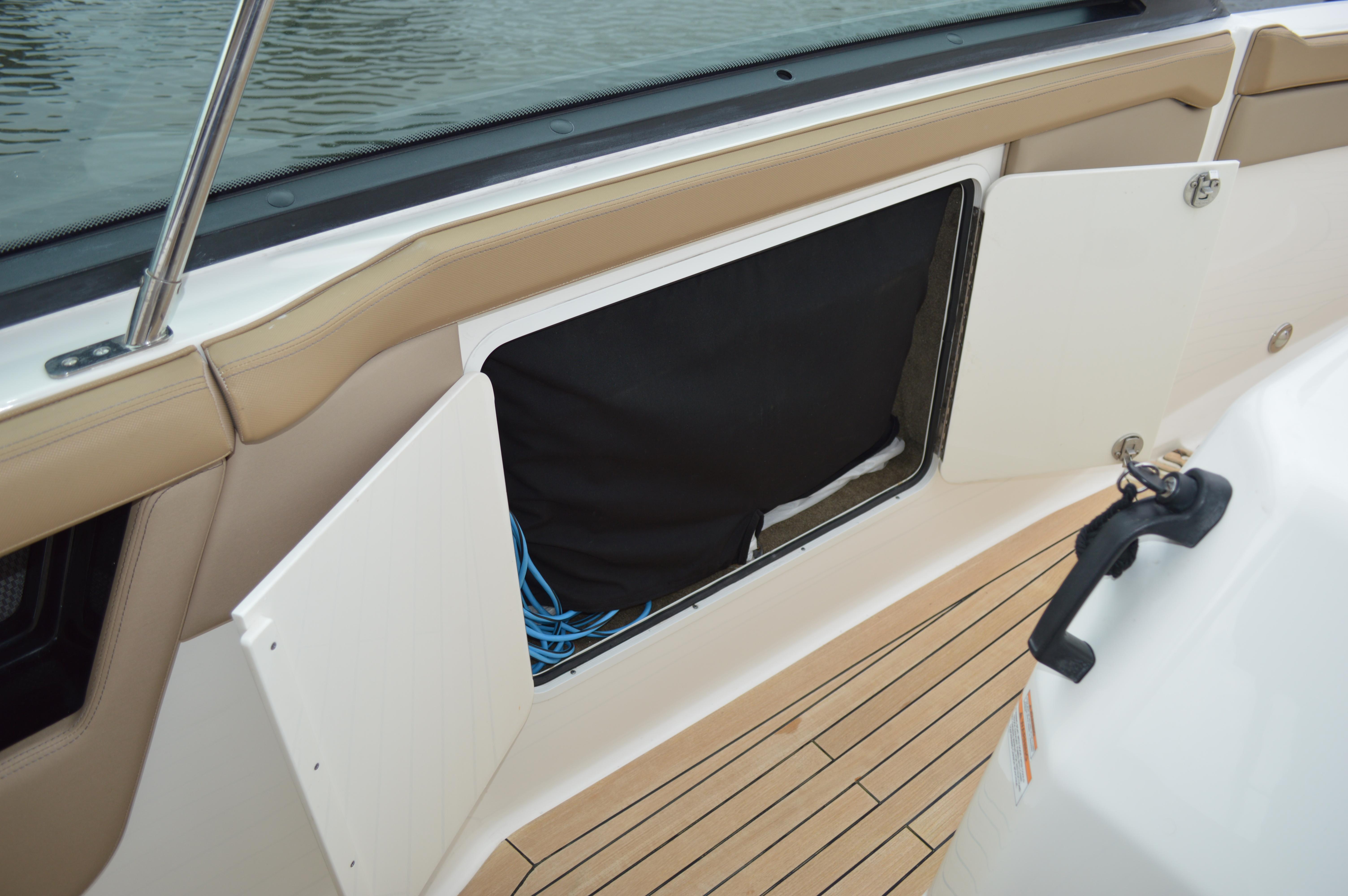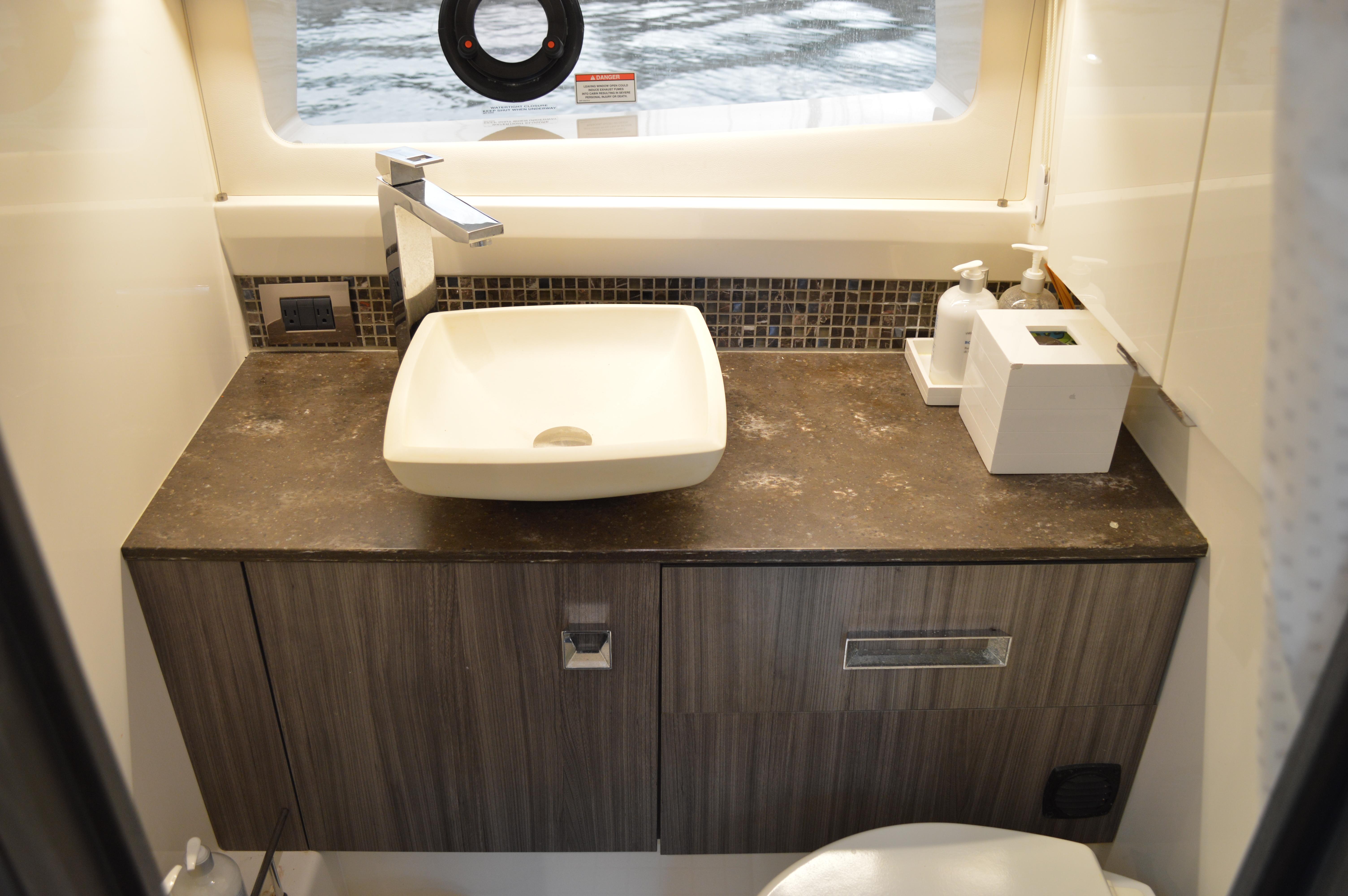 - An expansive cockpit social zone has a well-appointed wet bar with refrigerator, sink and available dual grills while the innovative new transom patio wing opens to extend the cockpit all the way to the water.