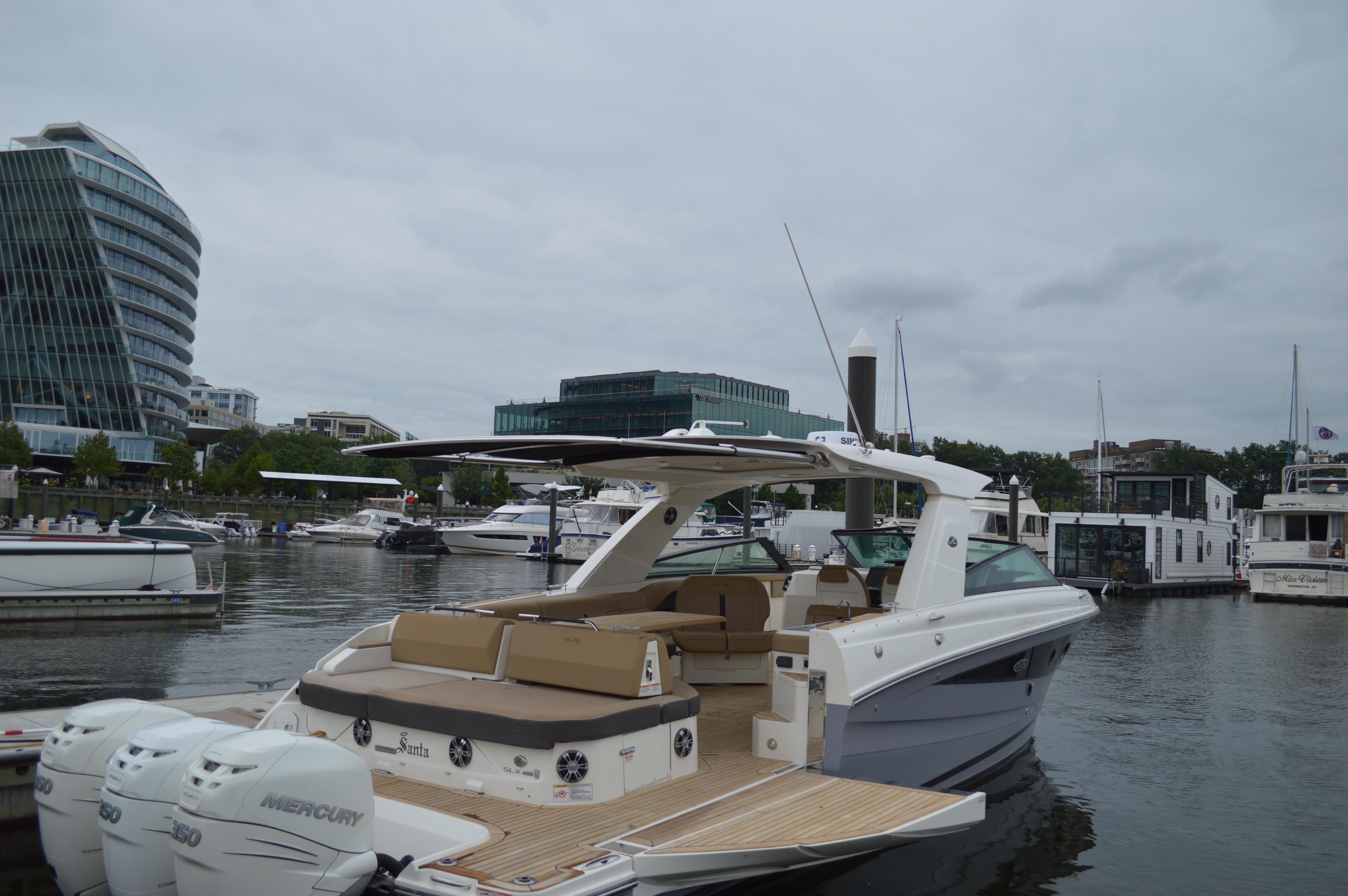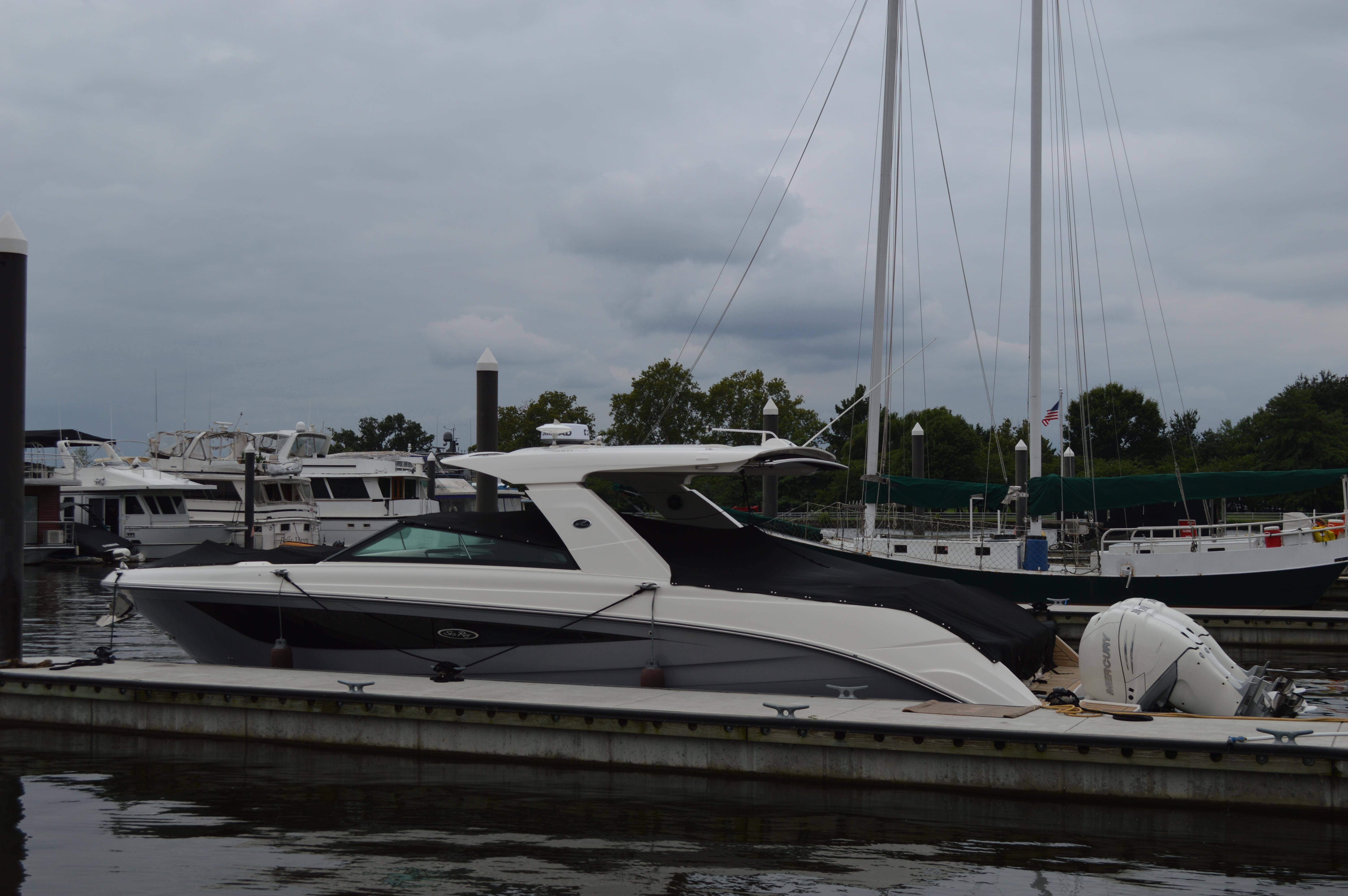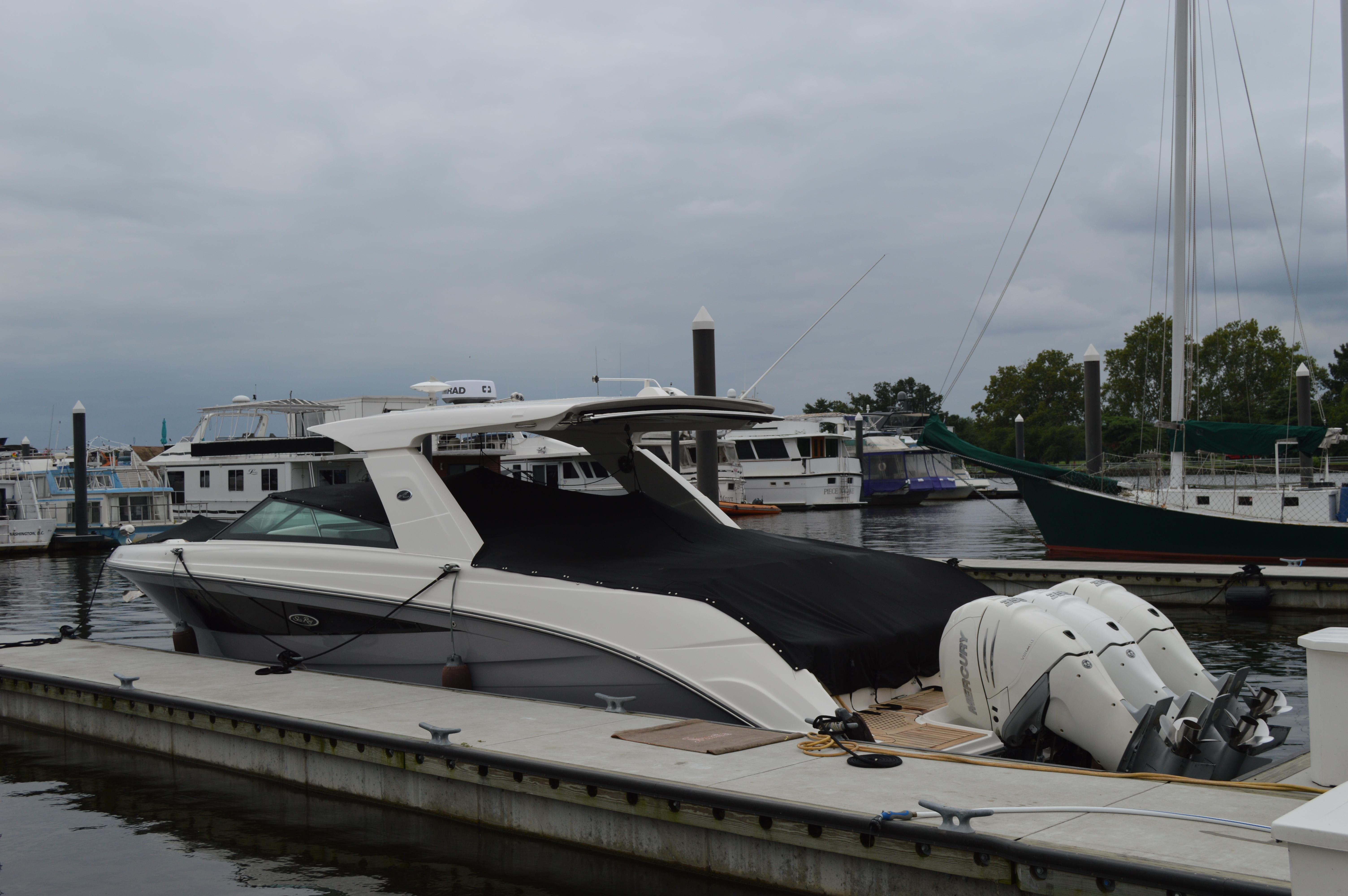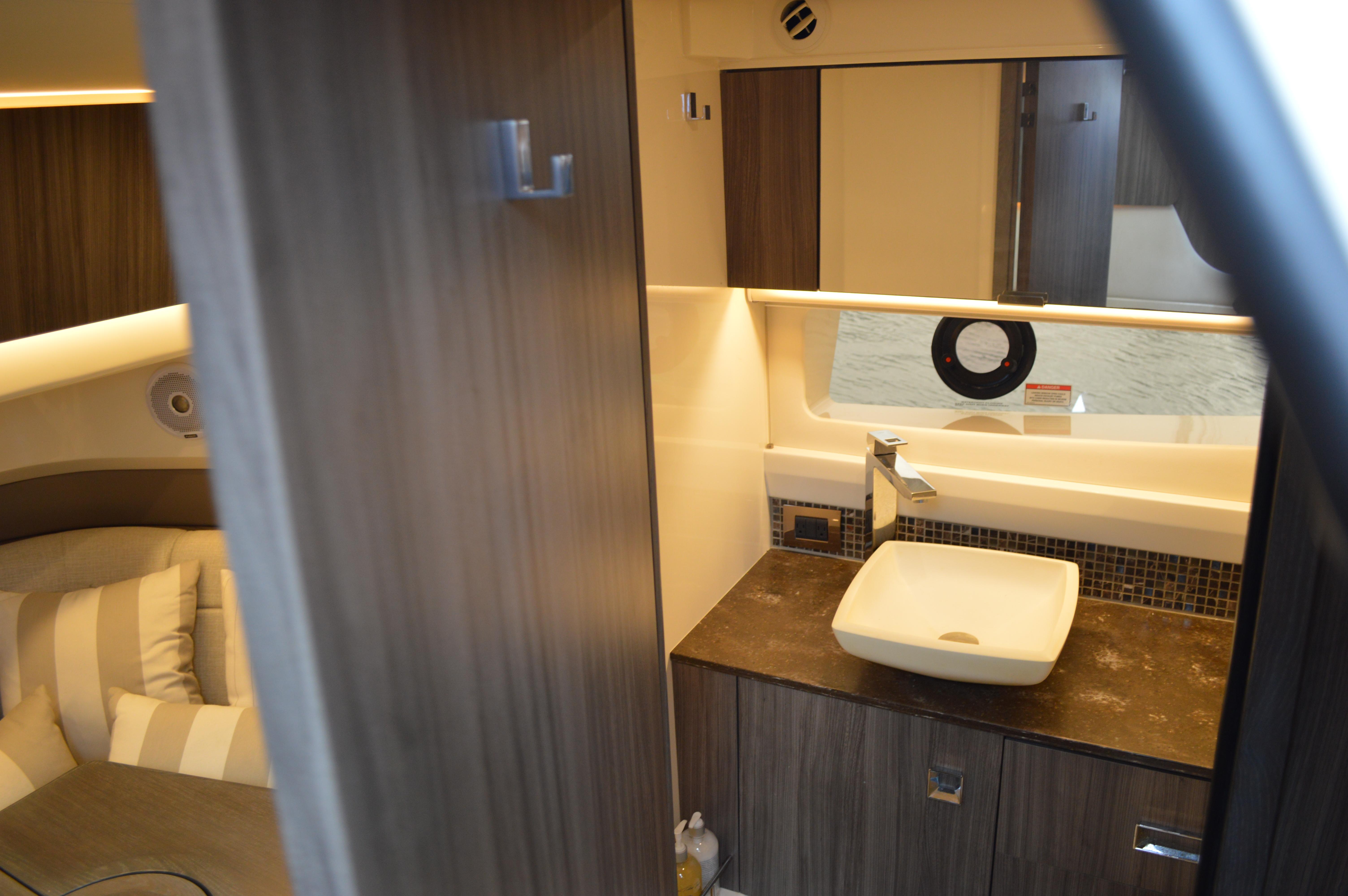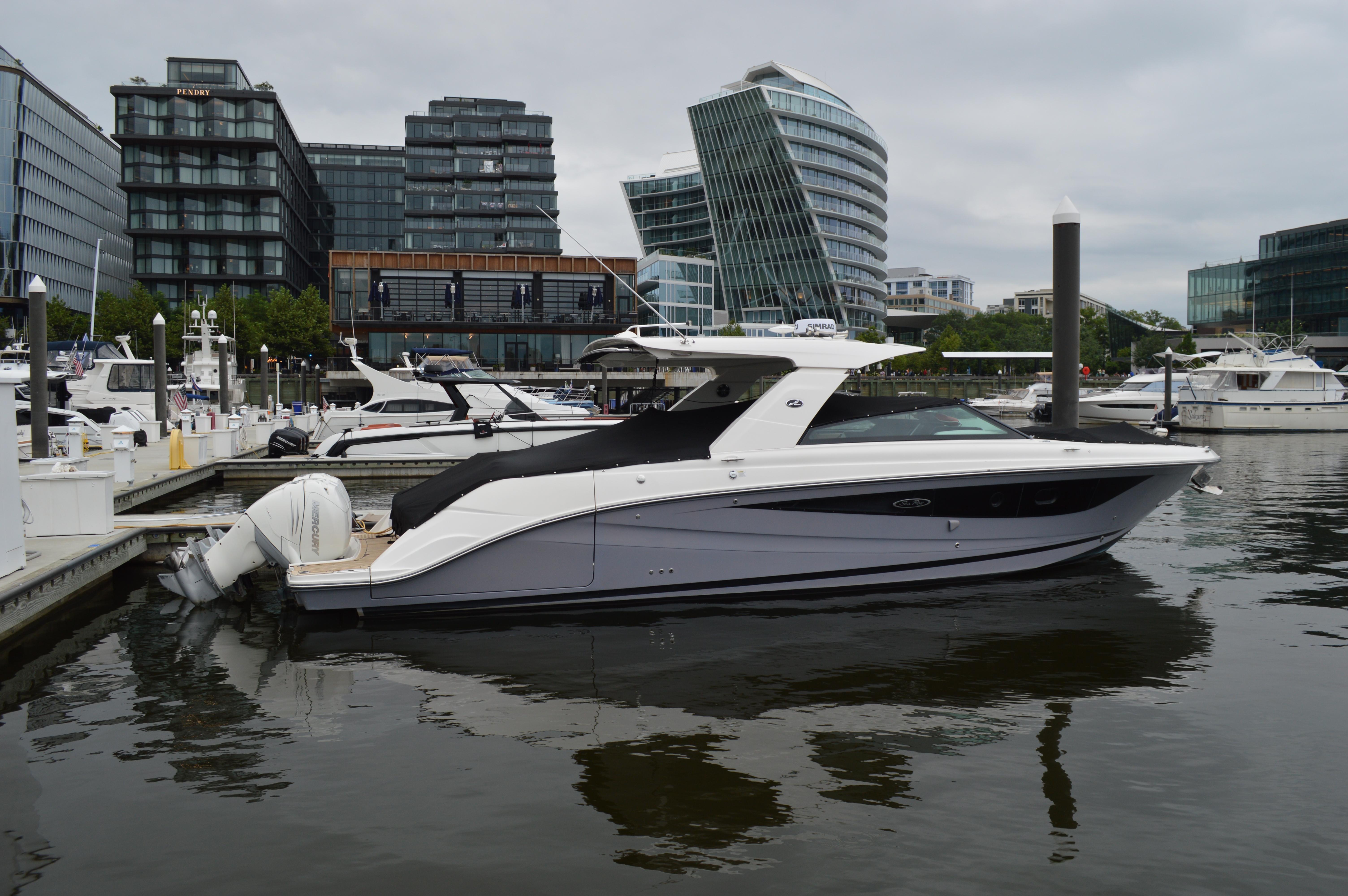 - An expansive cockpit social zone has a well-appointed wet bar with refrigerator, sink and available dual grills while the innovative new transom patio wing opens to extend the cockpit all the way to the water.