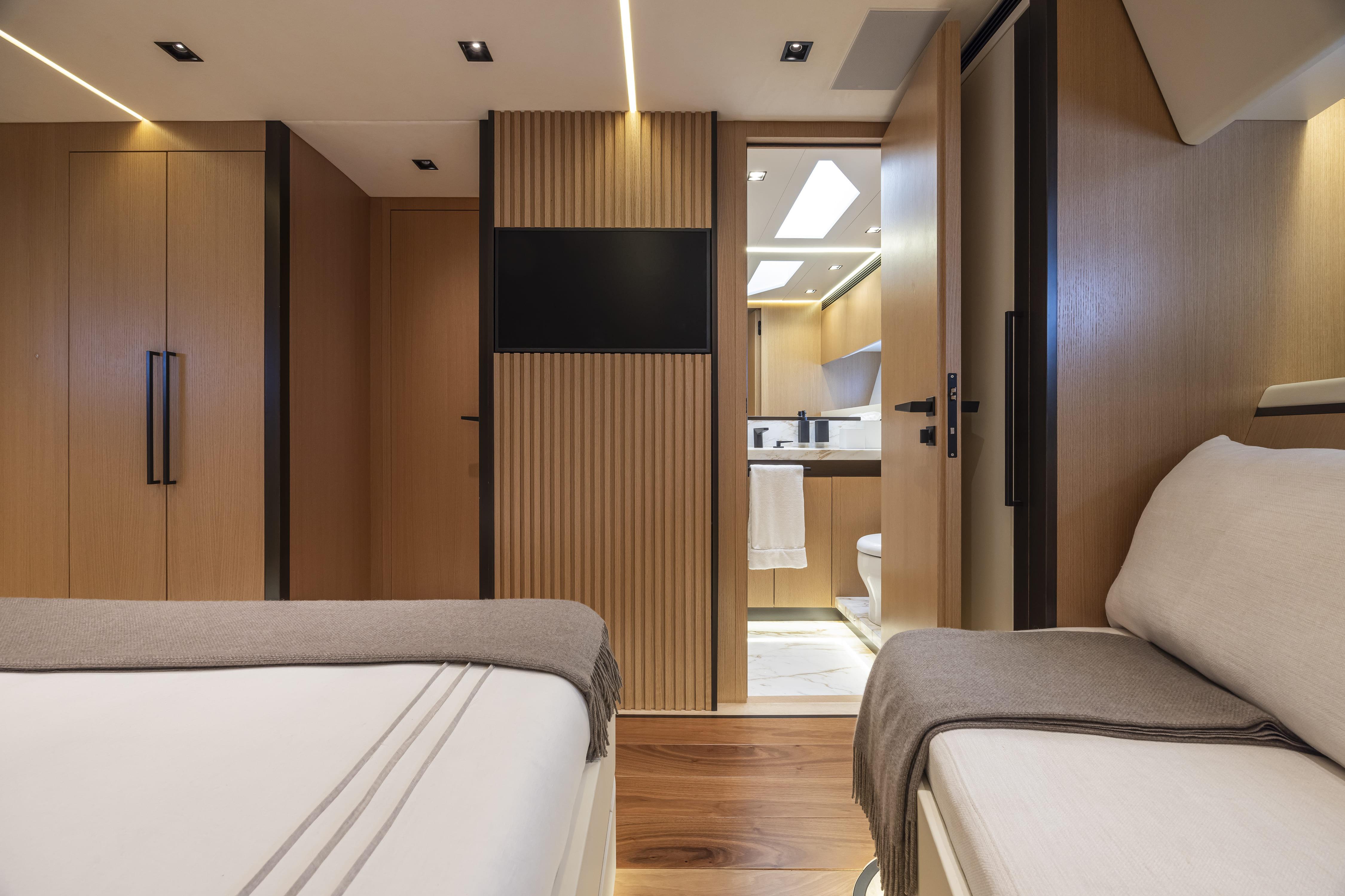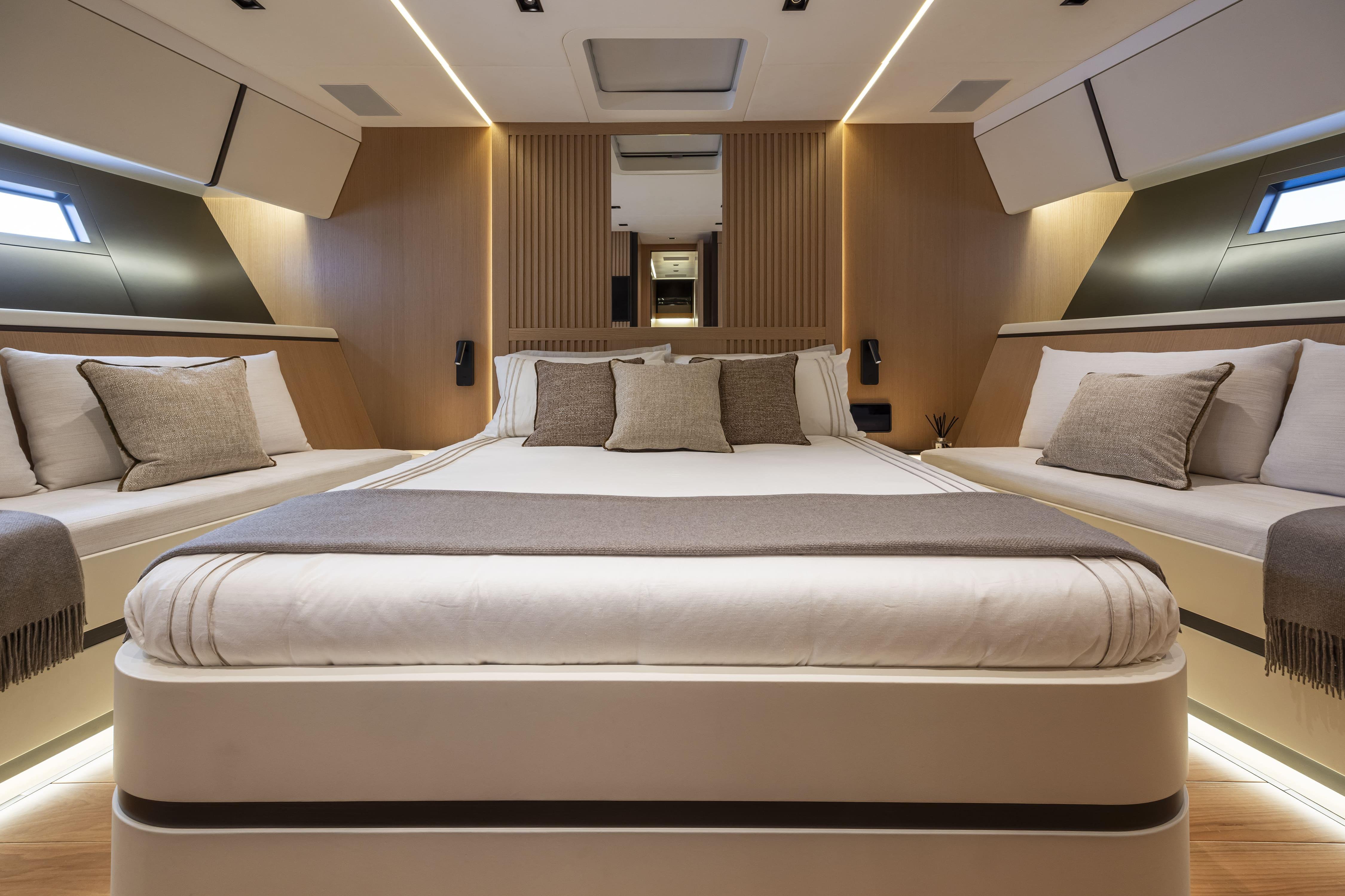 Custom-built for luxury, this Otam 90 GTS yacht for sale offers refined interiors for up to six guests in three cabins, including a full-beam master, plus crew quarters for four.