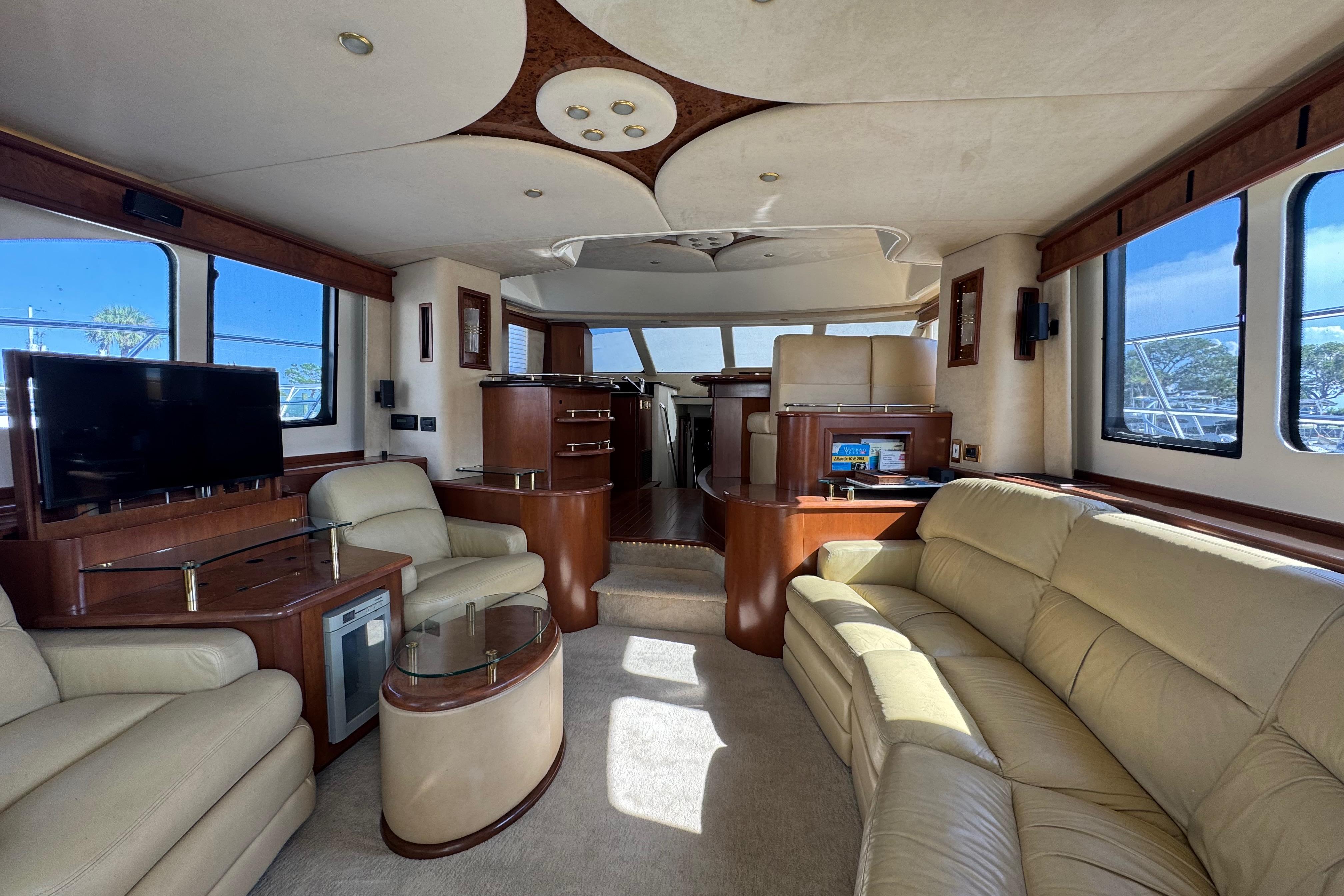 Introducing this stunning 2009 Ovation 52 Motor Yacht, a remarkable vessel that combines elegance and performance. With an overall length of 52 feet, this yacht is crafted from durable fiberglass, ensuring both strength and beauty on the water. Powered by three Volvo Penta D6 IPS inboard engines, each delivering an impressive 600 horsepower, this yacht promises exhilarating speed and smooth navigation. The innovative POD drive system enhances maneuverability, making docking and cruising a breeze. Equipped with joystick control and an electric windlass, this yacht offers modern conveniences for effortless operation. The spacious design allows for comfortable gatherings, making it perfect for entertaining guests or enjoying serene moments at sea. Experience the perfect blend of luxury and performance with the Ovation 52, where every journey becomes an unforgettable adventure.
