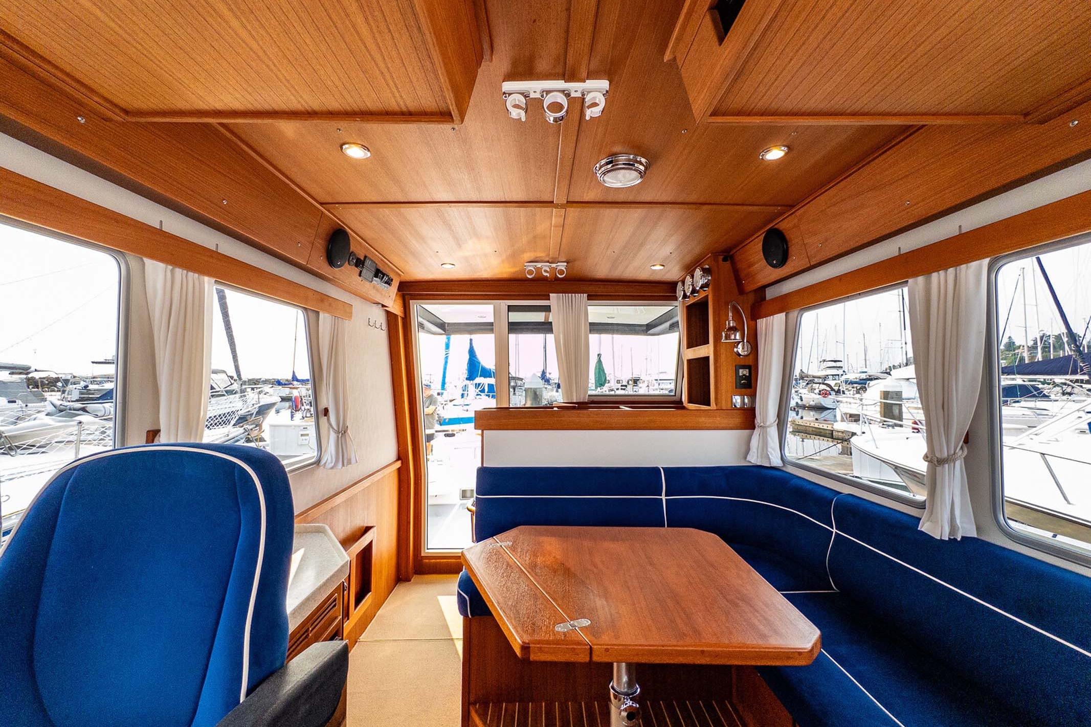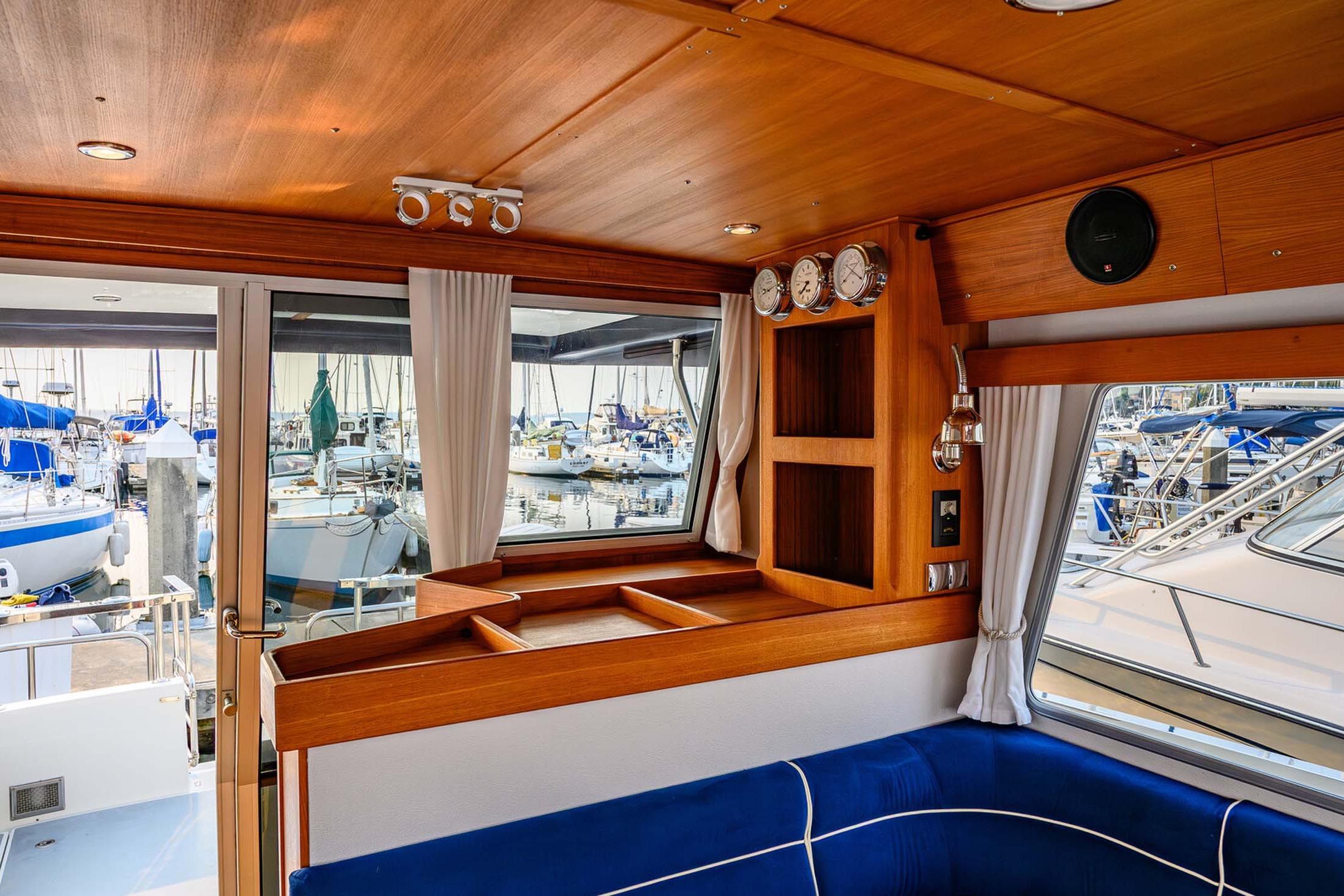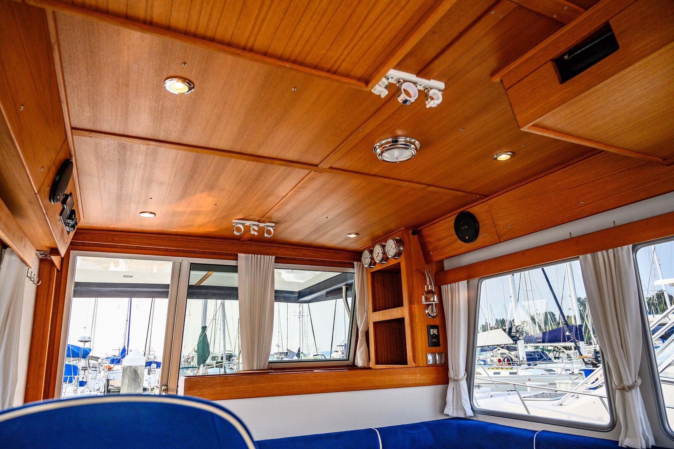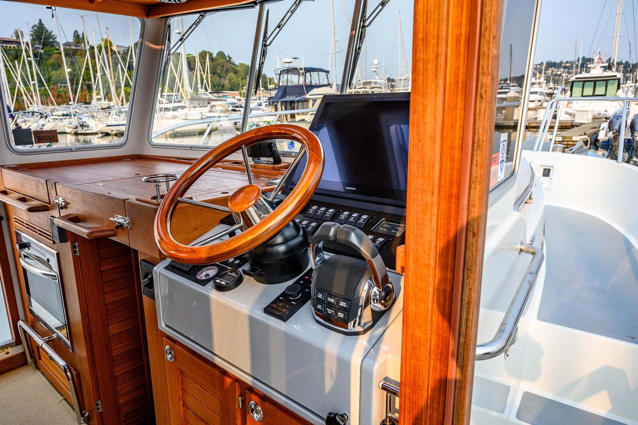 - Bright pilothouse with commanding visibility and suspension helm chair