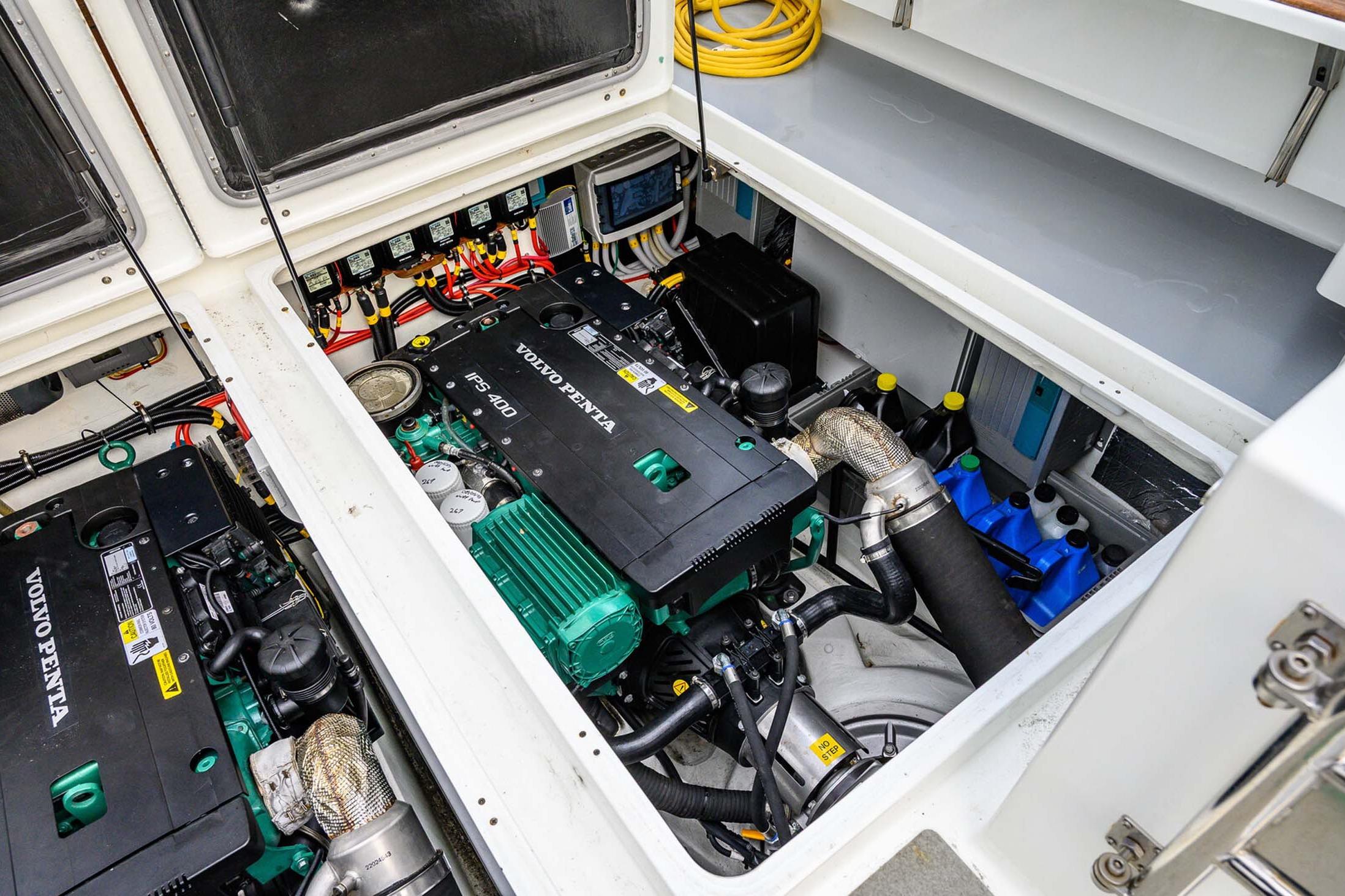 - Twin Volvo Penta IPS400 pod drives for responsive handling and efficiency