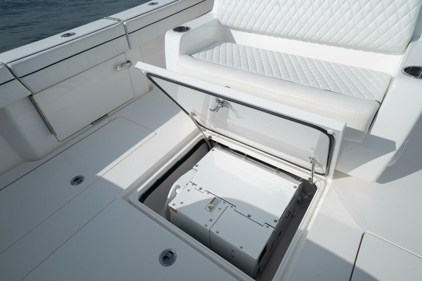 - Helm seating, mezzanine bench with armrests/tackle storage/cooler