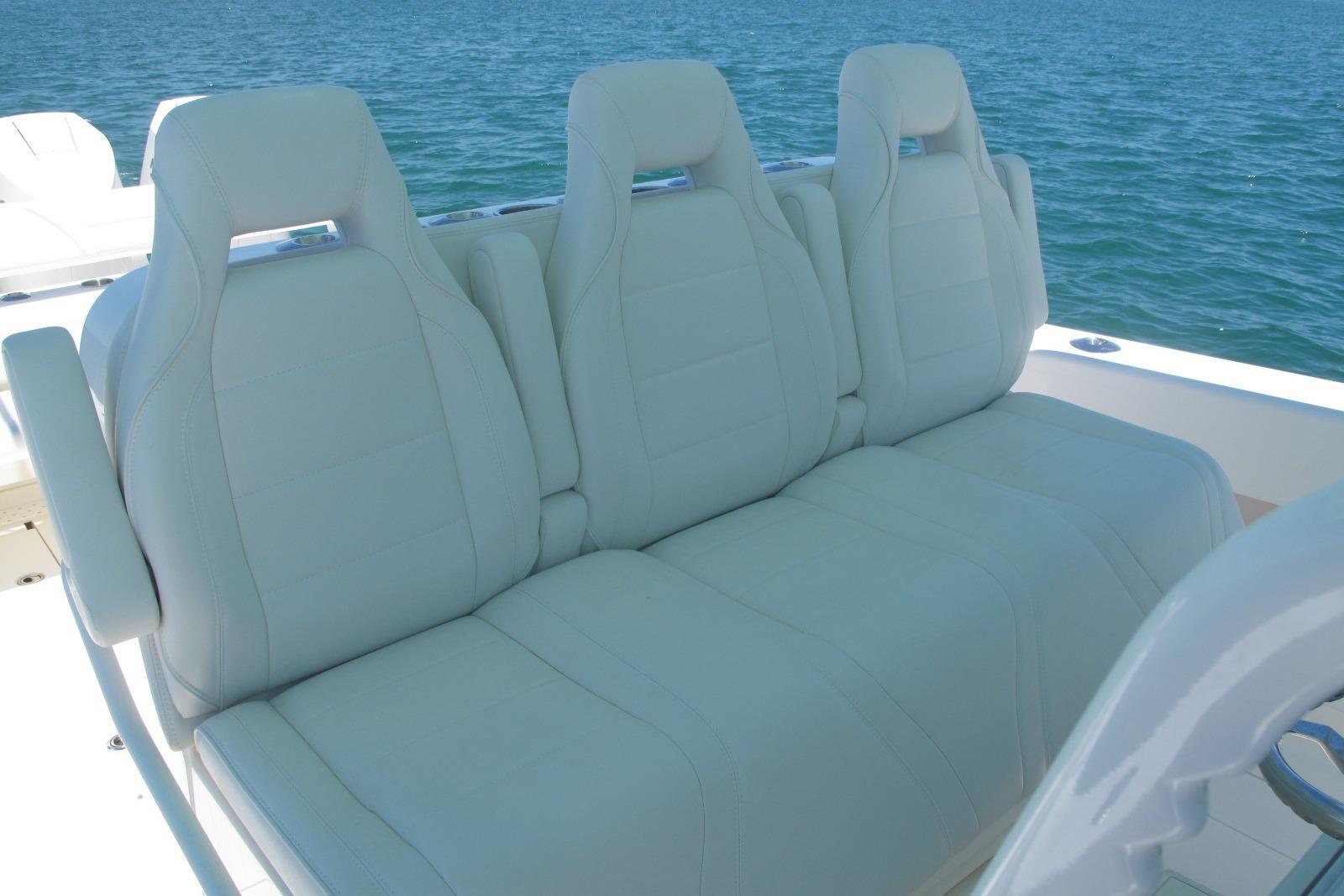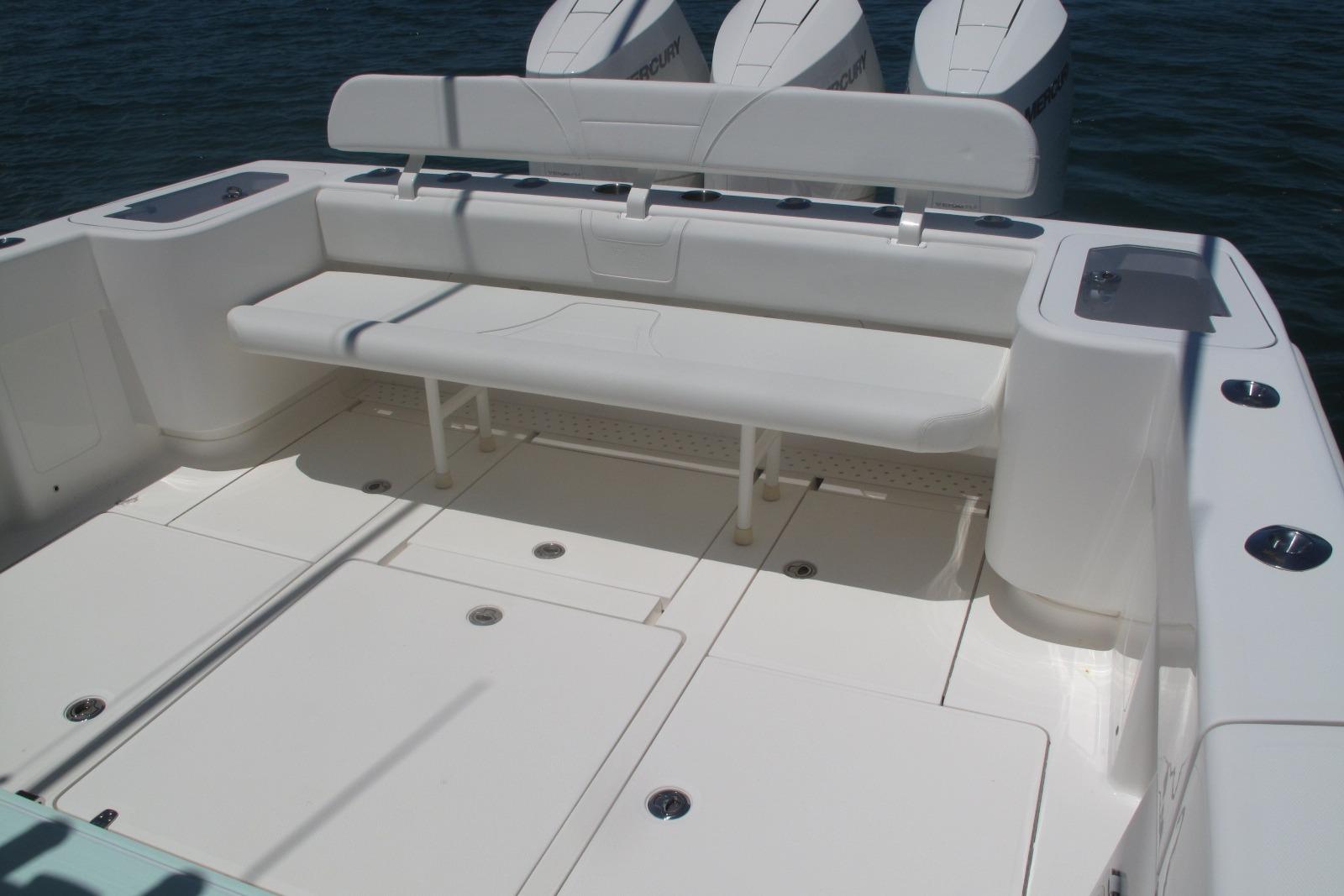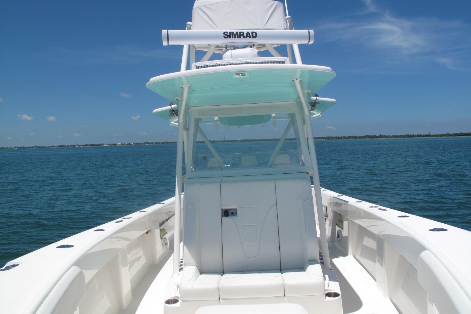 Trip Mercury New V10-400s Only 68hrs & Warranty Thru 8/21/2028, Bow Thruster, Custom Hull Color Seafoam Green + Underside of Hard Top, Fiberglass KW Style Hard Top W/T-Tower & Full Controls + Simrad EVO3S-9" GPS, W/White Powder Coated Pipe Work + Gemlux Outrigger Holders w/18' White Carbon Fiber Poles, Fiberglass Custom Kite Box Under Hard Top, Kingfish Rod Holders (2), Push Button Switch Panel, 3-Sided Polycarbonate Console Enclosure, Mercury K Plane Tabs, Seakeeper 3, Auto Anchor Windlass, Hull Side Dive Door + Transom Ladder, Rigid Marine 30" Light Bar w/Fiberglass Housing, Oversize Fiberglass Helm/Tackle Station w/Triple Seat Backs & Armrests, + Side Doors 1-With Tackle Drawers & Aft Fixed Frigid Rigid Cooler + Seat, Aft Bench Seat w/Backrest + Fiberglass Coffin Box w/Elec Lift, Fresh & Raw Water Washdowns, 2-Transom Livewells + Frw Floor Well & w/4-Pump Seachest, 12-Console Rod Holders, 22-Gunnel Rod Holders + 4-Swivel & 6-Elec Reel Outlets + 6-Gunnel Drink Holders, Under Gunnel Lighting + 2-Underwater Lights RGBW, 4-AGM31 Batteries + 30amp Shore Power w/Onboard Charger, Bahama Aft Shade, Electronics: Carbon Fiber Wrapped Dash w/Simrad Twin EVO3S-16" GPS/Plotters S5100 Sounder Module for CM599LH Chirp Transducer 2-3 KW Glassed into Keel, Halo 3004 Open Ray Radar, AP44 Auto-Pilot, Sat Ant, GS25 Active Antenna, Icom 510 VHF w/External Speaker, Fusion MS-RA770 Stereo, JL Audio Speakers & Amps 2-7.7" + 4-8.8" + Fiberglass Molded Speaker Pod w/2-8.8" + 2-10" Subs all Powered by 2-Amps = 1,400 Watts of Power,