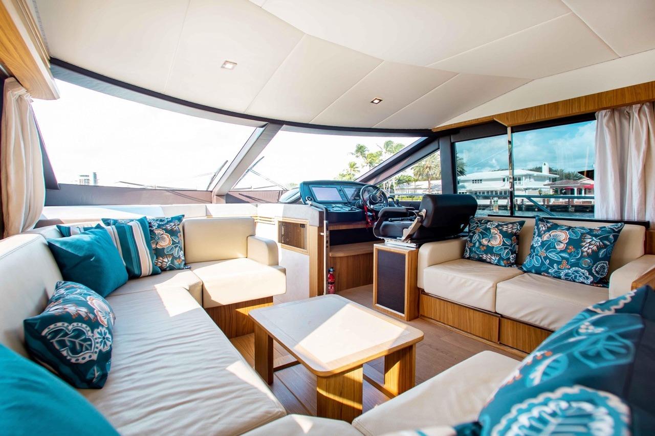 Step inside the salon through the glass sliding doors, and you'll immediately notice the 360-degree panoramic windows that flood the space with natural light. The open-concept layout ensures a seamless flow between the lounge, dining area, and galley, making this yacht ideal for entertaining.